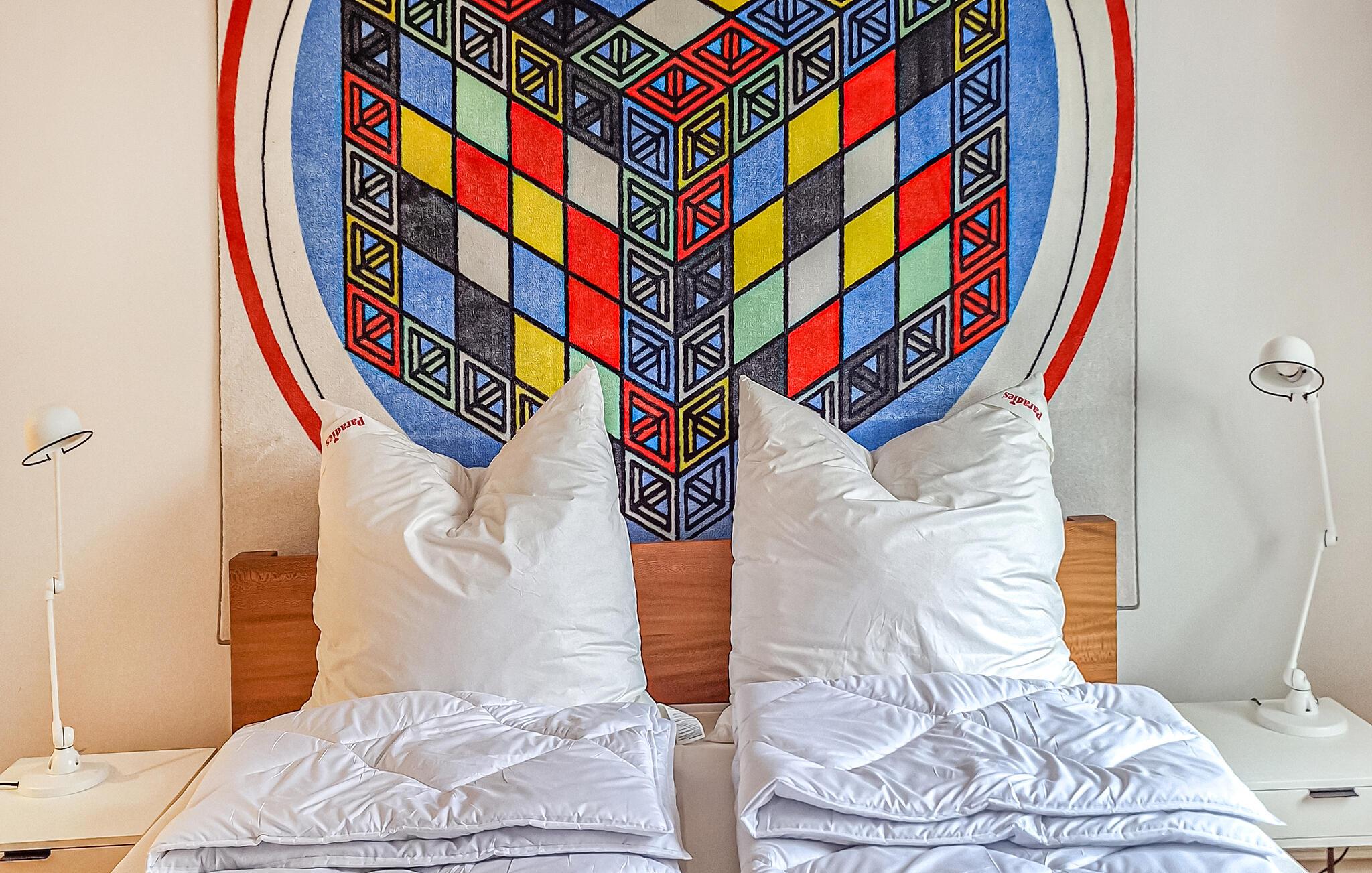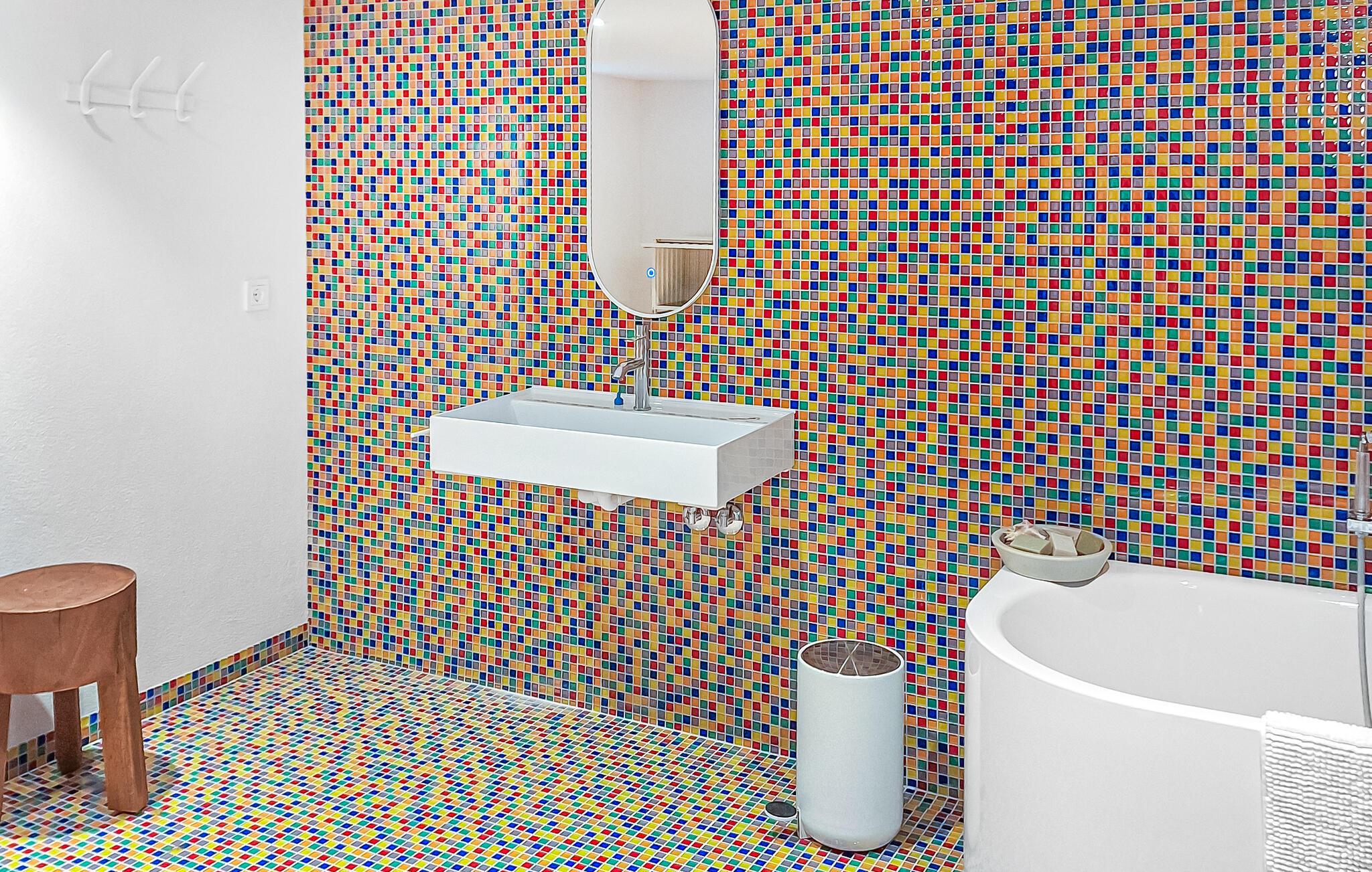 Dette moderne hus, dekoreret med muntre farvestrejf, er perfekt til en ferie med flere familier eller en gruppe venner. Det giver jer gode rammer til fælles aktiviteter og er det ideelle tilflugtssted for en afslappende pause fra hverdagen. Slap af med en hyggelig kop kaffe i sofaen eller tilbring en sjov eftermiddag med bræt- og kortspil.