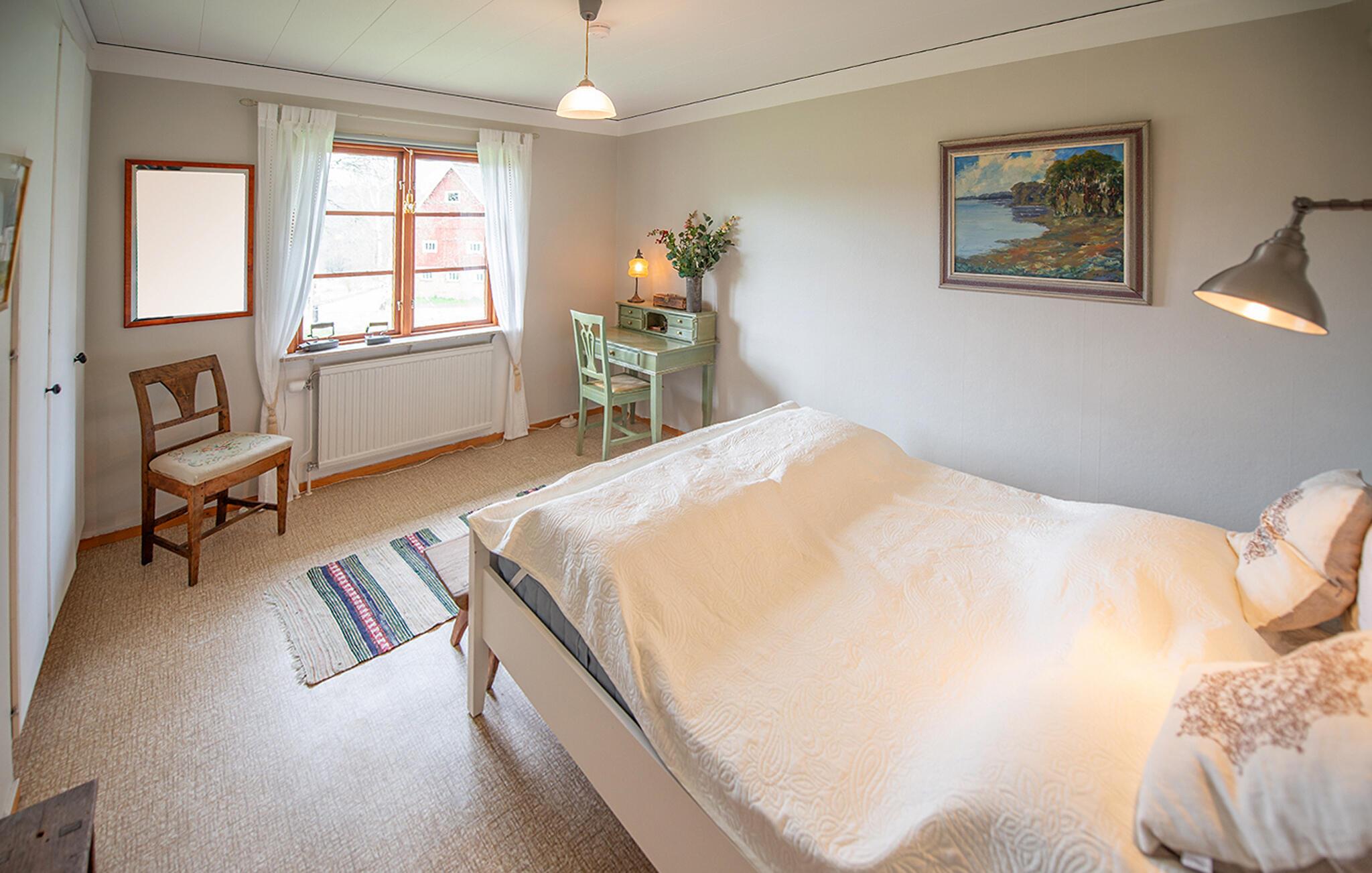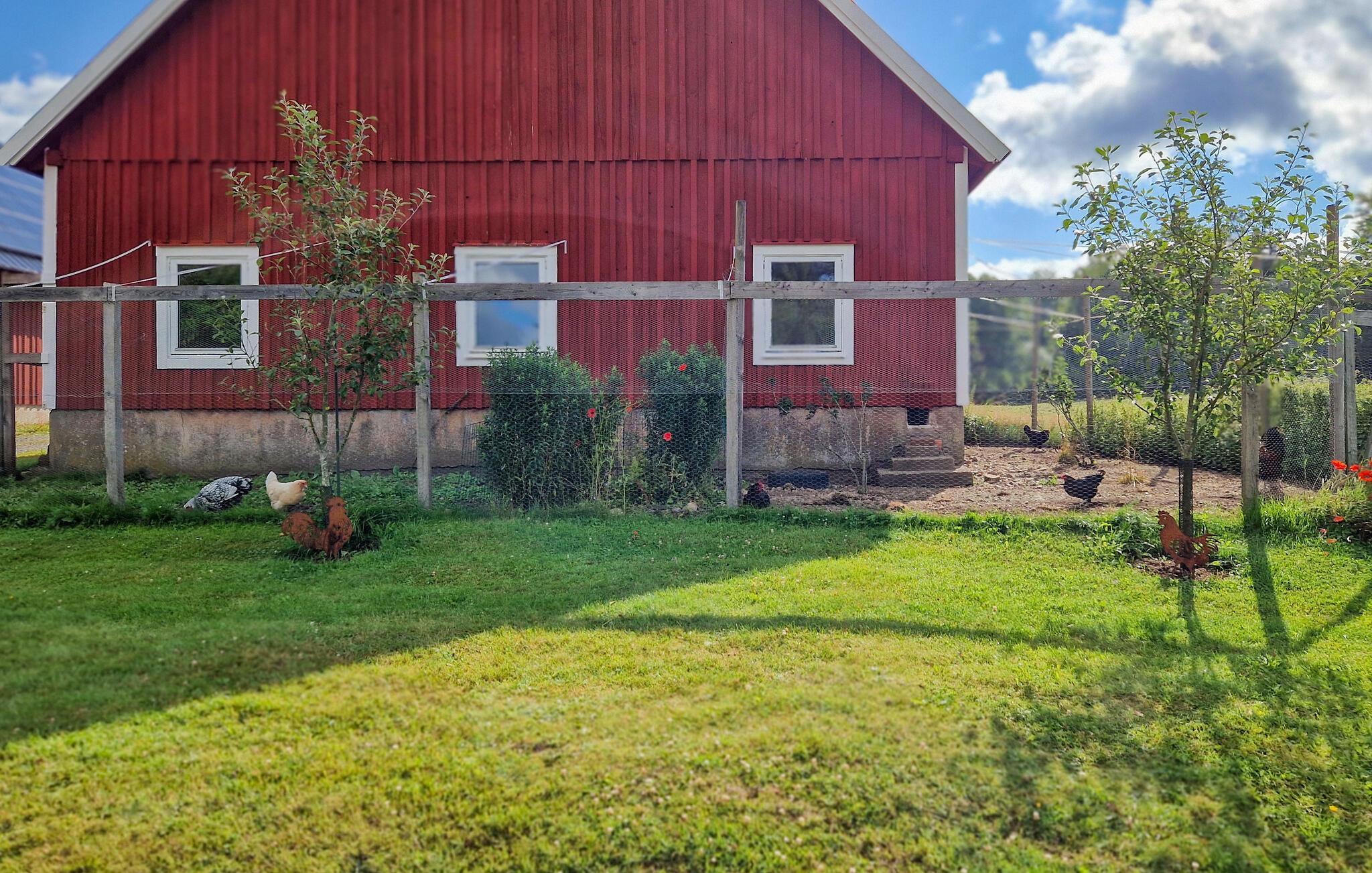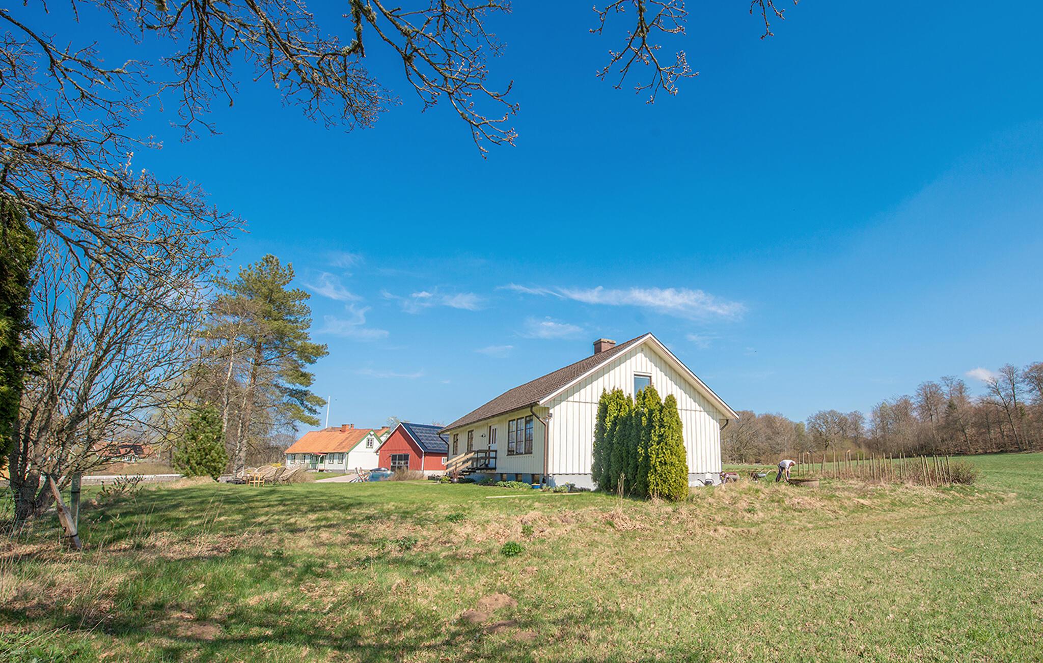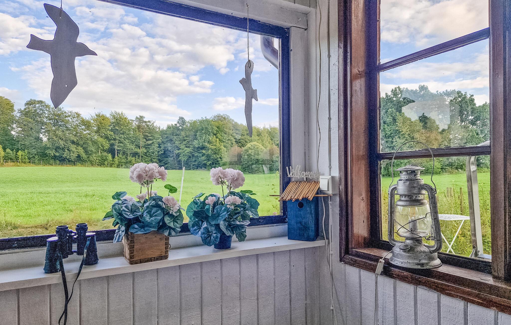 Dette lyse feriehus, indrettet med stor sans for detaljer, byder jer velkommen med en ægte atmosfære. Lav mad sammen i det rummelige, veludstyrede køkken og spis med udsigt over naturlandskabet - måske vil traner, kaniner, ræve eller rådyr kigge forbi. Tænd pejsen, sæt jer i sofaen og nyd udsigten over Gårdsjön og den lille badedam,