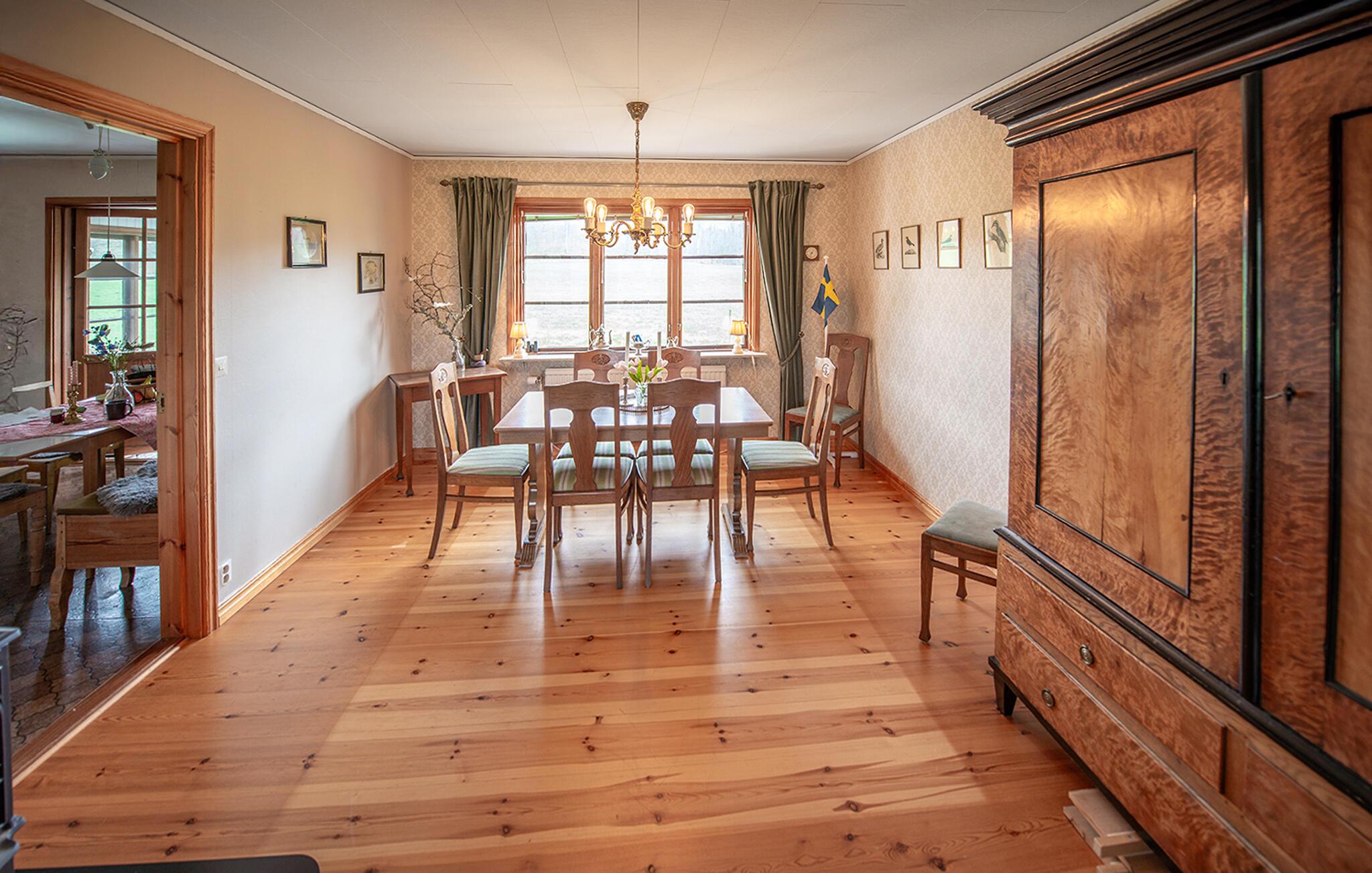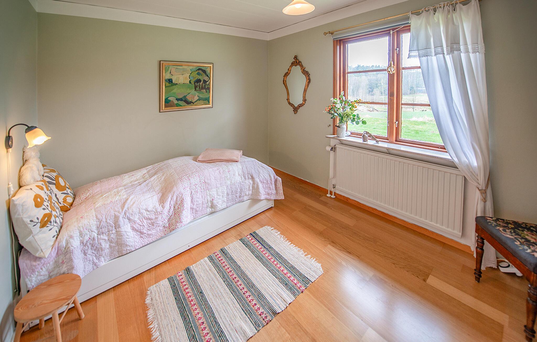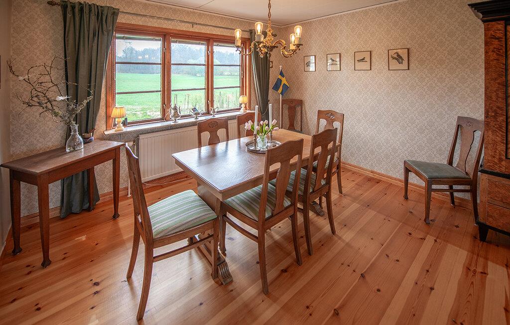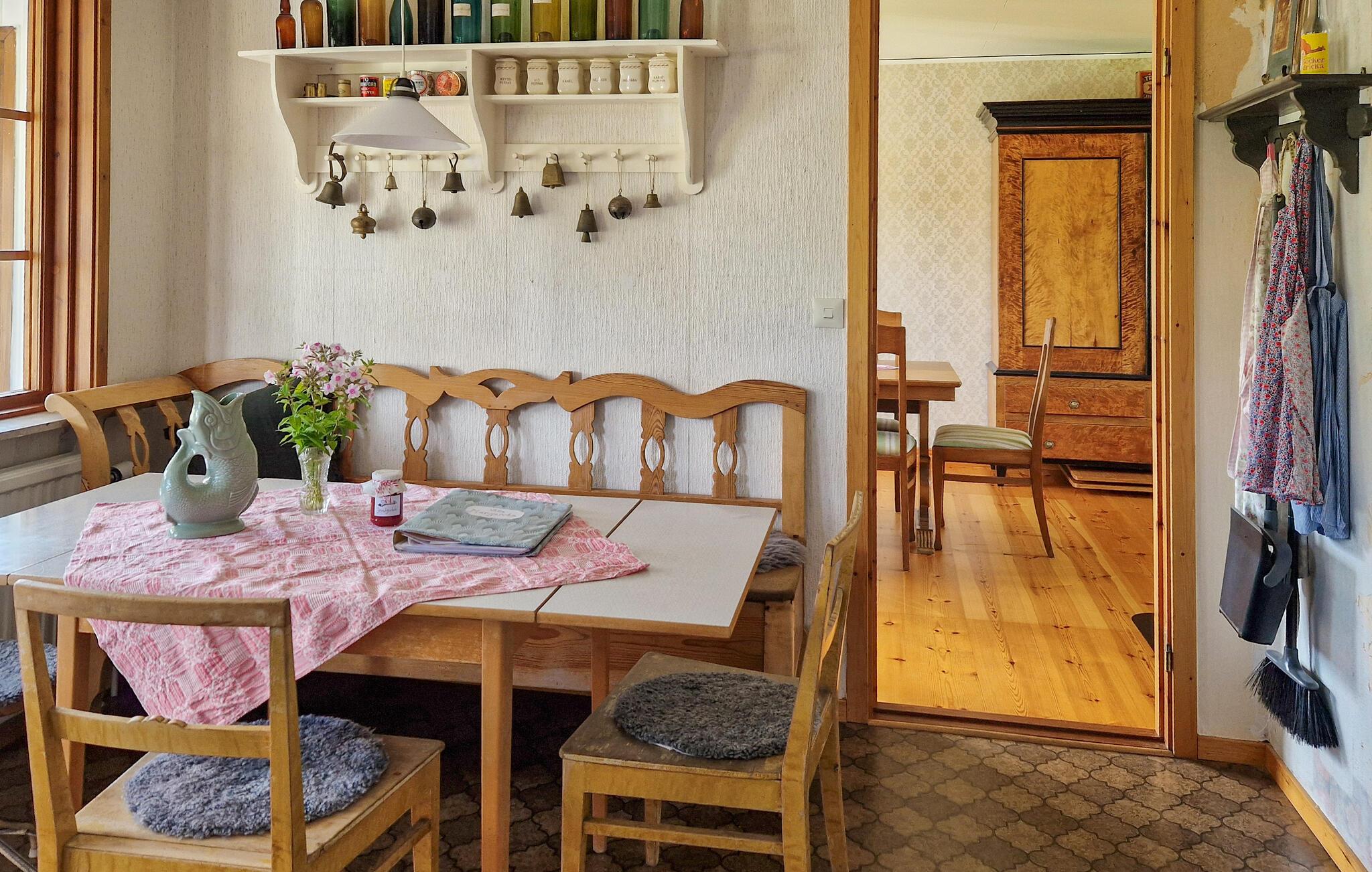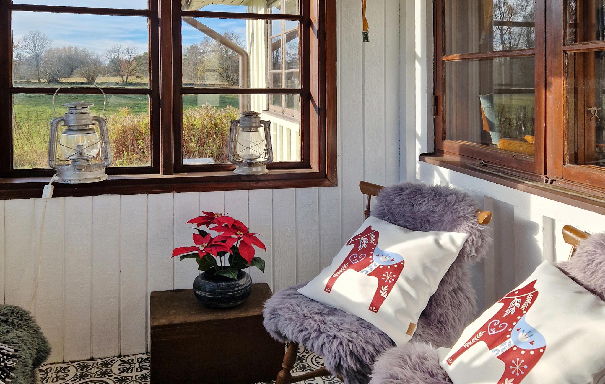 Dette lyse feriehus, indrettet med stor sans for detaljer, byder jer velkommen med en ægte atmosfære. Lav mad sammen i det rummelige, veludstyrede køkken og spis med udsigt over naturlandskabet - måske vil traner, kaniner, ræve eller rådyr kigge forbi. Tænd pejsen, sæt jer i sofaen og nyd udsigten over Gårdsjön og den lille badedam,
