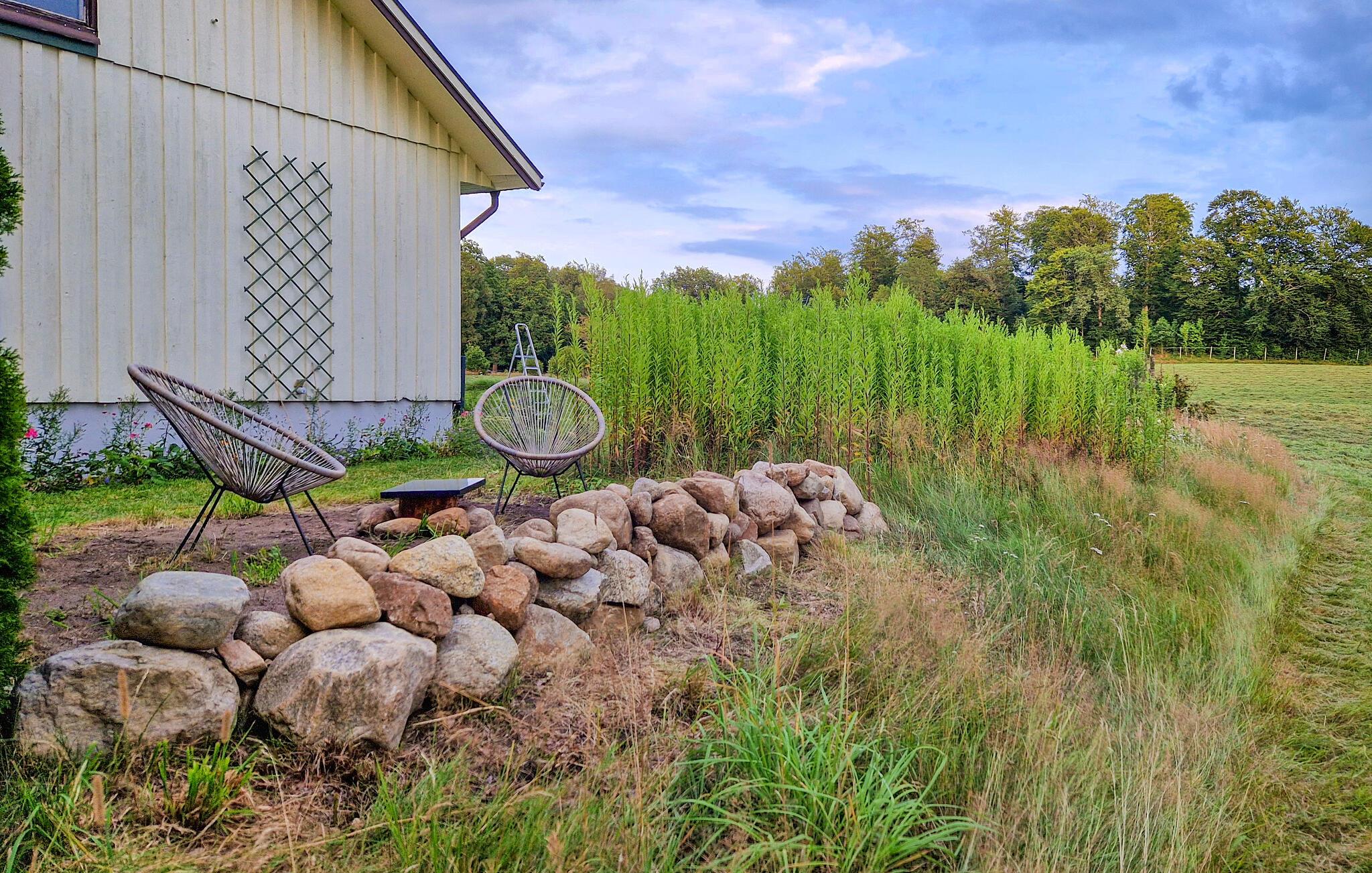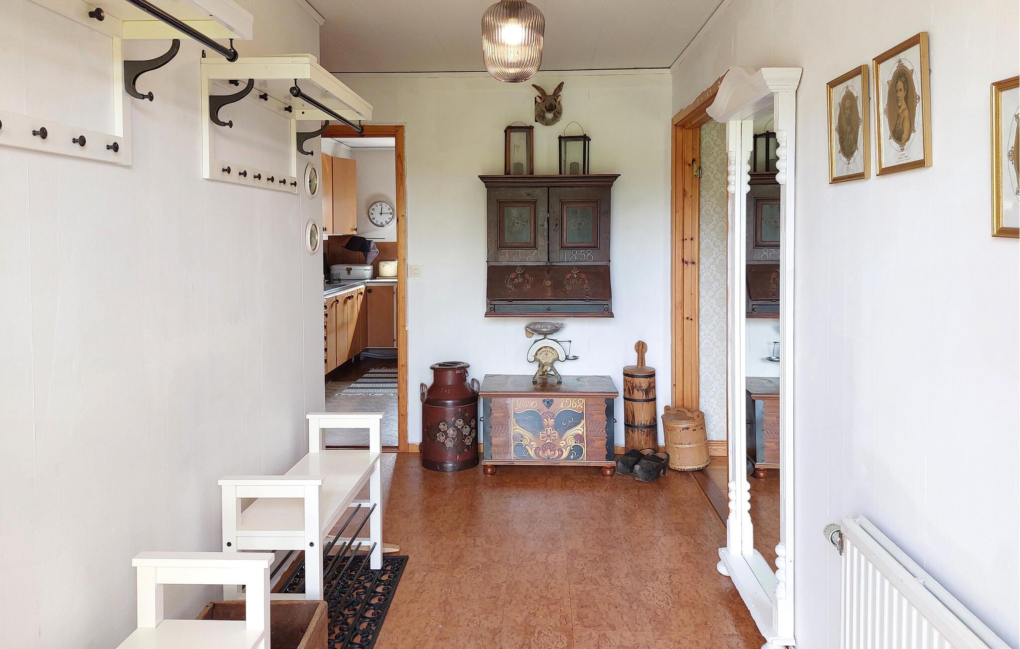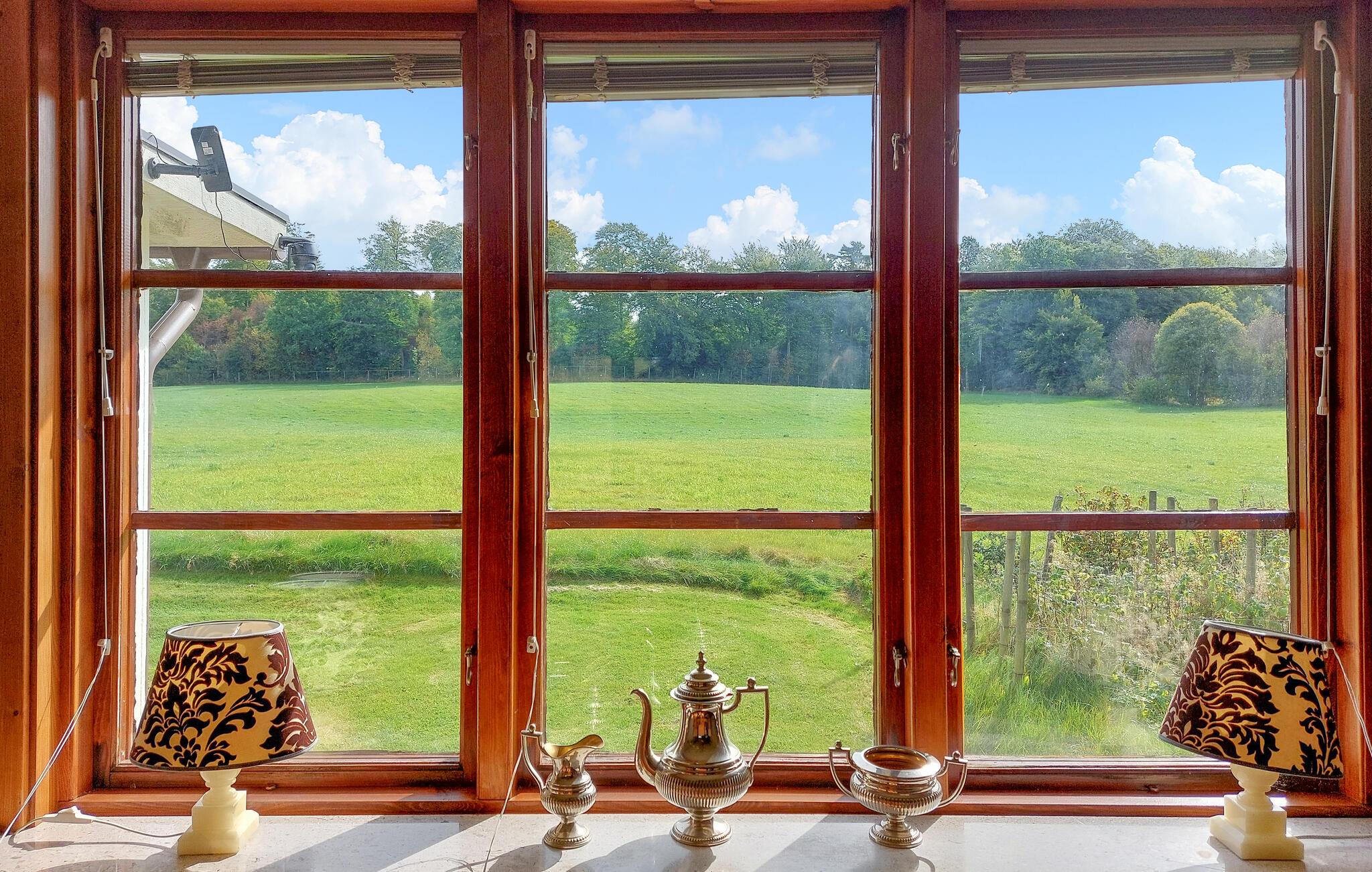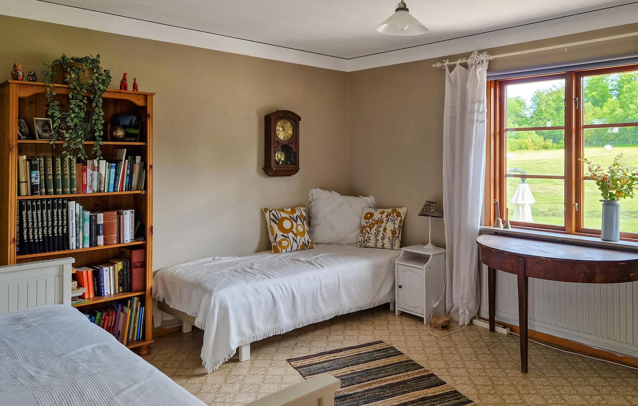 Dette lyse feriehus, indrettet med stor sans for detaljer, byder jer velkommen med en ægte atmosfære. Lav mad sammen i det rummelige, veludstyrede køkken og spis med udsigt over naturlandskabet - måske vil traner, kaniner, ræve eller rådyr kigge forbi. Tænd pejsen, sæt jer i sofaen og nyd udsigten over Gårdsjön og den lille badedam,