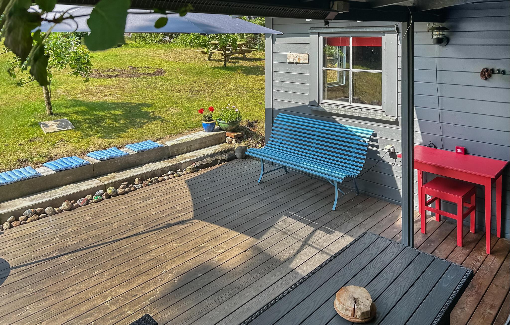 Glæd jer til at sætte hverdagen på pause og nyde et ophold i dette hyggelige feriehus. Her kan I virkelig give jer selv tid til at slappe af, fylde dagene med brætspil, gode samtaler og fælles madlavningsprojekter. Huset er indrettet med gode faciliteter og lægger op til rolige stunder med kaffe og solbadning på den skønne og delvist overdækkede terrasse.