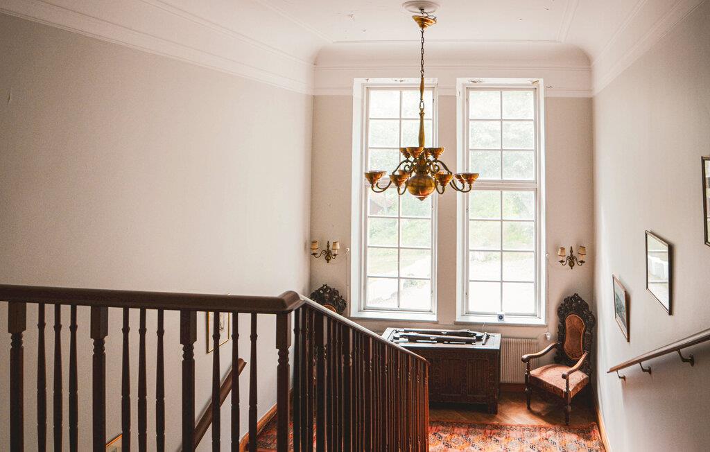 Antikke møbler skaber en hyggelig atmosfære i dette rummelige og velrenoverede herregård ved havet, perfekt til afslappende dage med familie eller venner. Hold madlavningsaftener sammen, find sammen til dejlige måltider i den lyse spisestue og forkæl jer selv med velfortjent afslapning i saunaen efter en slentretur på stranden. Snak over et glas vin ved pejsen, mens andre nyder en spilleaften i den anden stue.