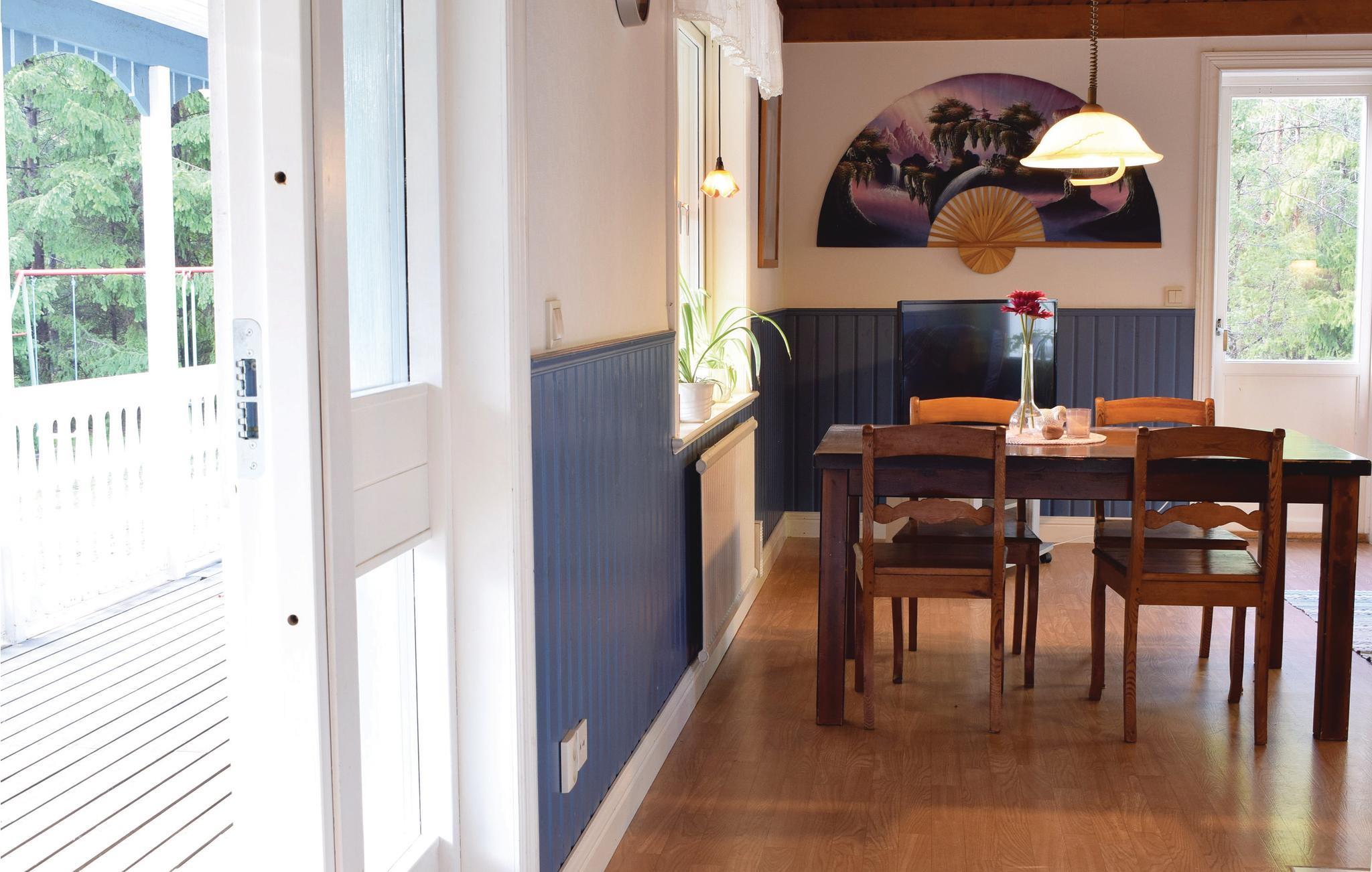 Glæd jer til masser af svensk idyl i dette dejlige hus, som byder på mange fine indretningsdetaljer og emmer af hygge. Her er der plads til seks gæster, som kan fordele sig i de tre soveværelser, hvoraf et har dobbeltseng, mens det andet har enkeltsenge, og det tredje rummer en køjeseng. I kommer til at tilbringe meget af tiden i det indbydende køkken-alrum med pejs, hvor der venter dejlige timer med fælles madlavning, brætspilskonkurrencer og kagesmovseri. Fra opholdsrummet er der direkte udgang til haven med legeredskaber til børnene. I kan samles om måltiderne på den åbne terrasse og nyde de lyse nætter på den hyggelige veranda.