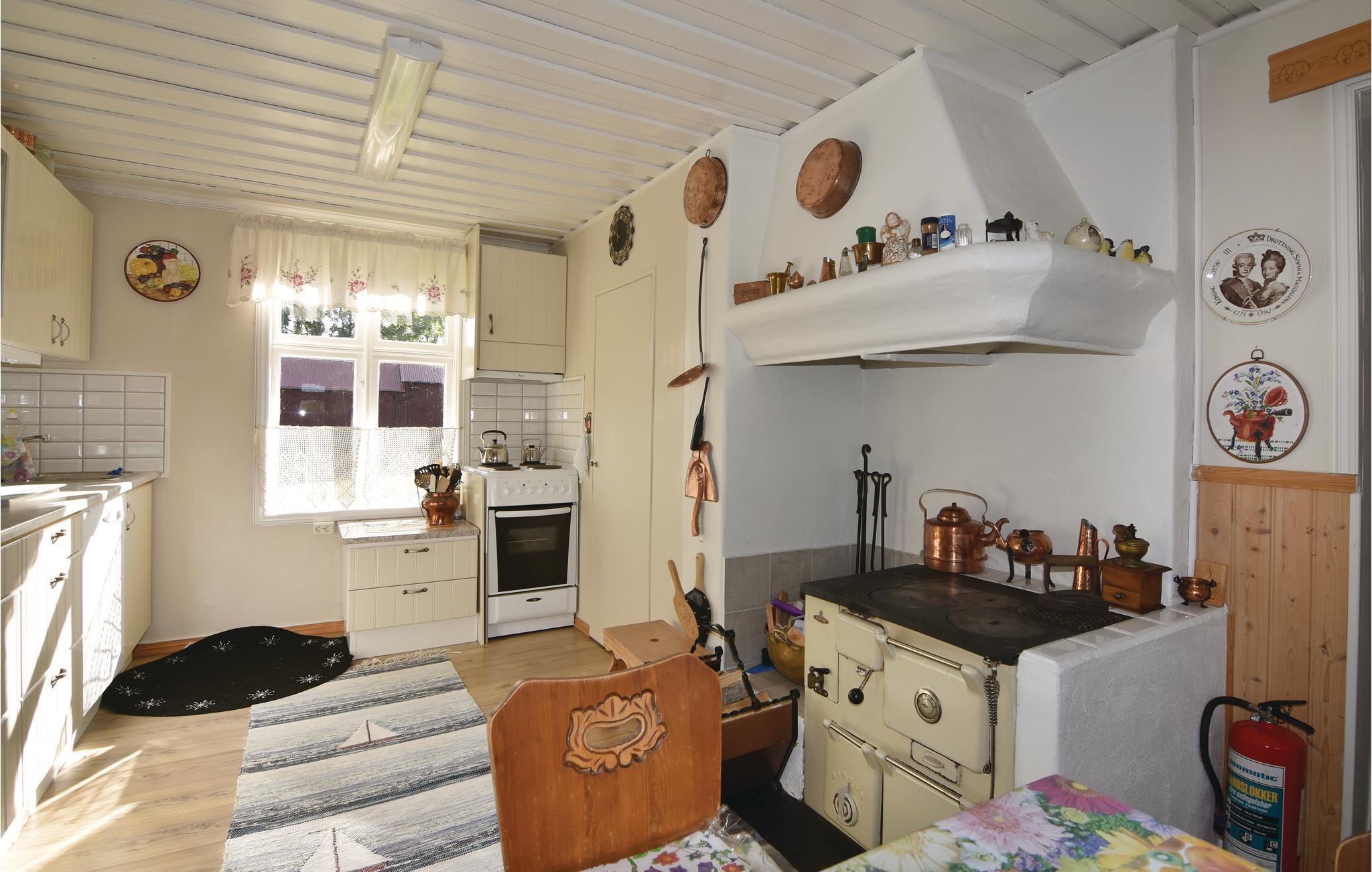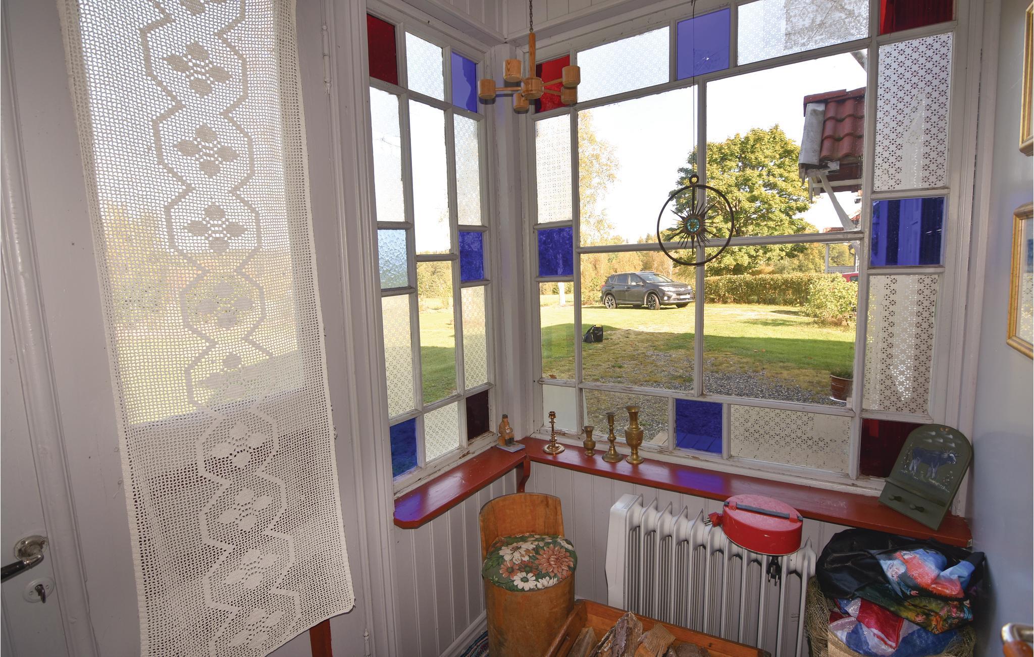 Ferieboligen har en hyggelig stue, hvor brændeovnen giver ekstra hygge og varme på kolde dage. Huset har også en stor terrasse med skøn udsigt over søen Stora Le.