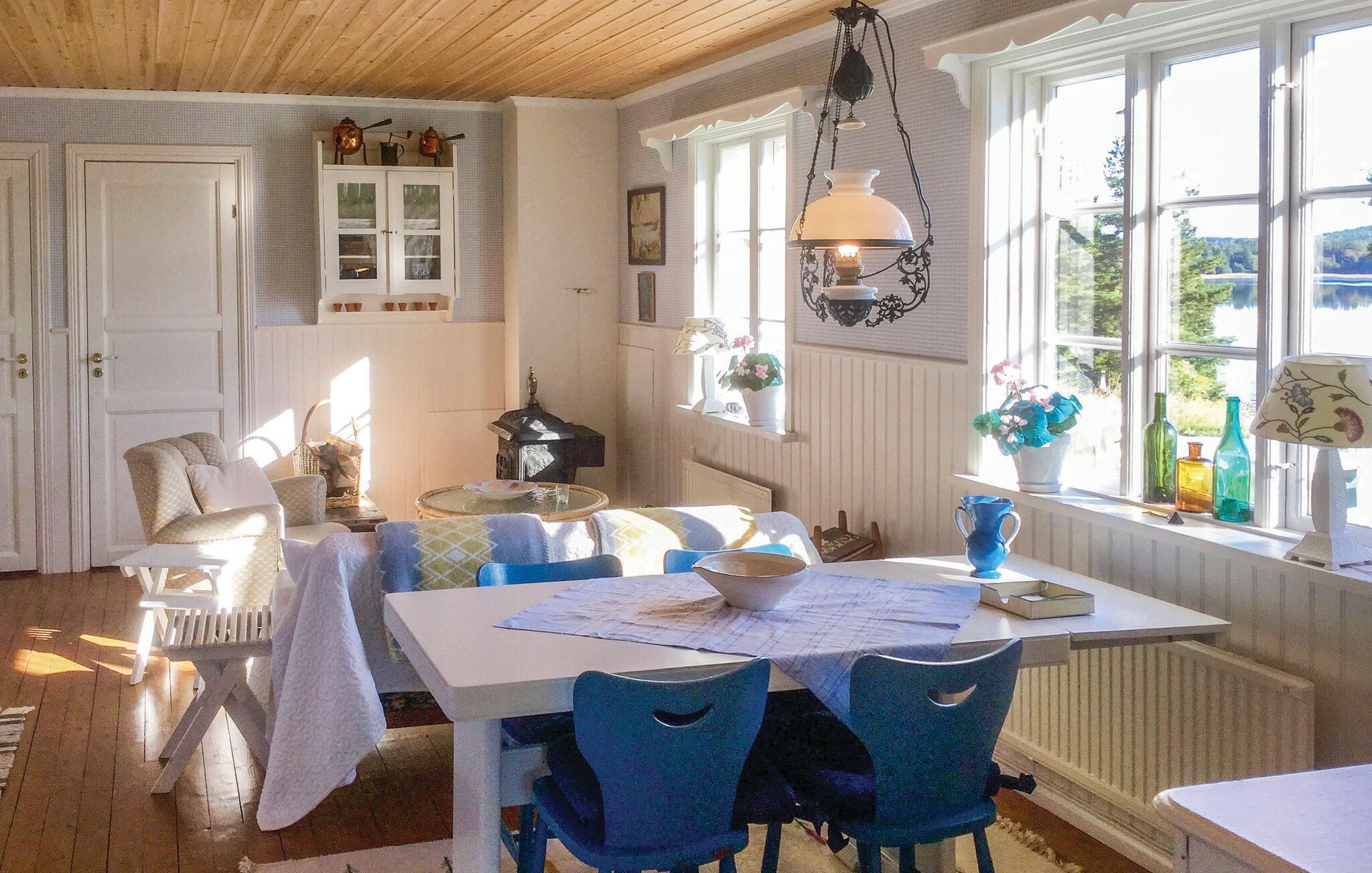 Oversvømmet med lys og stilfuldt møbleret inviterer dette hus jer og familien til at slappe af midt i en idyllisk natur. Lad jer inspirere til at lave mad i det lyse landhuskøkken med naturlige trædetaljer og nyd dagens måltider med udsigt over den rolige sø. Smid jer sammen på de komfortable sofaer og nyd en spændende bog eller en sjov aften med spil.