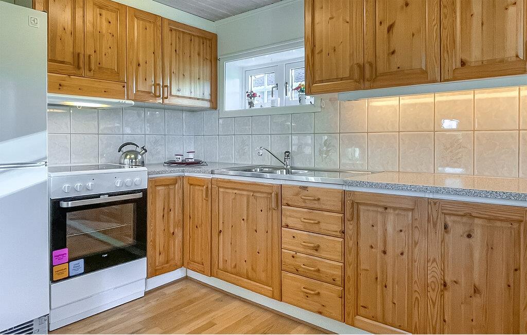 Tilbring jeres tid i dette feriehus, som med sin rolige beliggenhed og store grund tilbyder ideelle betingelser for en afslappende ferie. Læn jer tilbage i den store hjørnesofa, se en film på tv'et eller afslut aftenen med en god samtale. Brug spisebordet til fælles måltider og smag regionale specialiteter, som I kan tilberede i køkkenet med masser af opbevaringsplads. De lyse træmøbler giver værelserne en varm og indbydende atmosfære.