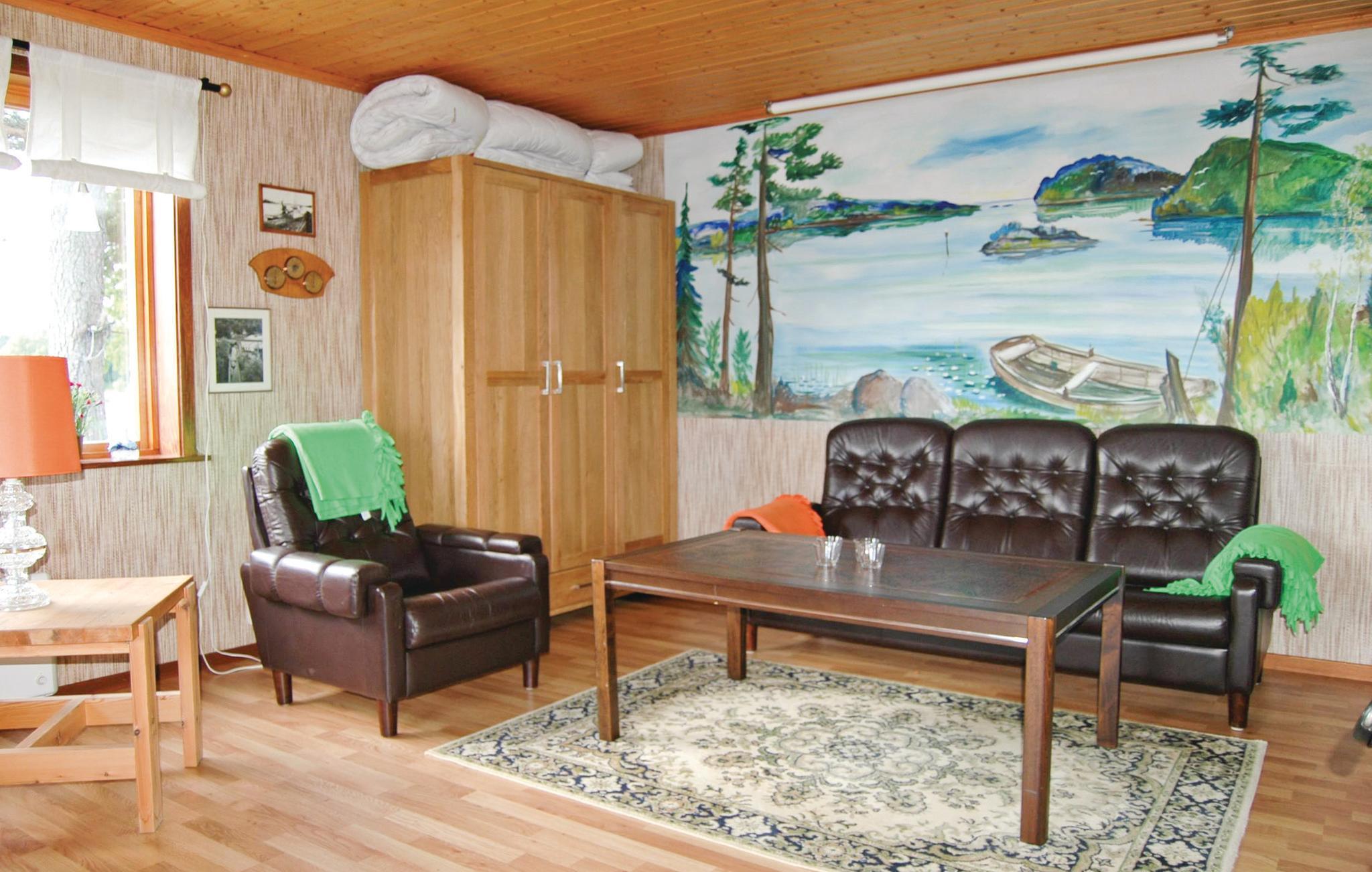 Glæd jer til dette flotte toetagers hus, som har panoramaudsigt til klipper og skær samt sejlklubbens bro. Den omgivende natur er rig på bær og svampe og her kan I være heldige at spotte elge. I kan være seks personer i huset og fordele jer i de to soveværelser samt stuen, hvor der er to ekstra sengepladser.