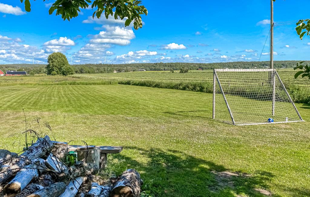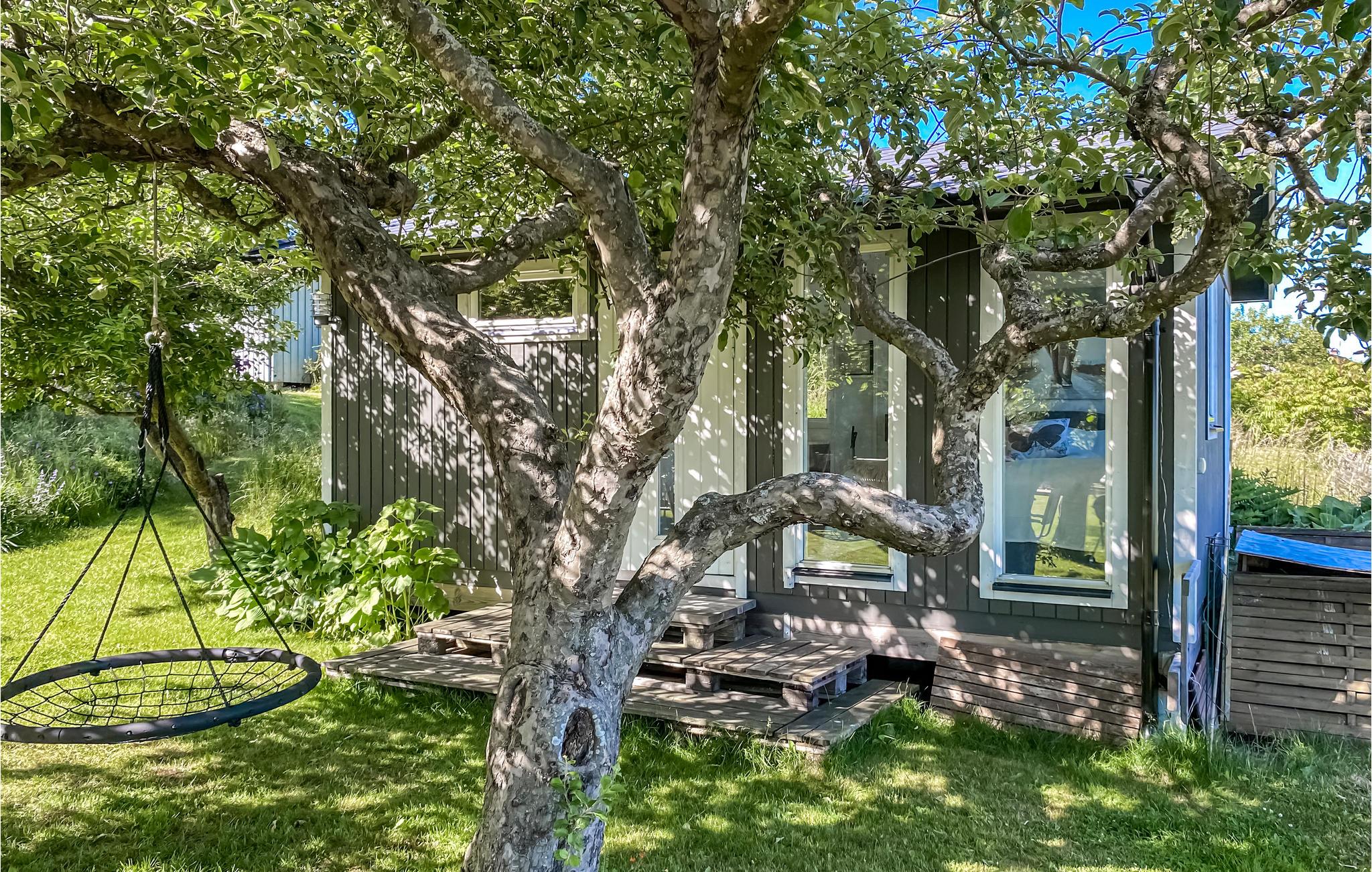 Foran huset kan I fyre op i grillen i skyggen og spise aftensmad eller slappe af på gyngen. I kan spille fodbold eller andre spil med gæster på den store græsplæne.