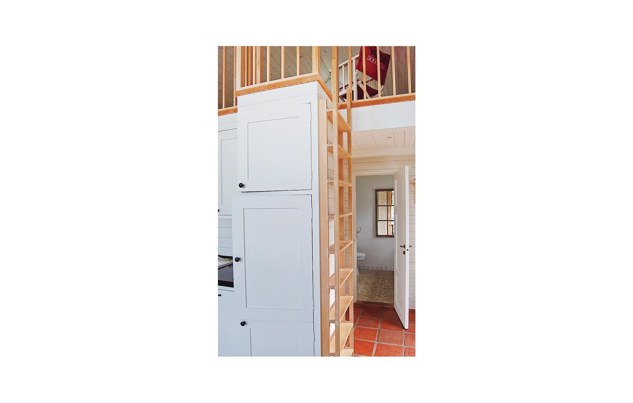 Den strategisk placerede brændeovn giver en god varme og stemning i huset i de kølige måneder. Selvom huset er meget rummeligt, så gør det høje loft at det føles meget let og luftiig i huset. Udover soveværelset i stueplan findes yderligere sovepladser på hemsen, hvortil der går en stige.