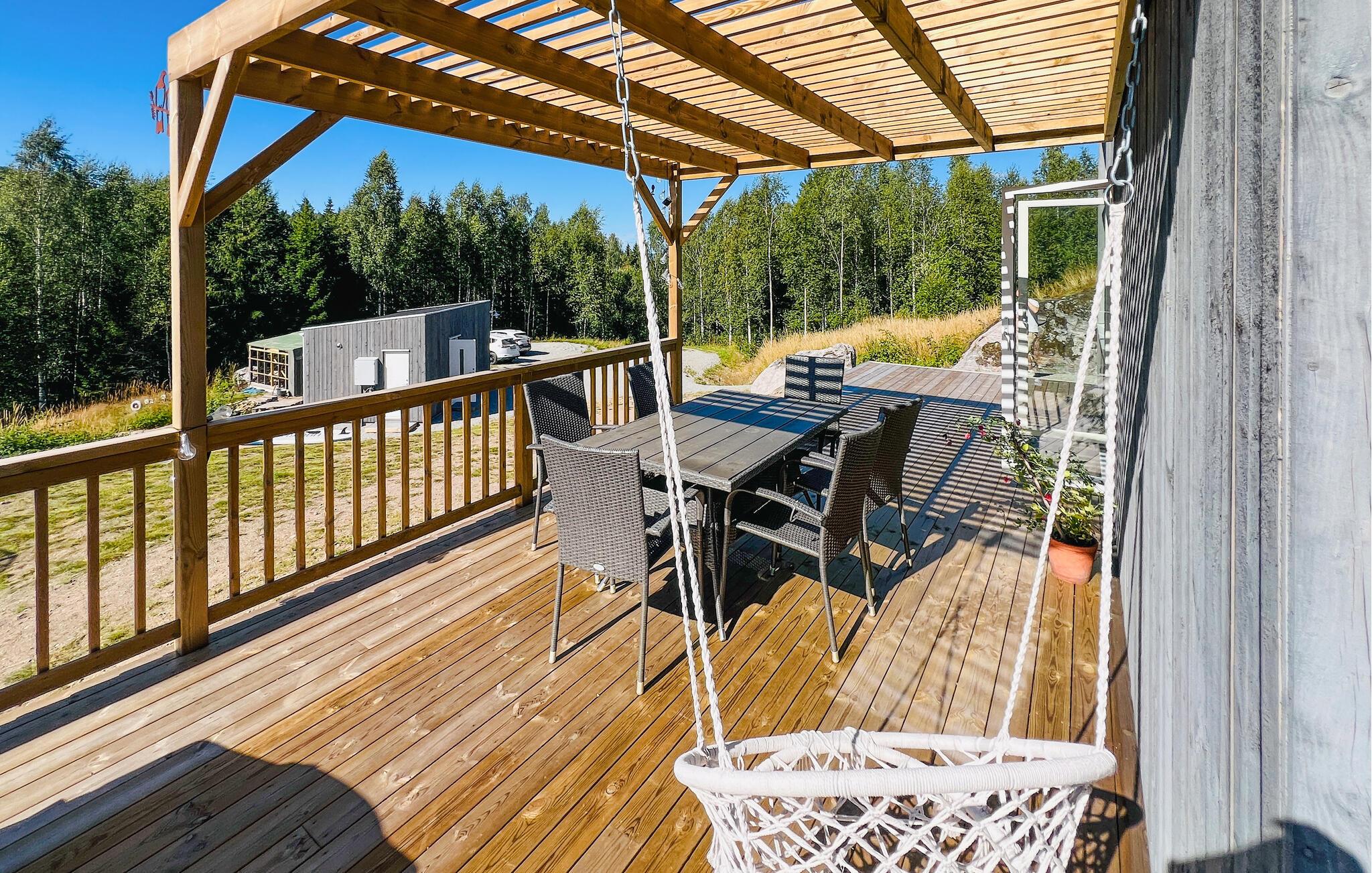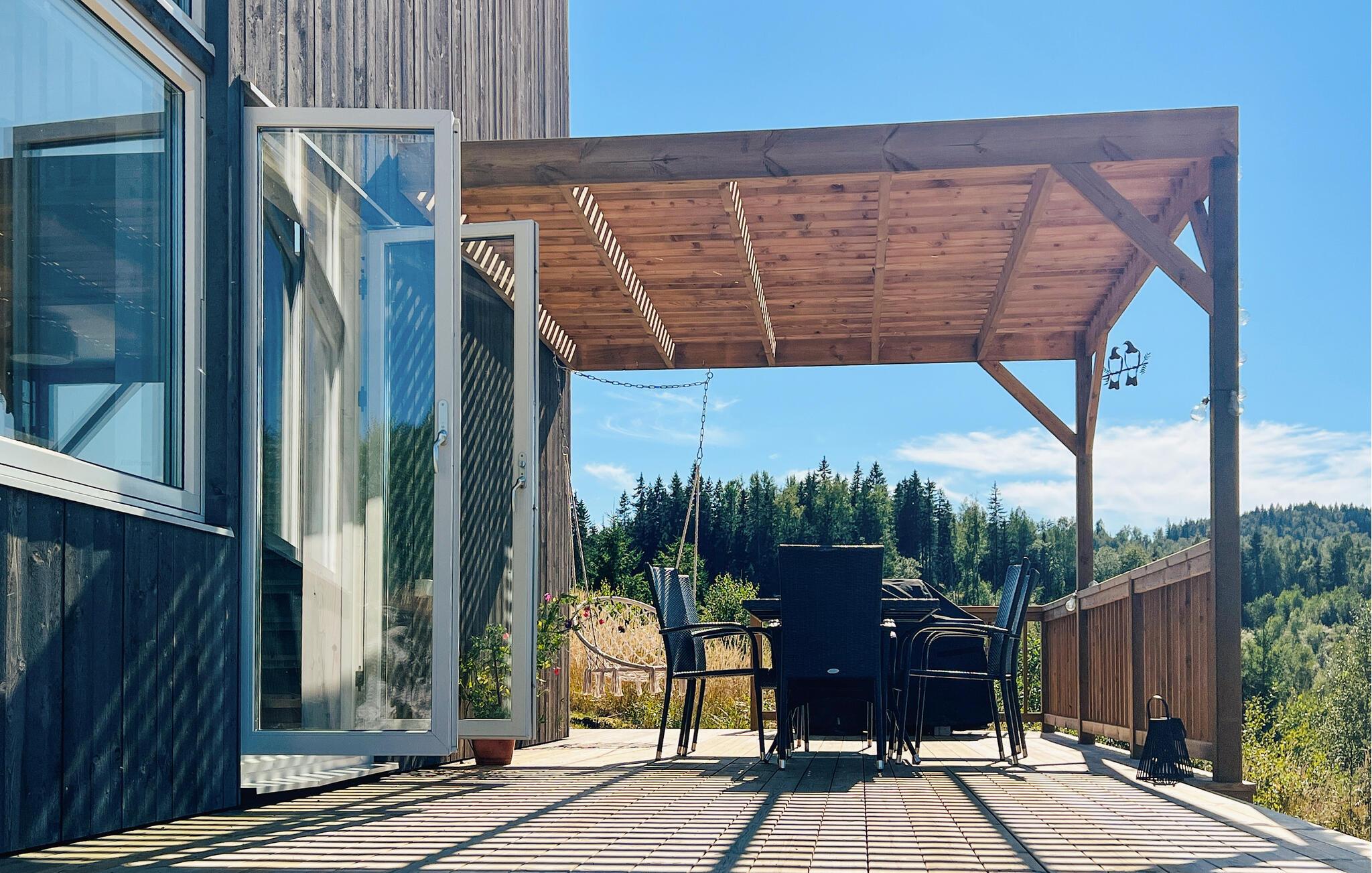 Dette fortryllende feriehus består af et hovedhus og et gæstehus, der giver jer rigelig plads til en stor familie. Beliggende på en bakke og omgivet af tætte skove, vil I nyde fred og ro. Store vinduer giver jer udsigt over det omkringliggende grønt og giver masser af naturligt dagslys i det smagfulde interiør. Fremtryl lækre måltider i det åbne køkken og nyd den beroligende atmosfære over harmoniske måltider. Glæd jer til rolige læsestunder og hyggelige spilleaftener med hele familien.