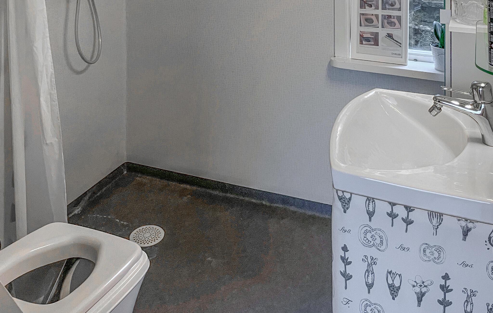 Badeværelse (nr. 1) - WC. Varmt og koldt vand. Bruser