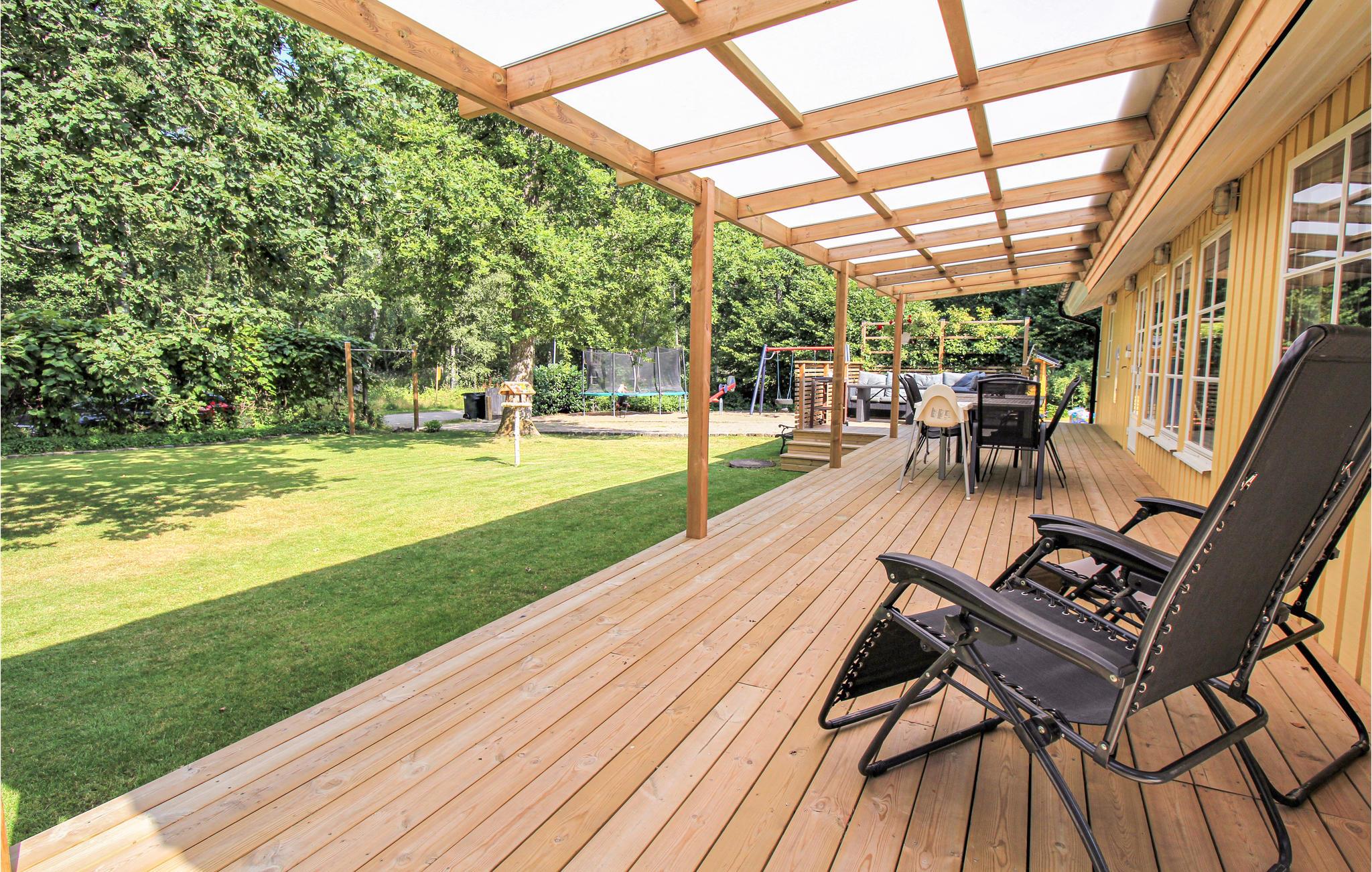 Tilbring en afslappende ferie med jeres store familie i dette hyggelige feriehus nær søen Vemmetropssjörn. Huset emmer af hygge, og I man kommer hurtigt til at føle sig hjemme her. Nyd godt af den store og lyse stue, hvor I kan tilbringe hyggelige timer sammen, lave mad, lege eller bare smække fødderne op. Opholdsstuen er udvidet med en overdækket terrasse og tilbyder et dejligt område til at spise, slappe af og solbade.