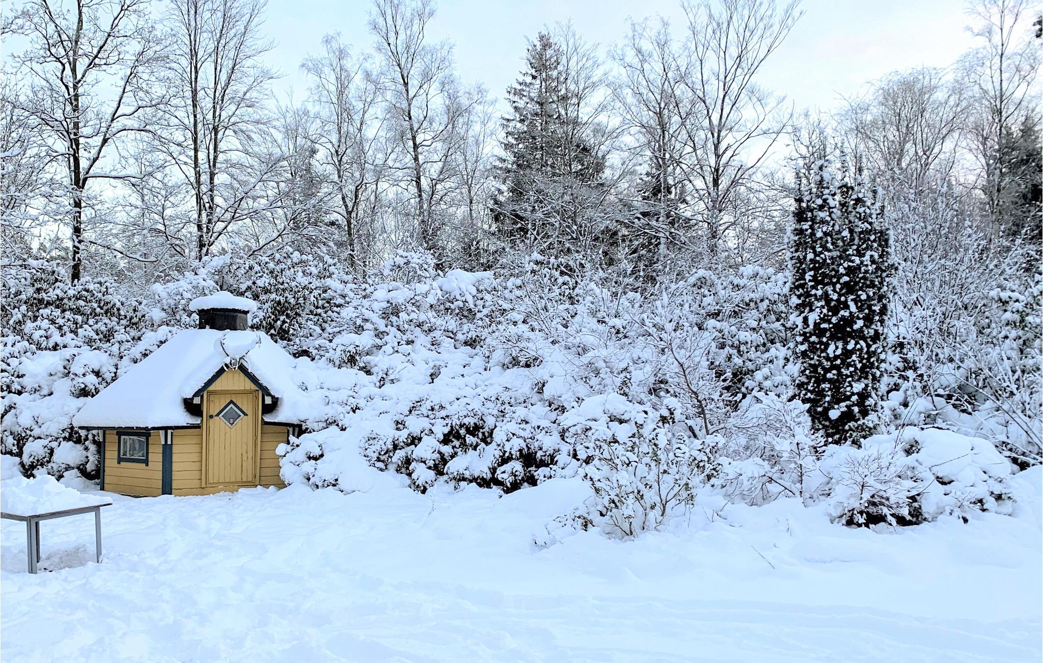 Haven er et paradis for både store og små. Her byder huset på noget unikt i form af en bålhytte i nordlandsk stil, som er typisk for det nordlige Sverige. Her kan hele familien tilbringe aftenerne foran den knitrende ild, selv når det er lidt koldere udenfor. Det fint udformede legehus med en rigtig fin legeplads og masser af aktiviteter vil sikkert give de små julelys i øjnene.
