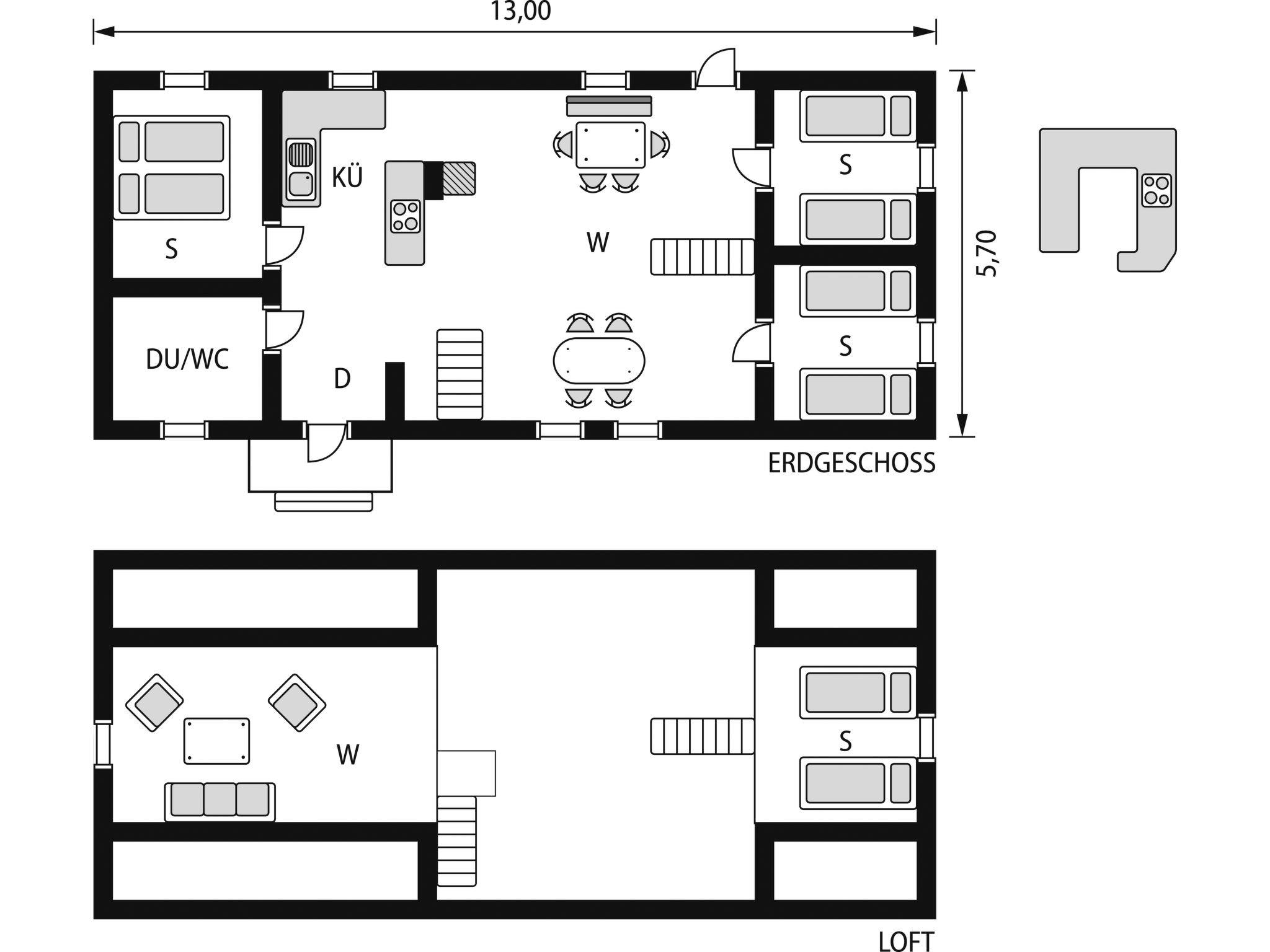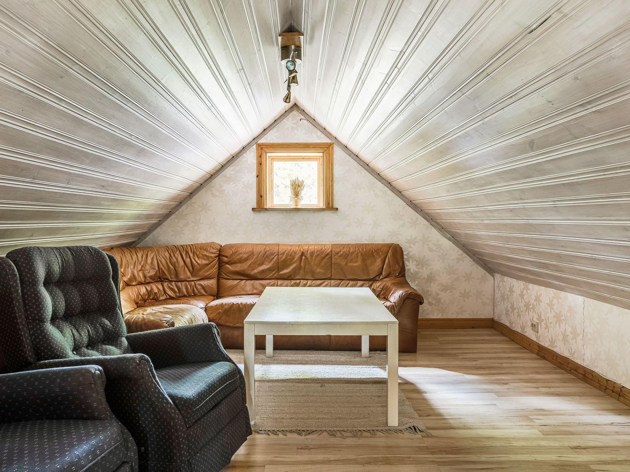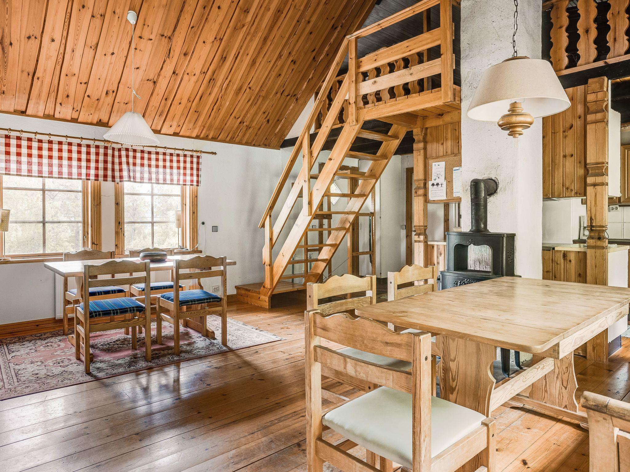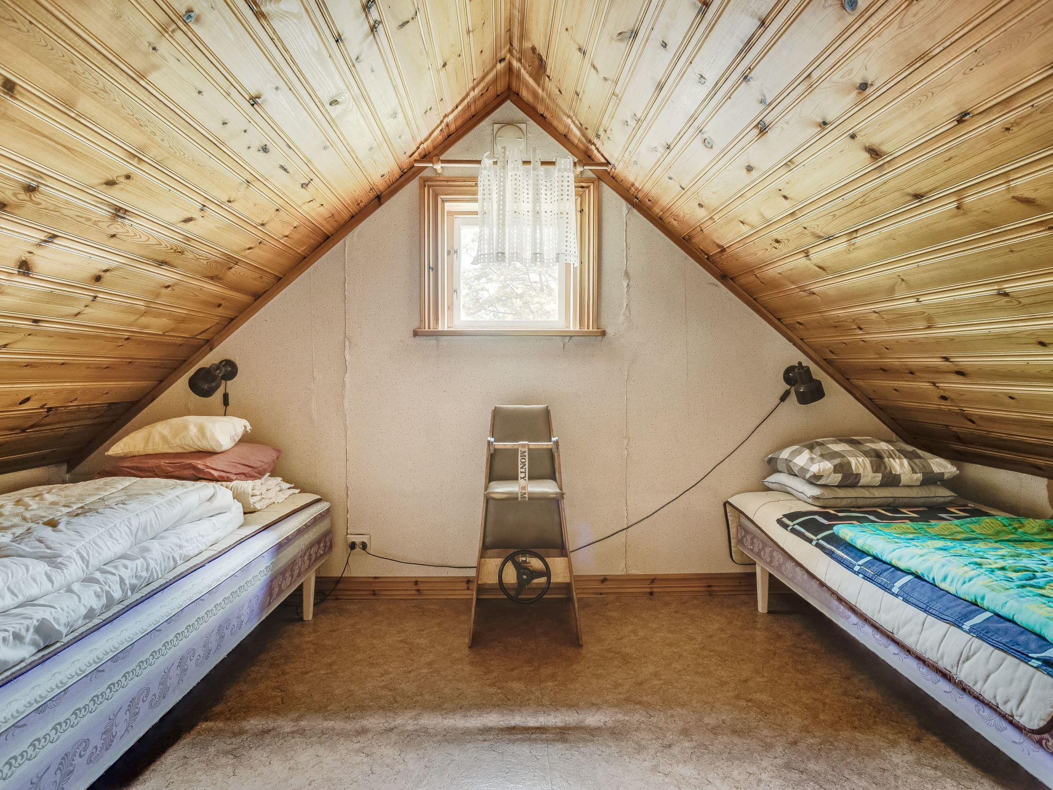 "Ängasjö", 6-room house 110 m2 on 2 levels. Bright, cosy and wooden furniture furnishings: living/dining room with Scandinavian wood stove, dining table and satellite TV. Exit to the garden. 2 rooms, each room with 2 beds. 1 room with 1 double bed. Open kitchen (3 hot plates, oven, toaster, kettle, microwave, freezer, electric coffee machine). Shower/WC. Electric heating. Upper floor: (ladder) open gallery with sloping ceilings with 2 beds. Wooden floors. Terrace furniture, barbecue (portable), sitting area. Facilities: washing machine, iron, children's high chair, baby cot. Please note: non-smoking house. Freezer approx. 60 l. Separate sauna hut (extra). Instead of an enclosed bedroom, some sleeping areas are located in an open-plan area (gallery, alcove, etc.).