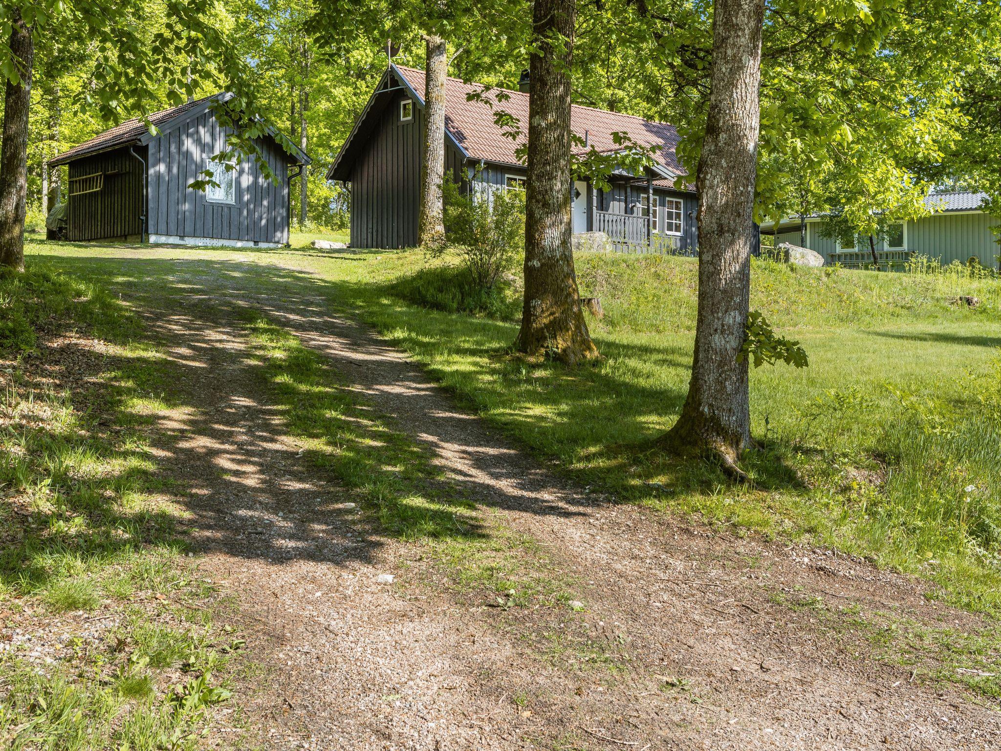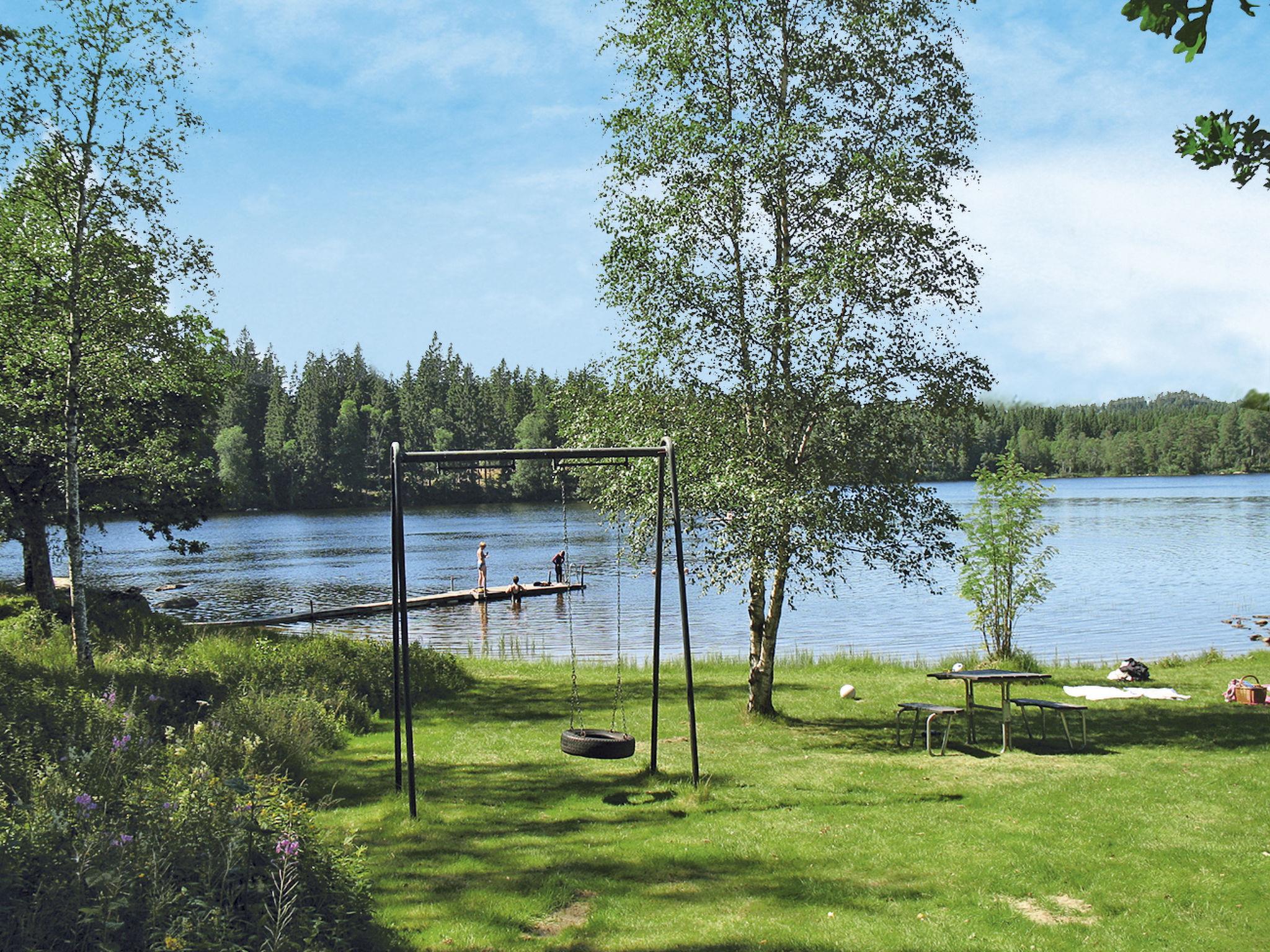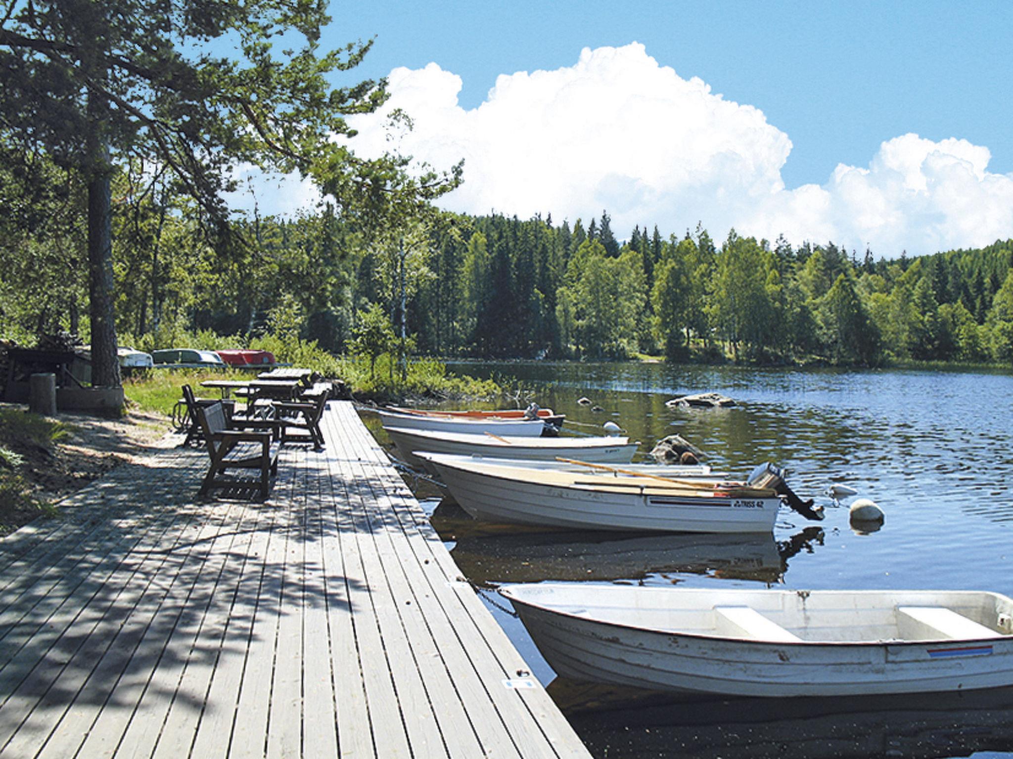 Holiday development "Ängasjö". 5 km from the centre of Östra Frölunda, 5 km from the centre of Mårdaklev, 70 km from the centre of Borås, 300 m from the lake, 1 km from the river, in the countryside. Bathing jetty. Private: natural state property 1'400 m2 with trees, meadow. In the house: sauna (extra). Available: canoe (extra). Rowing boat (on request), parking (for 4 cars) on the premises. Shop 12 km, supermarket 25 km, bus stop 1.4 km, railway station "Borås" 60 km, ferry "Helsingborg" 165 km, sandy beach 300 m, indoor swimming pool 25 km. Fishing possibilities 300 m.