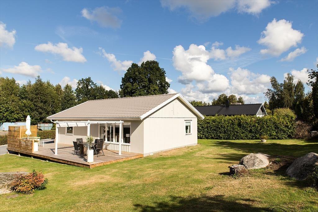 Sommerhus i Östra Göinge, Sydsverige, med plads til 4 voksne, 1 børn og 1 husdyr. Der er en hyggelig indretning, og du finder desuden vaskemaskine, opvaskemaskine og tørretumbler i boligen.