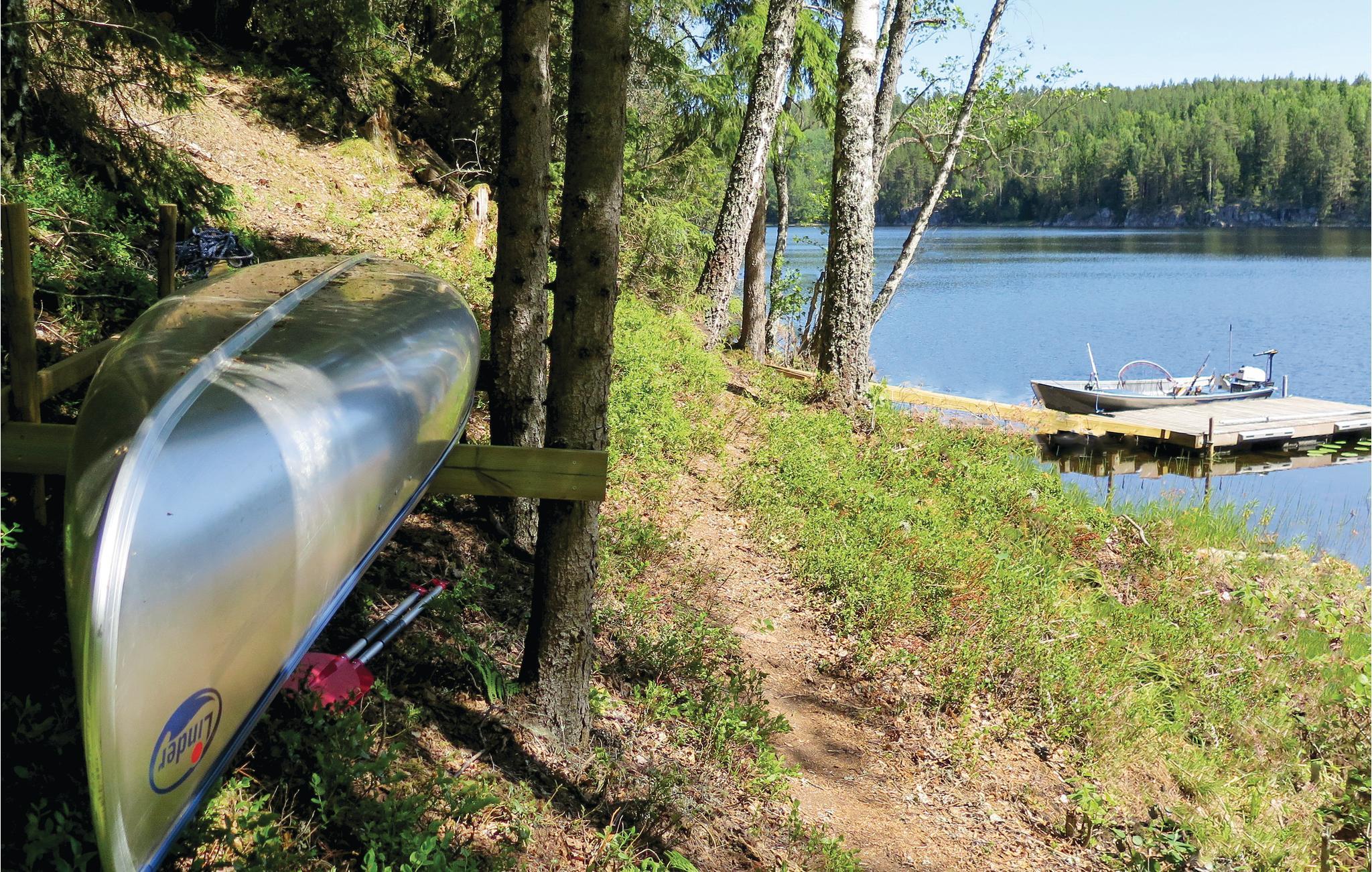 Huset ligger i skovbrynet med en skøn udsigt over søen fra den dejlige terrasse. Søen er en drøm for lystfiskere med regnbuelaks, store gedder, aborre mv. Der er mange former for vildt i området, er I heldige, møder I en elg. I sensommeren er her mange bær og svampe. Der hører robåd, motor og kano med til huset. Ekstra både og motorer kan lejes af ejer. I Töcksfors er der to store indkøbscenter (22 km).