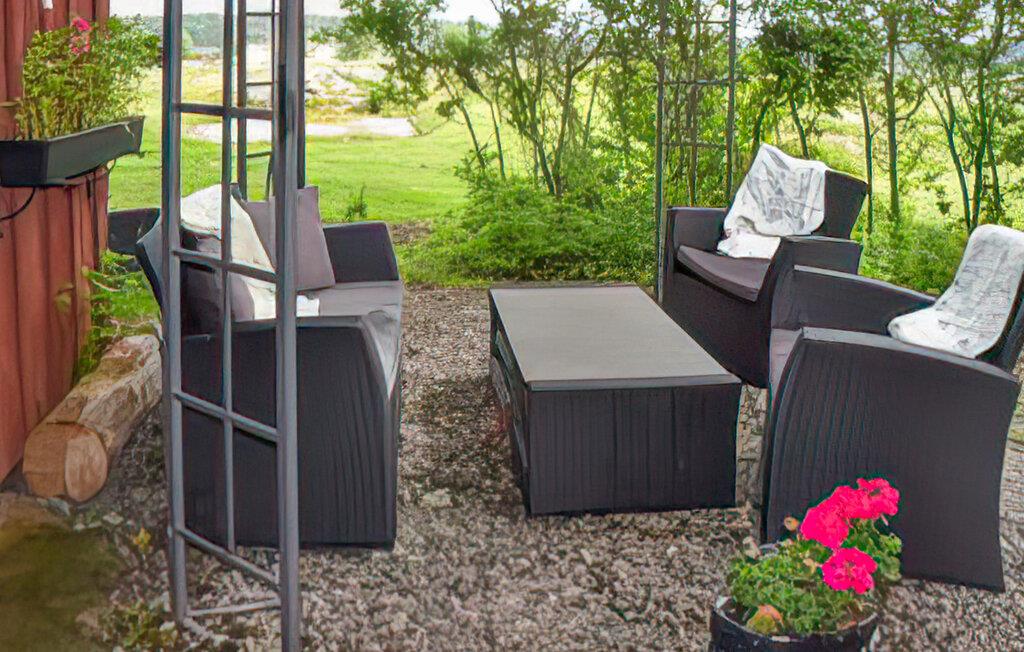 På jeres åbne terrasse kan I nyde jeres første kop kaffe i naturlig skygge, se de omkringliggende grønne områder eller tænde op i grillen.