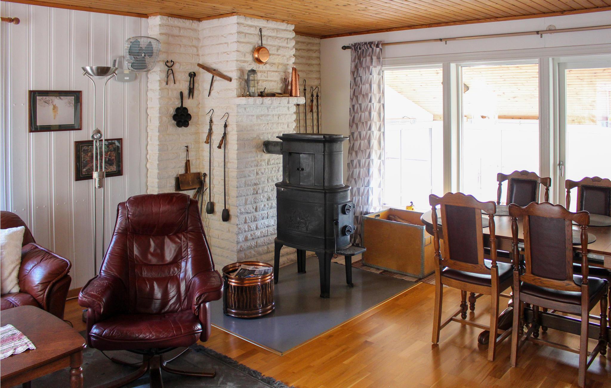 I huset findes en opholdsstue med brændeovn til hyggelige stunder. Køkkenet er et landkøkken med opvaskinemaskine. Huset er perfekt til en familie, her findes 3 soveværelser samt et vaskerum. Ved huset findes en stor havestue samt en åben terrasse, hvor I kan nyde de dejlige, solrige dage.