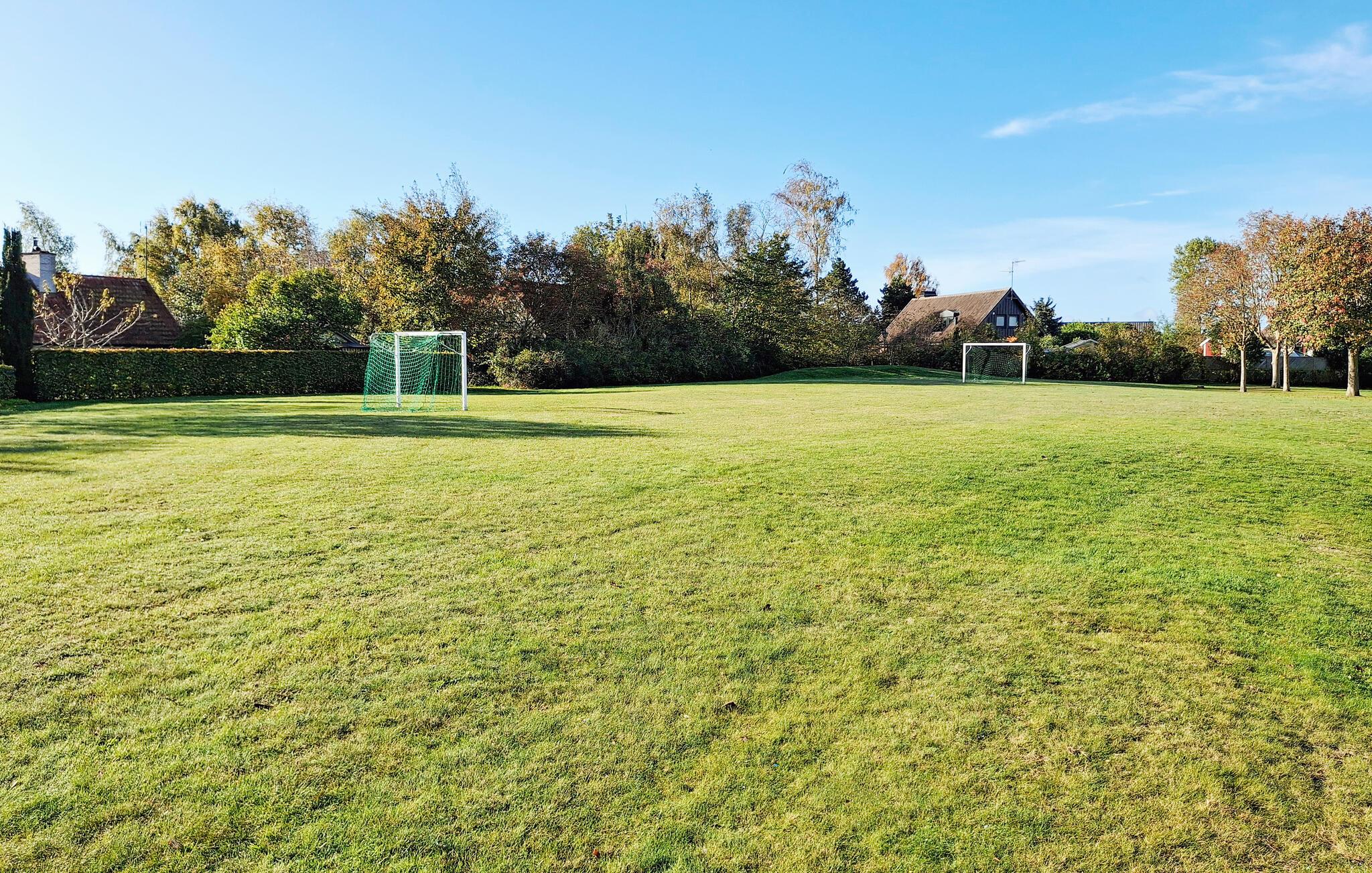 Træd ud i den velholdte have. Slap af på terrassen med havemøbler, eller brug grillen til fælles måltider under åben himmel. Herfra kan I nyde udsigten over den store græsplæne med fodboldbane og legeplads.