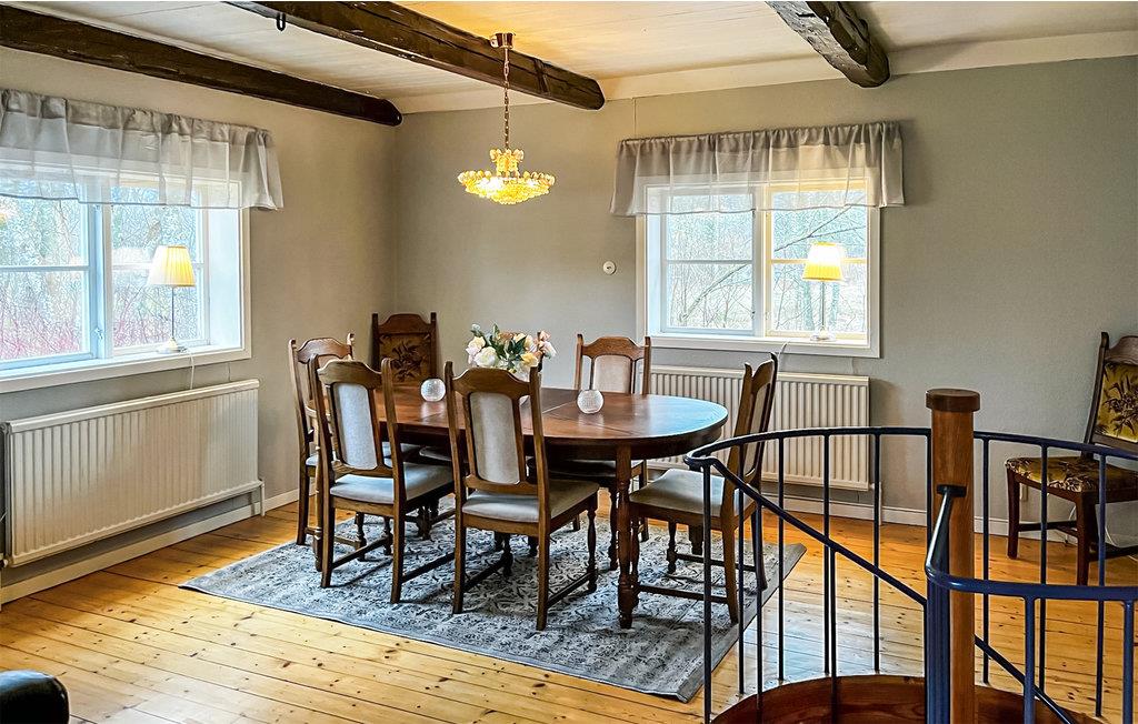 Glæd jer til dette feriehus, som har gode rammer til den store familie eller en tur med jeres gode venner. Huset er hyggeligt indrettet med rustikke elementer som pejsen i kælderen. Den store grund lægger op til boldspil i solen eller en kop kaffe i det grønne.