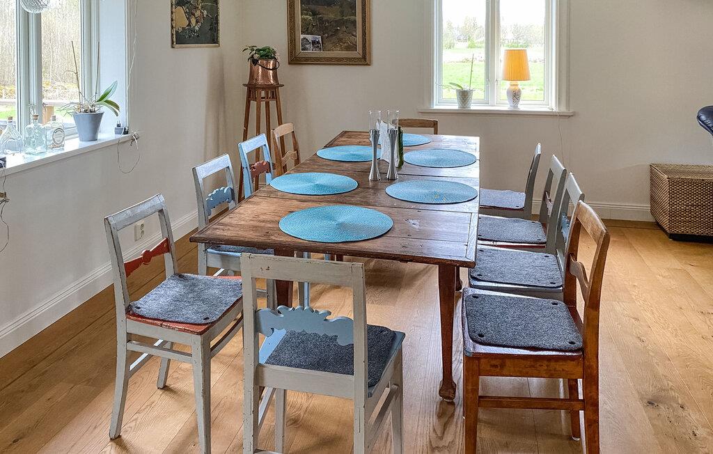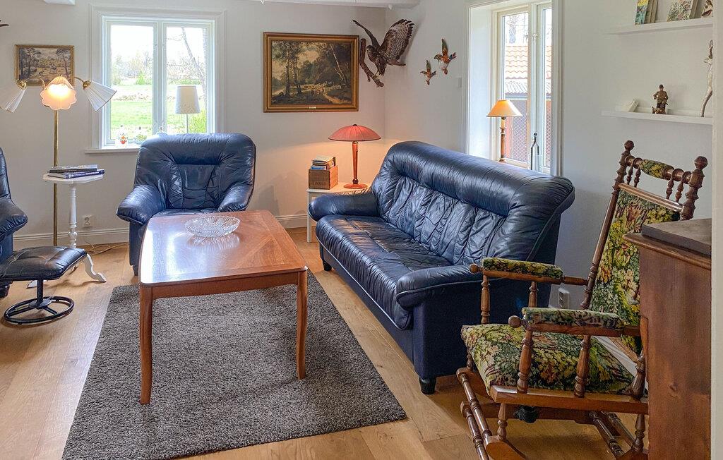 Den fredelige beliggenhed, den store naturgrund og de hyggelige møbler i jeres feriehus skaber de perfekte rammer for en varieret familieferie. Glæd jer til den rummelige opholdsstue med komfortable sofaer, trægulve og en pejs. Det tilstødende køkken er attraktivt møbleret og tilbyder masser af bordplads, moderne apparater og et lille siddeområde til en kaffepause. find sammen til måltider ved det rustikke spisebord.