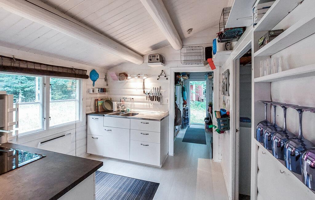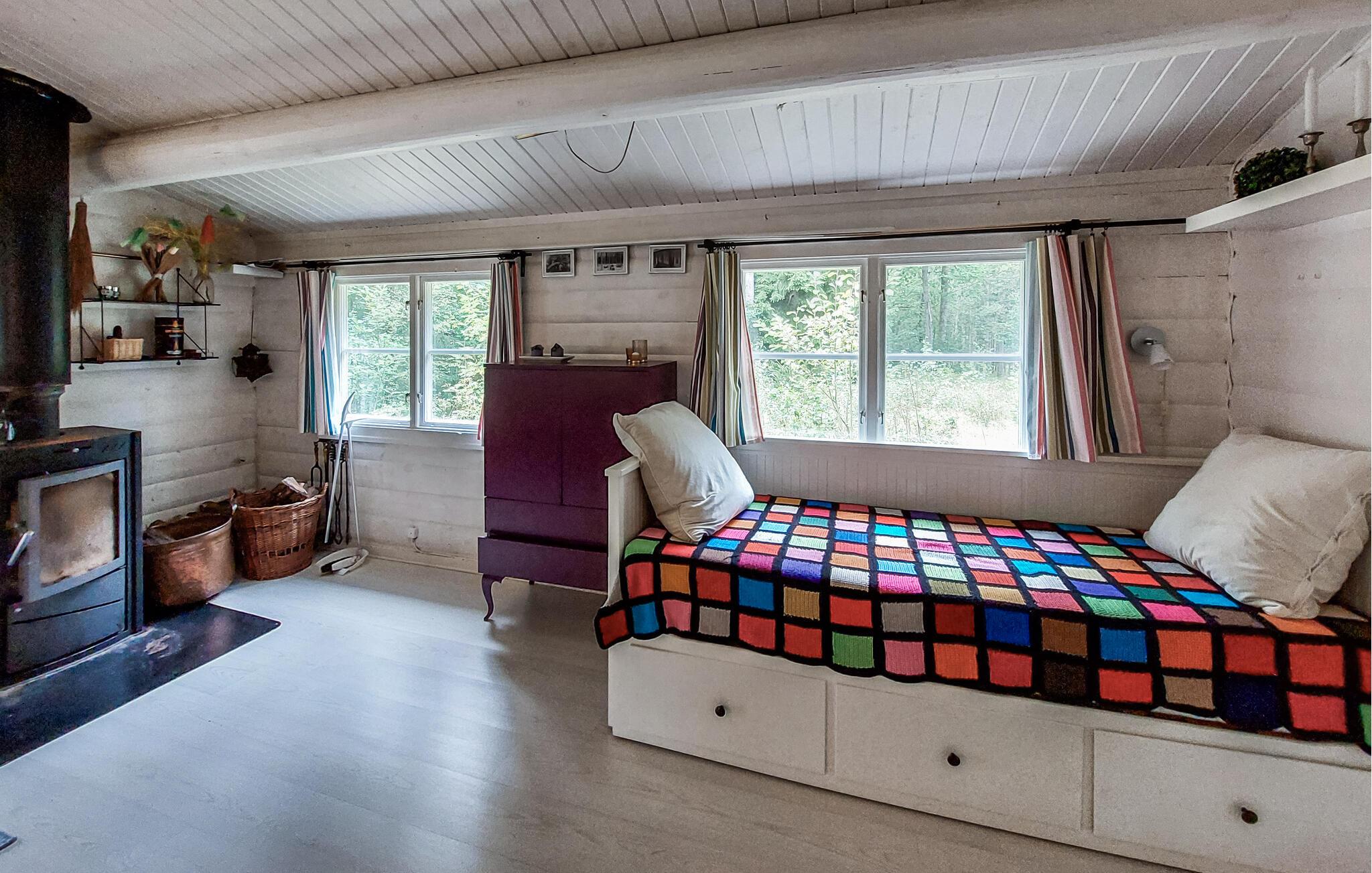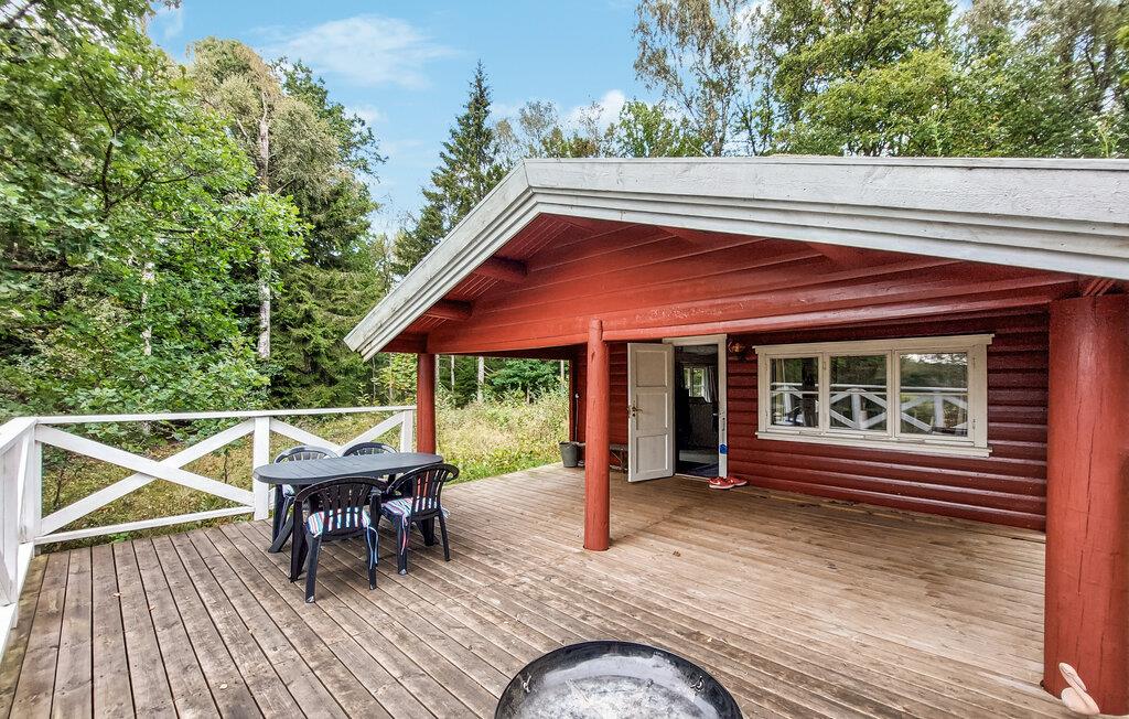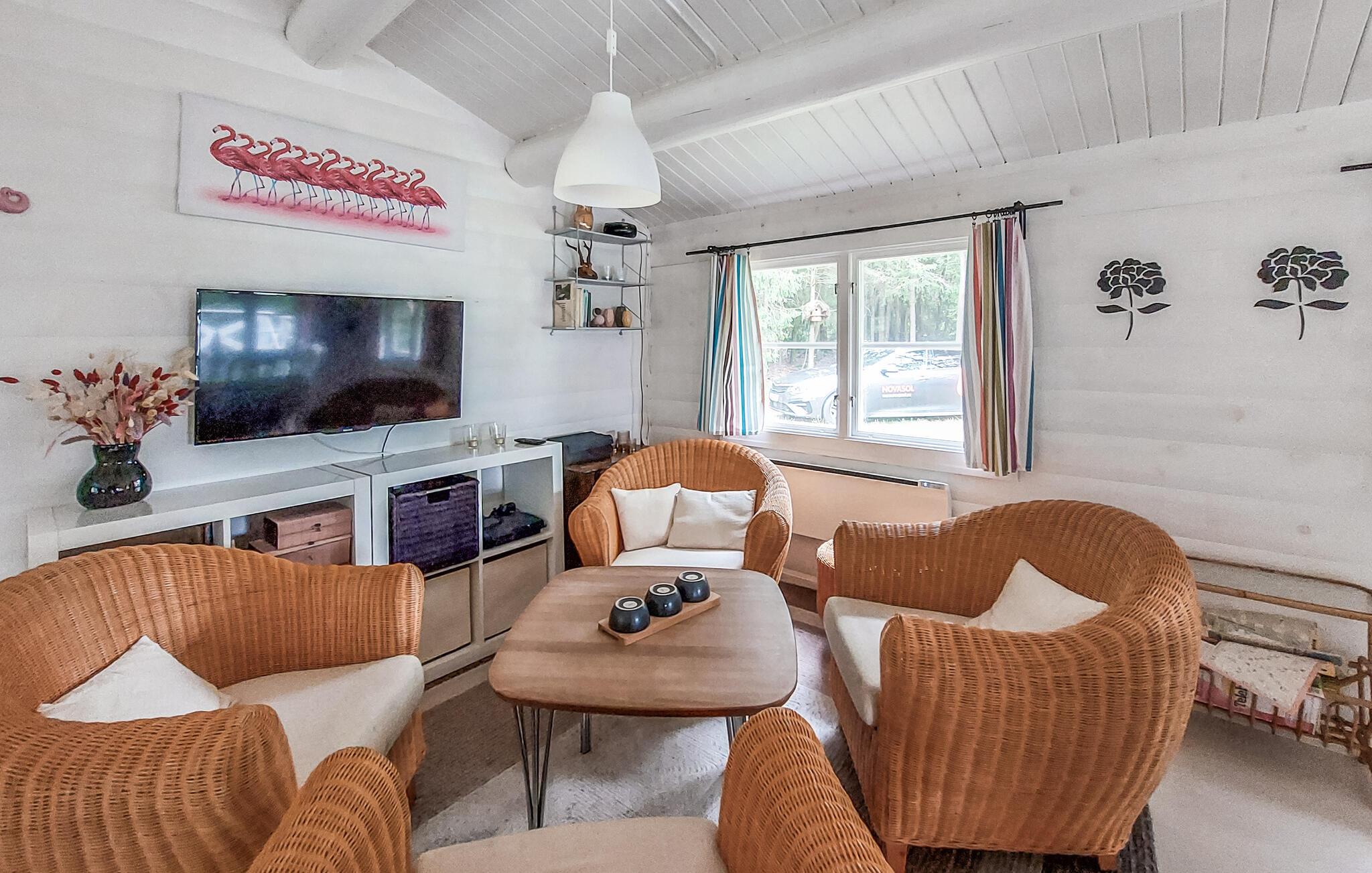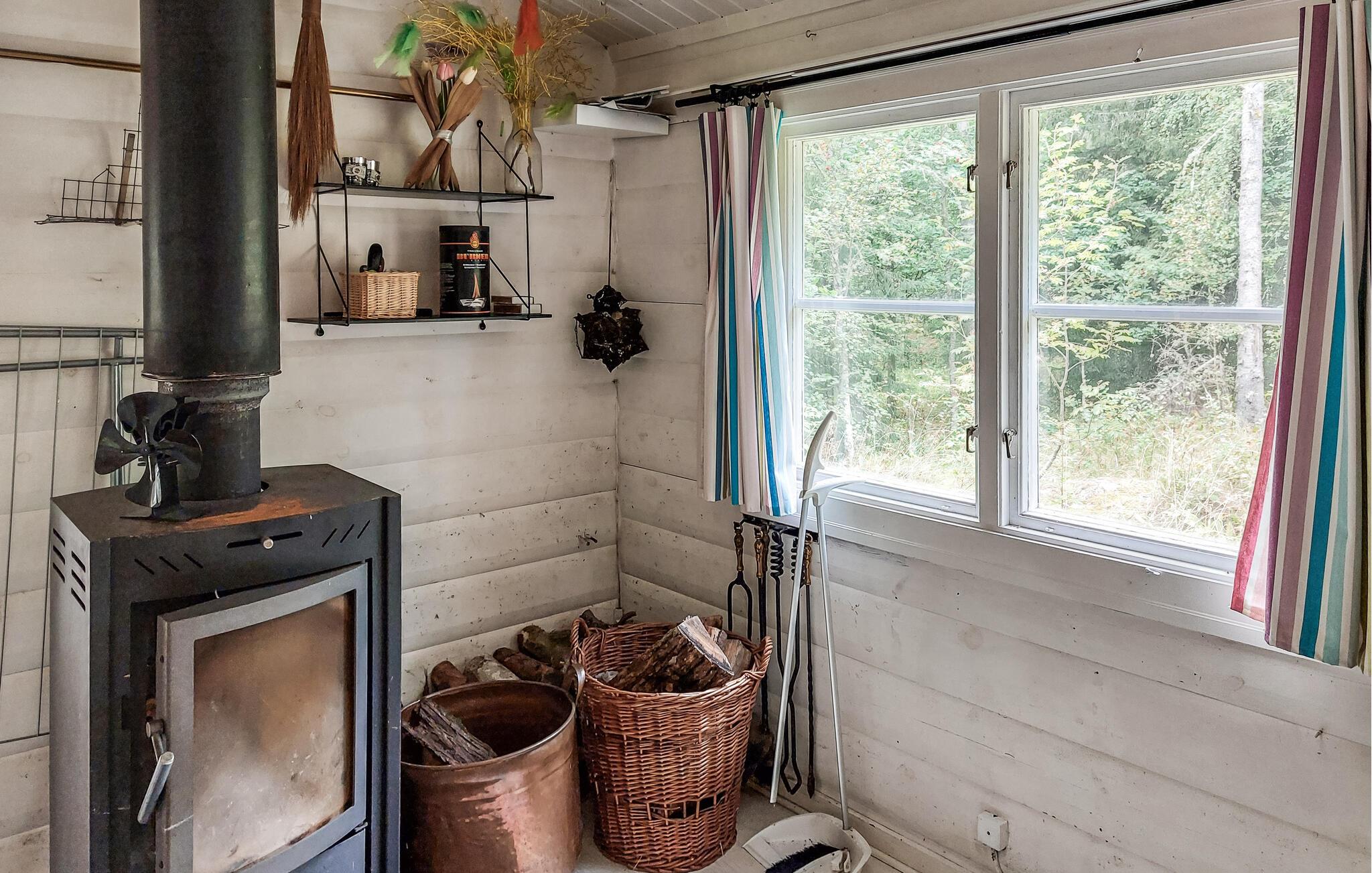 Indlejret i naturen tilbyder jeres charmerende træhus en rummelig terrasse med havemøbler, ideelt til lange aftener i de rolige omgivelser. Nyd skovens stilhed, mens I slapper af på terrassen og betragter naturen. Husets indre er lige så indbydende som de udendørs områder. Den hyggelige opholdsstue er lys og venlig og tilbyder rigelig plads til jeres familie eller venner. Læn jer tilbage i de komfortable lænestole og nyd fælles aftener med en film, en god bog eller sjove selskabsspil. Saml jer ved spisebordet til hyggelige måltider. I kan også gøre det hyggeligt ved brændeovnen og lytte til den afslappende knitren fra ilden.