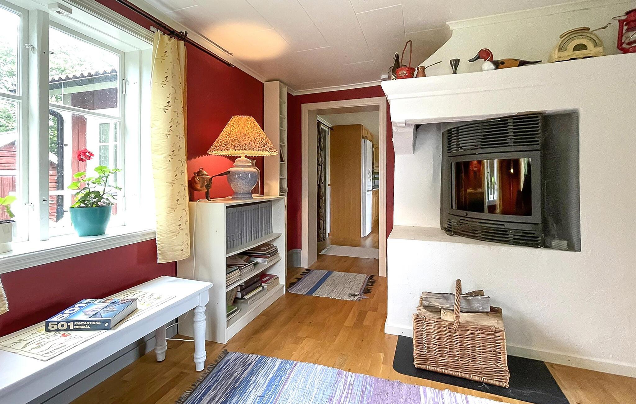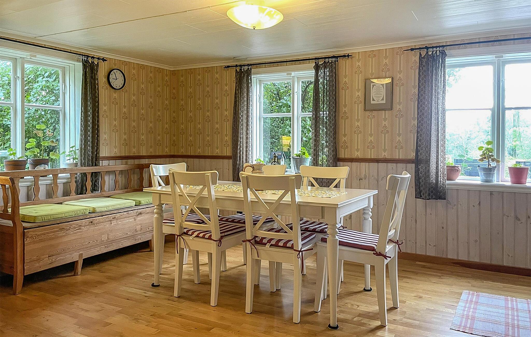 Her bor I i et typisk svensk træhus, der tilbyder jer et afslappende ophold omgivet af naturen. Gør det behageligt i stuen ved pejsen og afslut dagen i den hyggelige varme. Brug det andet siddeområde med sofa og læselampe til at læne jer tilbage med en god bog. Lav mad i det store køkken med træmøbler, og sæt jer ved det store spisebord for at nyde måltiderne sammen i hyggeligt selskab.
