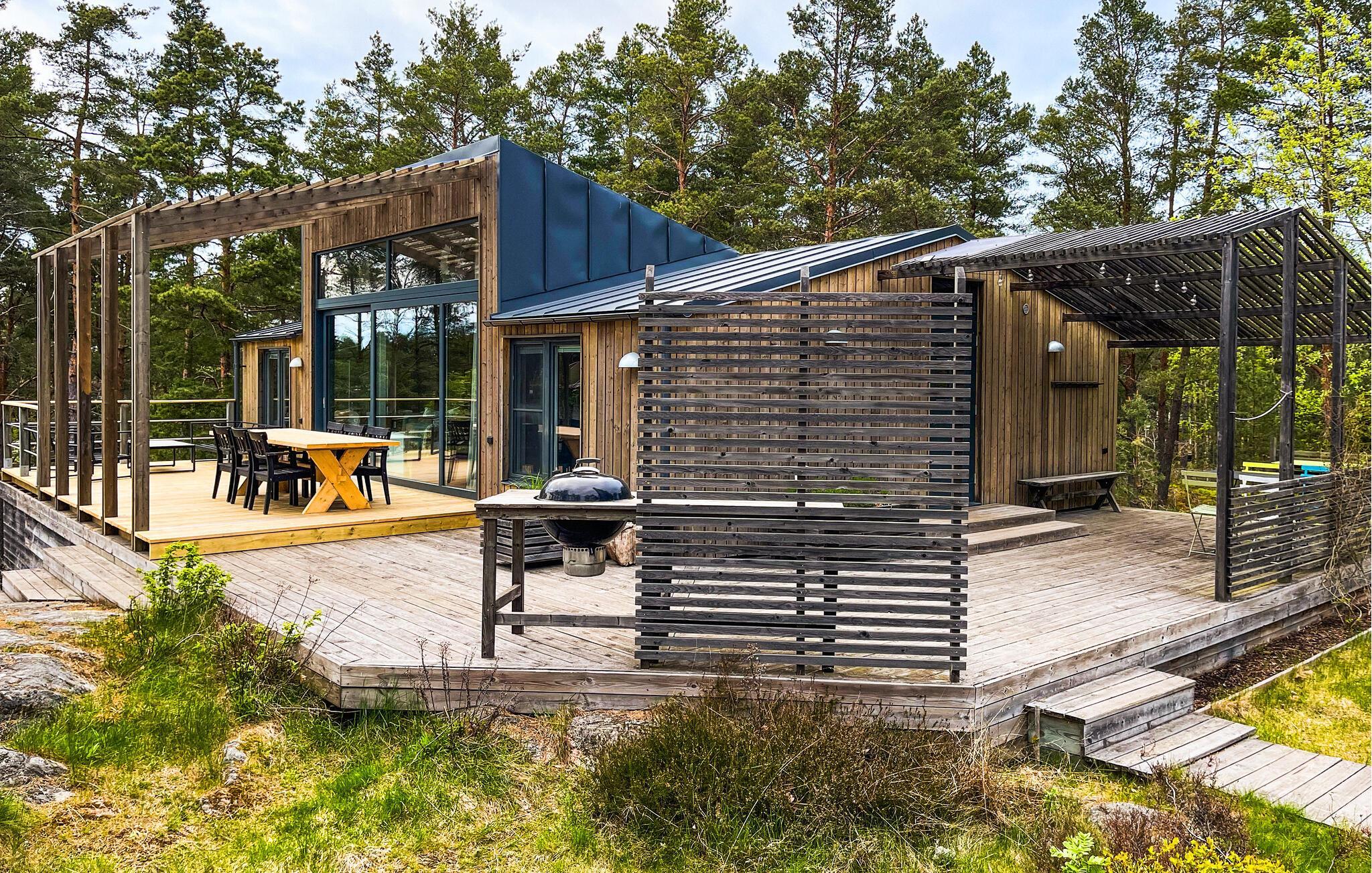 Huset ligger kun 150 m fra vandet og har en stor, dejlig terrasse, hvor du kan drikke morgenkaffen og planlægge dagens aktiviterer - og slutte selvsamme dag med et godt glas vin.