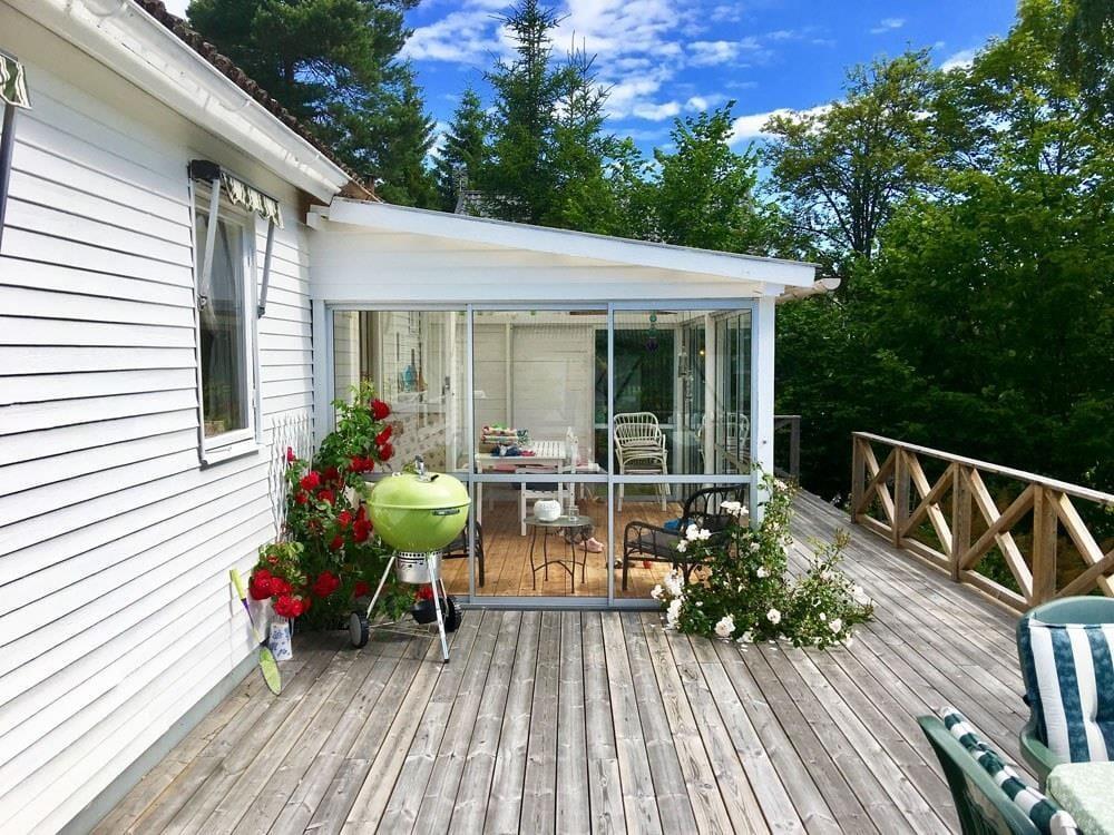 Sommerhus med søudsigt i fantastisk beliggenhed ved den store sø Vättern, nær Askersund – med skøn terrasse og vinterhave – fiskeri uden fiskekort.