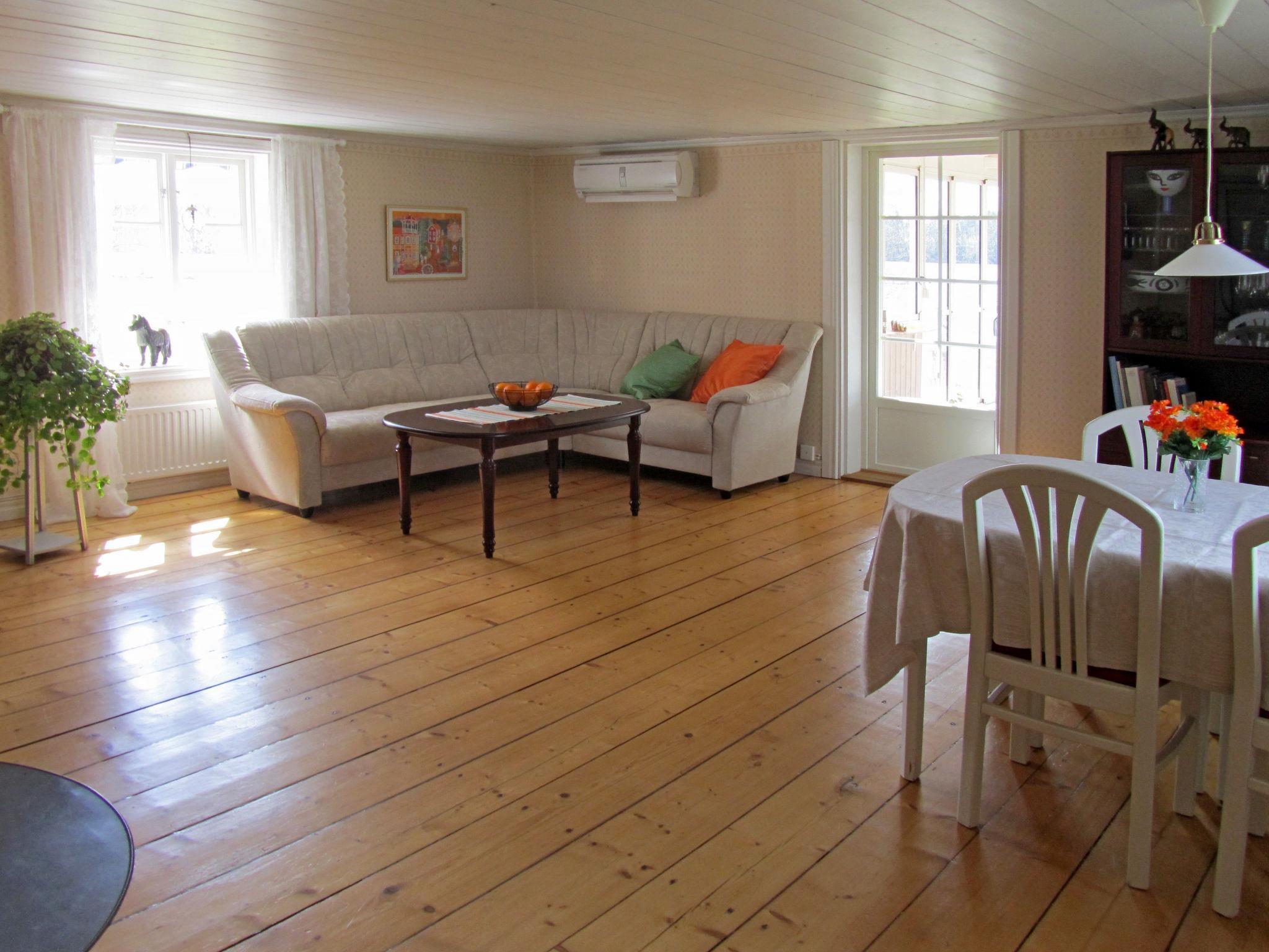 "Stora Gryten", 4-room house 145 m2 on 2 levels. Cosy furnishings: living/dining room with Scandinavian wood stove and dining table. Exit to the veranda. Open kitchen (oven, dishwasher, 4 ceramic glass hob hotplates, microwave, freezer, electric coffee machine) with open-hearth fireplace (only for decoration). Shower/WC. Upper floor: living/sleeping room with sloping ceilings with 1 double sofabed, Scandinavian wood stove and satellite TV. 1 room with sloping ceilings with 1 double bed. 1 room with sloping ceilings with 2 beds. Shower/WC. Heating. Wooden floors. View of the lake. Facilities: washing machine, children's high chair, baby cot. Internet (WiFi, free). Please note: non-smoking house. Smoke alarm, fire extinguisher. Freezer approx. 60 l.