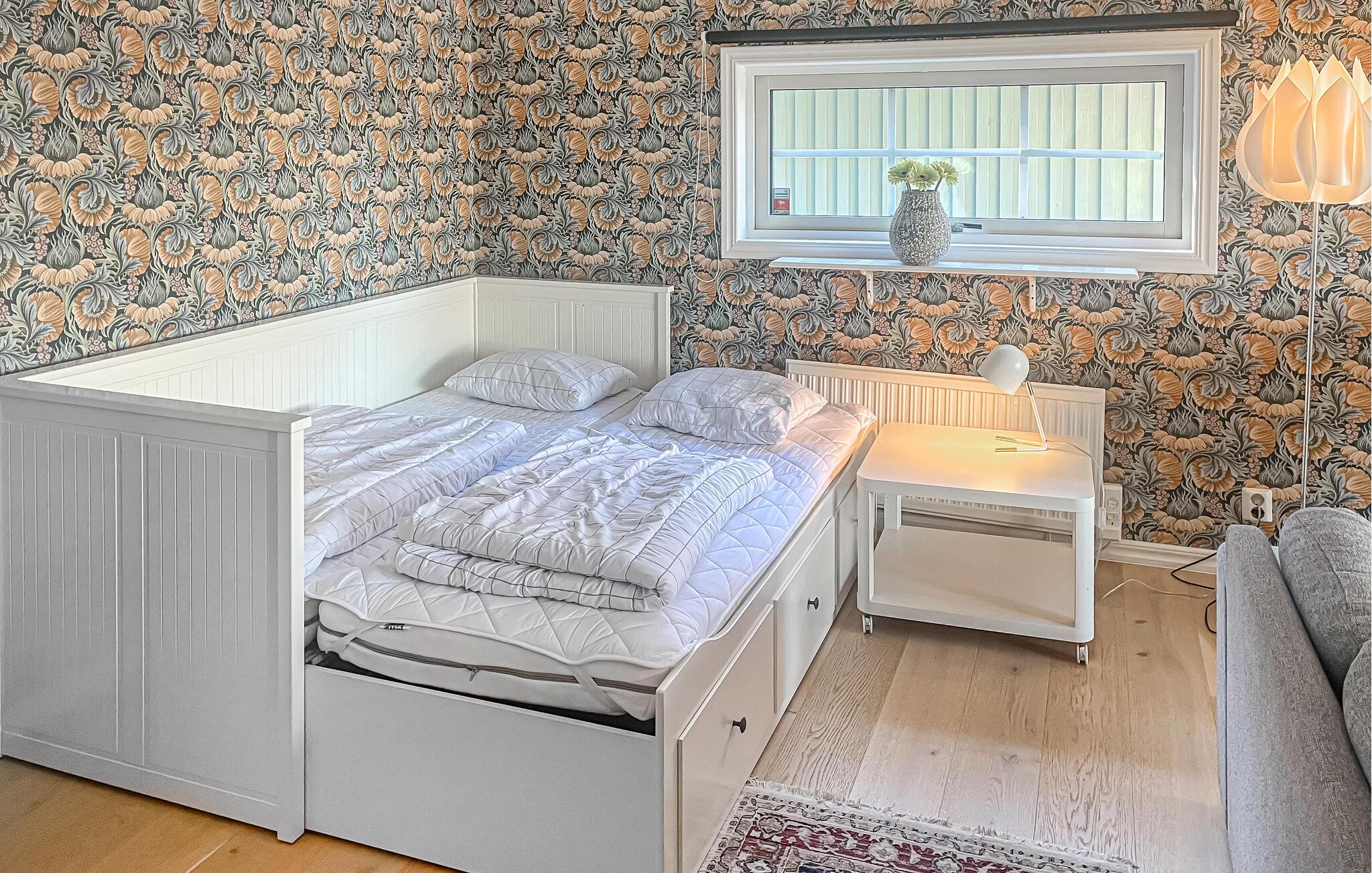 Huset er rigtigt hyggeligt og har en åben og rummelig planløsning, samt et anneks hvor der står to senge. Lige foran huset er en dejlig strand og her ligger husets båd som I frit kan bruge.