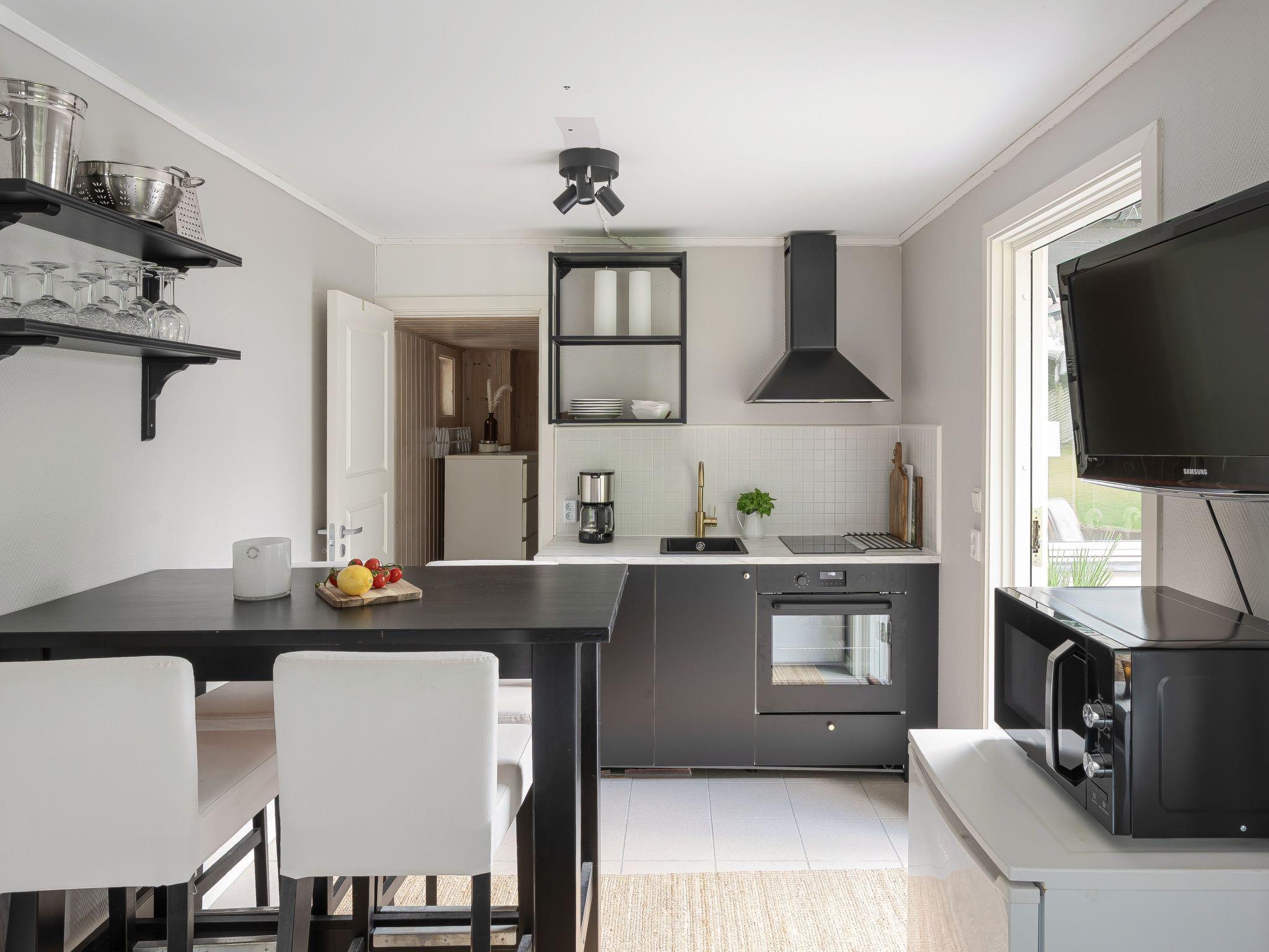 "Dejarp Stugan", 4-room house 55 m2. Beautiful furnishings: living/dining room with TV. Exit to the garden. 1 room with 1 double bed. 1 room with 1 double bed. 1 room with 1 double bed and shower. (oven, dishwasher, 2 induction hot plates, toaster, kettle, microwave). Exit to the garden. Shower/WC. Heating. Wooden floors. Facilities: washing machine, dryer. Please note: one double bedroom is outside the apartment. Non-smoking house. Smoke alarm.