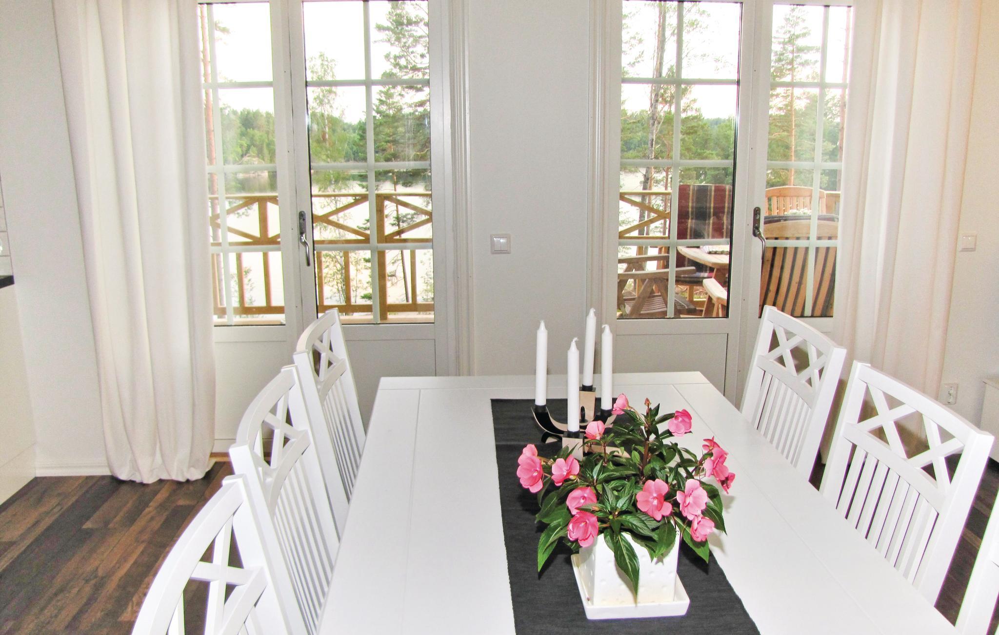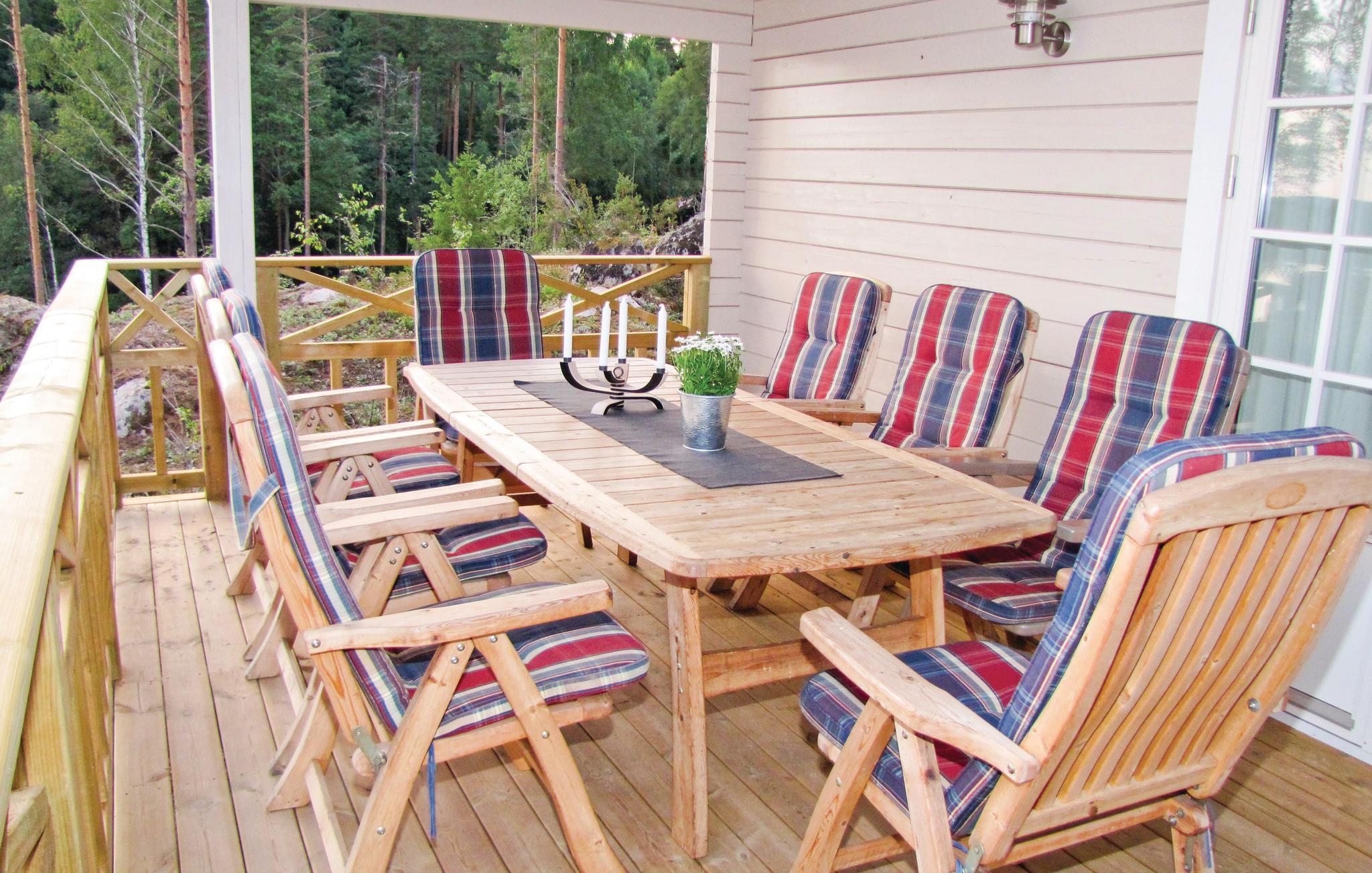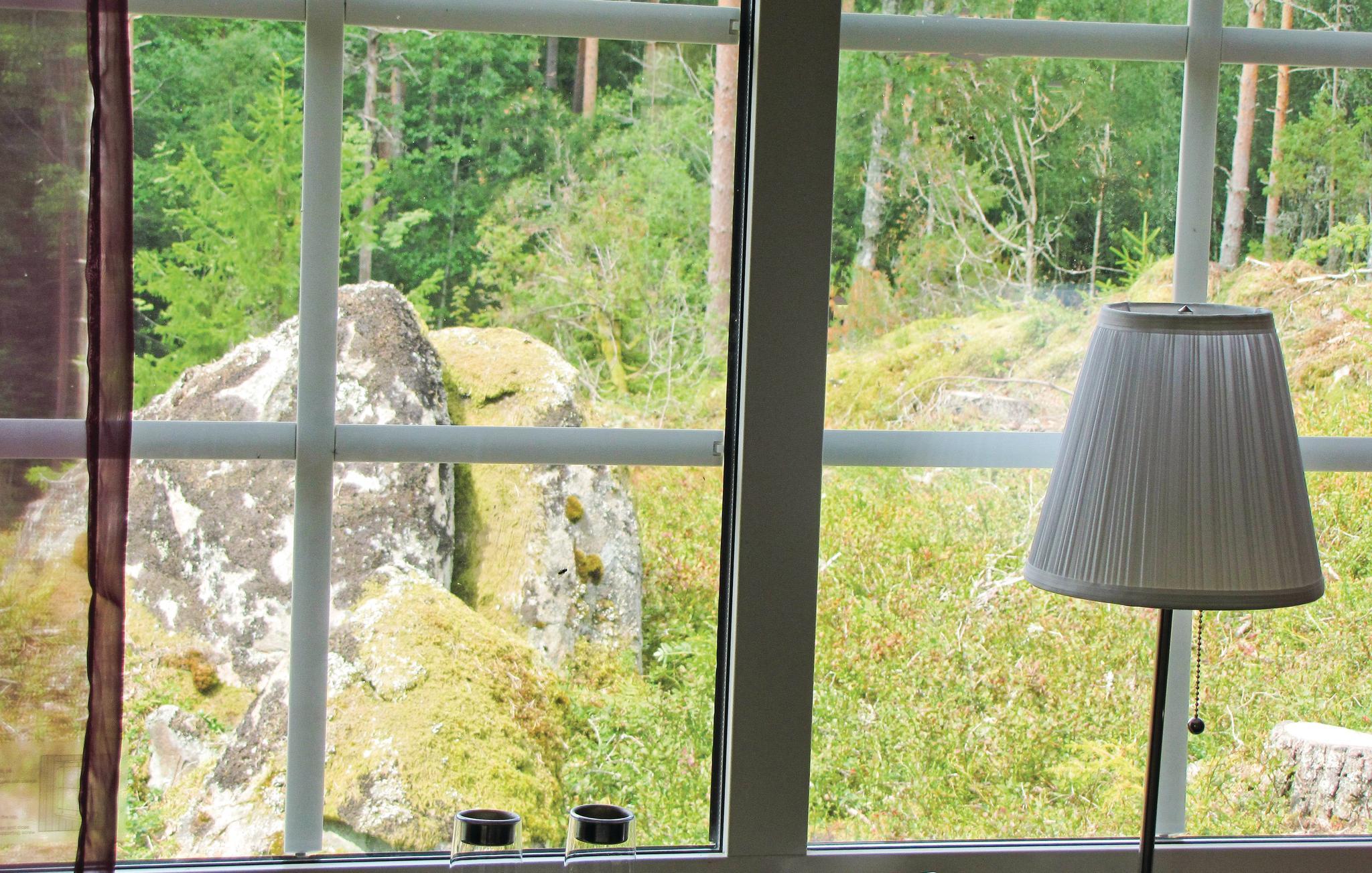 Huset er beliggende i skovbrynet med udsigt over søen Foxen fra den store terrasse. Søen er enhver sportsfiskers drøm med regnbuelaks, gedde, aborre m.m. Meget vildt i området, og er I heldige, kan I få skovens konge, elgen, at se. Her er også mange bær og svampe. Få en helt unik naturoplevelse ved at bo i dette hus.