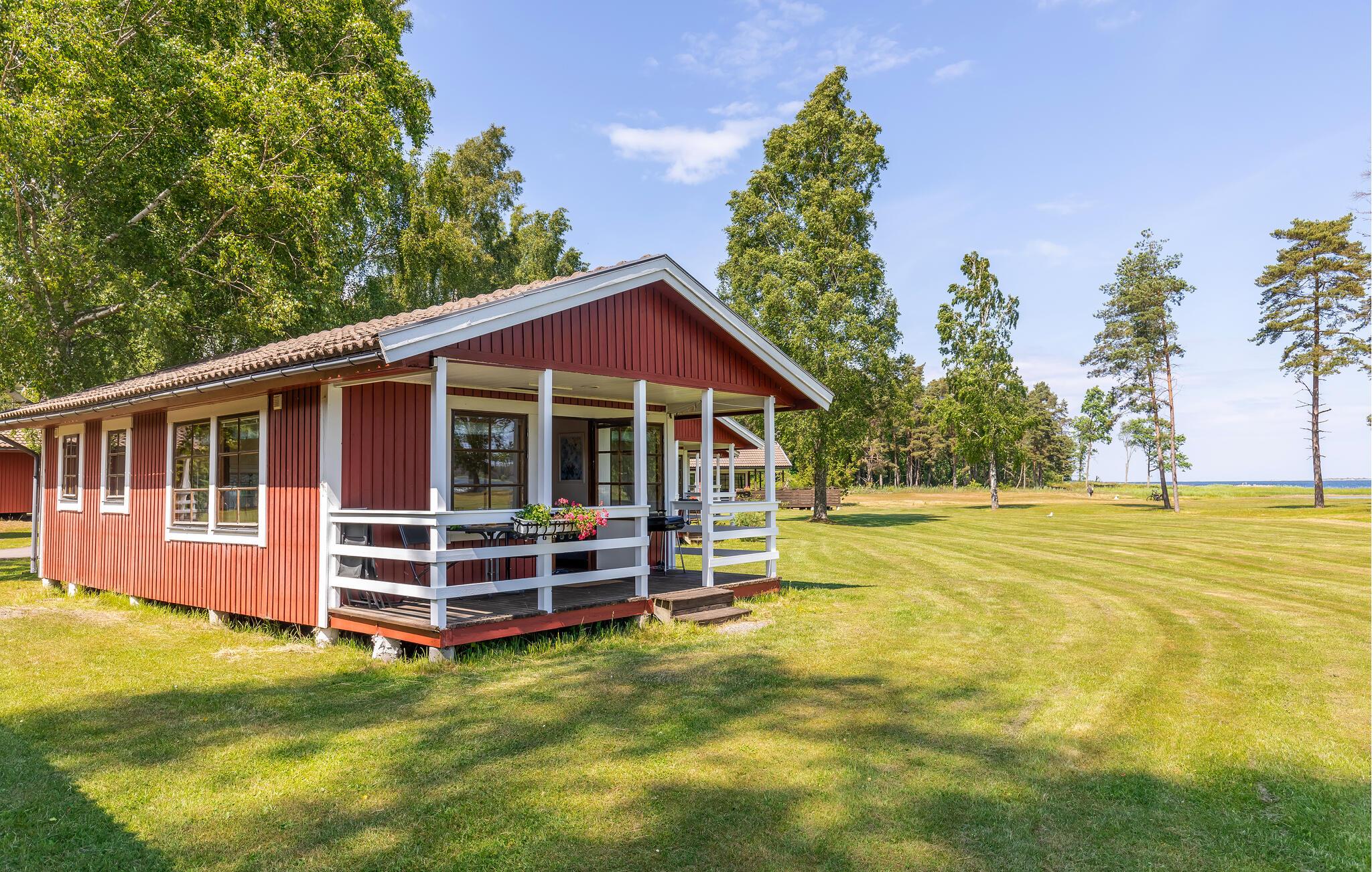 Tilbring hyggelige dage med familien i dette komfortable feriehus ved havet. Dette velholdte feriehus byder jer velkommen kun få skridt fra en smuk sandstrand med en badebro og inviterer jer til en afslappende pause i sit lyse og hyggelige interiør. Tilbered lækre måltider i det åbne køkken og planlæg jeres aktiviteter ved det indbydende spisebord. Efter en begivenhedsrig dag i naturen kan I krybe sammen i sofaen til en sjov spilleaften eller en stille bog. Gå en tur ned til stranden for en forfriskende dukkert og nyd en god morgenmad på verandaen om morgenen. Lad jeres børn få nye venner, mens de leger på den rummelige, fælles grund, og nyd hyggelige samtaler omkring grillen. Prøv lykken med fiskeri, tag lange vandreture og pluk blåbær om efteråret. Gå en tur til det nærliggende Långe Erik fyr og udforsk den populære Trollskov.