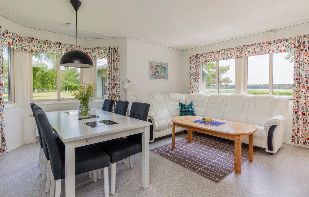 Glæd jer til hyggelige dage i dette komfortable feriehus ved havet. Dette velholdte dobbelthus byder jer velkommen kun få skridt fra en smuk sandstrand med en badebro og inviterer jer til en afslappende pause i sit lyse og hyggelige interiør. Tilbered lækre måltider i det åbne køkken og planlæg jeres aktiviteter ved det indbydende spisebord. Efter en begivenhedsrig dag i naturen kan I krybe sammen i sofaen til en sjov spilleaften eller en stille bog. Gå en tur ned til stranden for en forfriskende dukkert og nyd en god morgenmad på verandaen om morgenen. Lad jeres børn få nye venner, mens de leger på den rummelige, fælles grund, og nyd hyggelige samtaler omkring grillen. Prøv lykken med fiskeri, tag lange vandreture og pluk blåbær om efteråret. Gå en tur til det nærliggende Långe Erik fyr og udforsk den populære Trollskov med jeres børn.