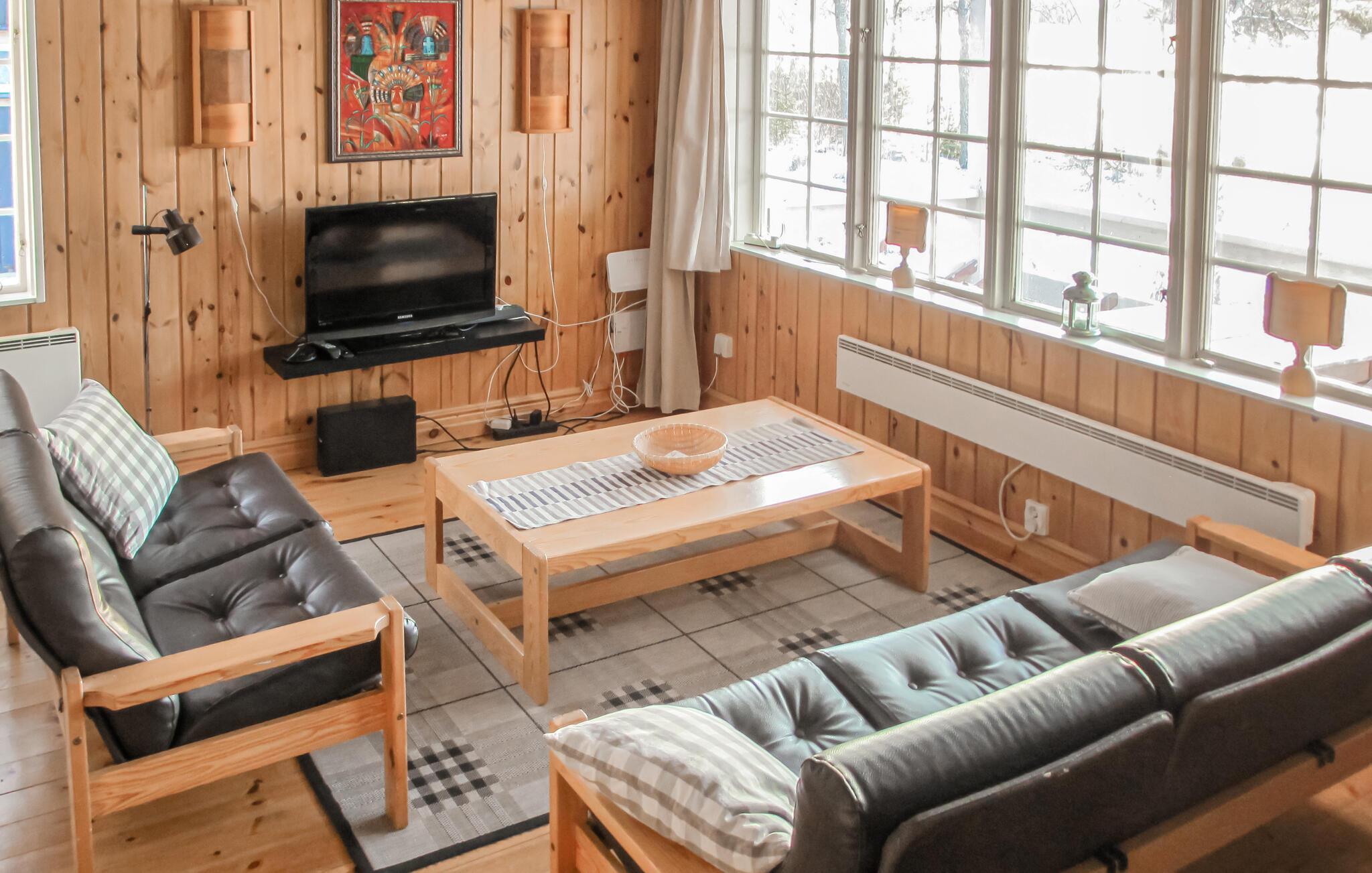 På den store veranda kan I nyde morgenkaffen med panoramaudsigt til vandet. I kan også fiske her, og om vinteren er der gode sportsfaciliteter som at leje en snescooter og udforske området i hurtigt tempo. Der er plads til en børnerig familie, nærmere bestemt to voksne og fire børn samt to kæledyr, der alle sammen får god plads til at løbe og lege.