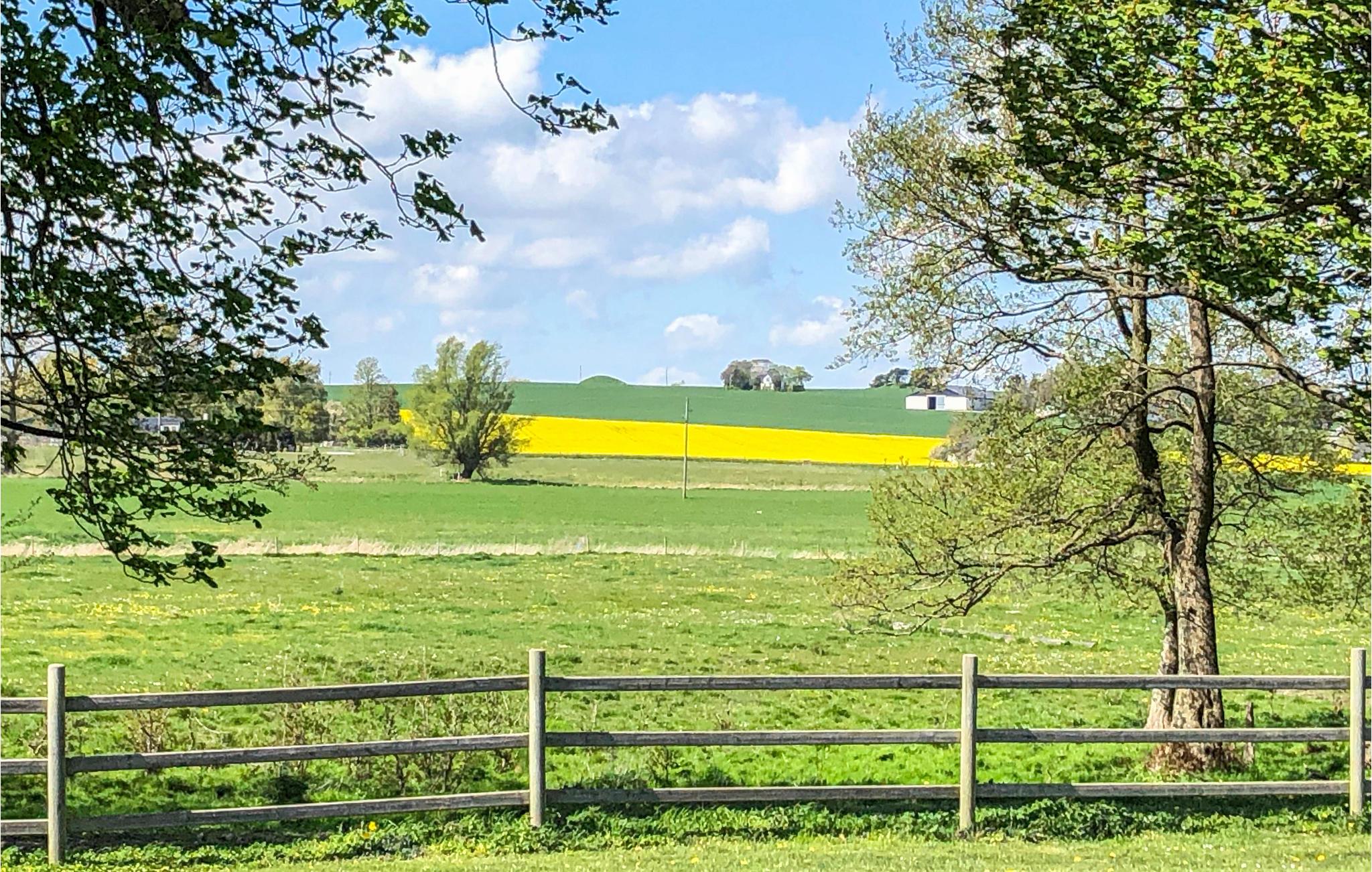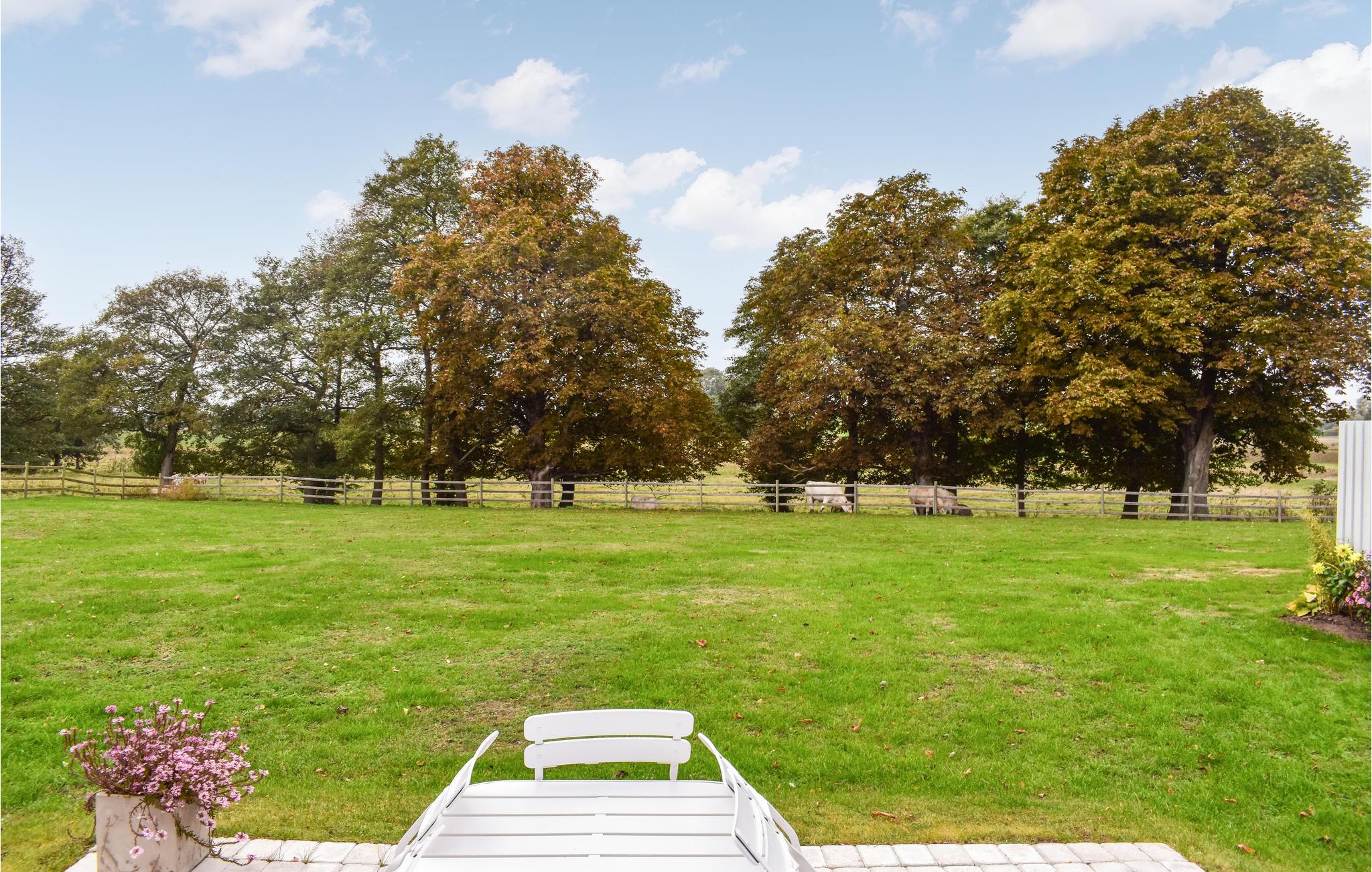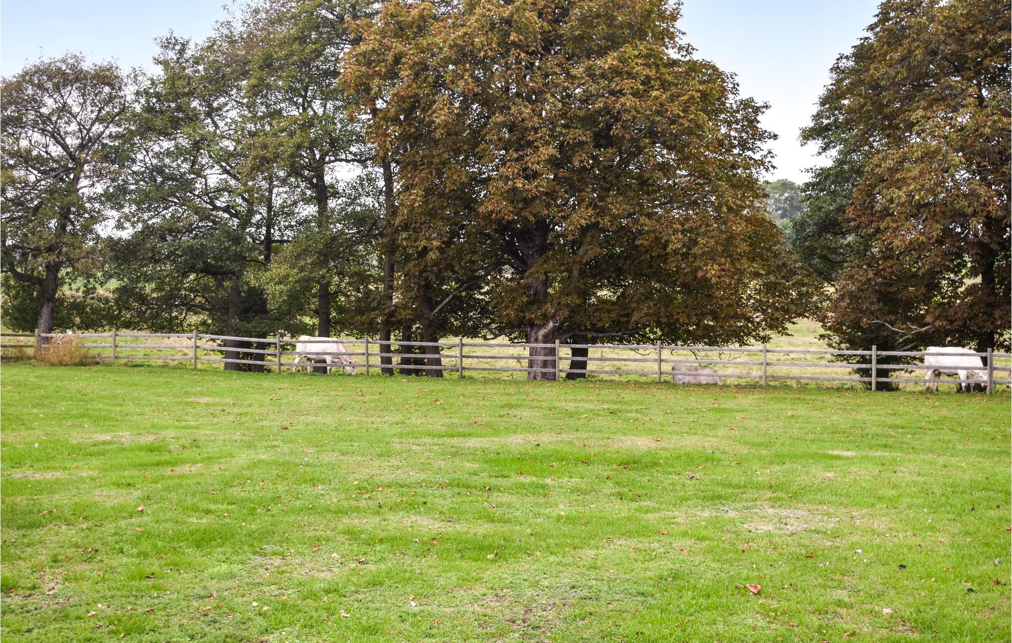 I deler grunden med husejeren, og fra haven kan I se køer og heste, der græsser på nabogrunden. Her er der også en vidunderlig udsigt til de omkringliggende bakkede marker.