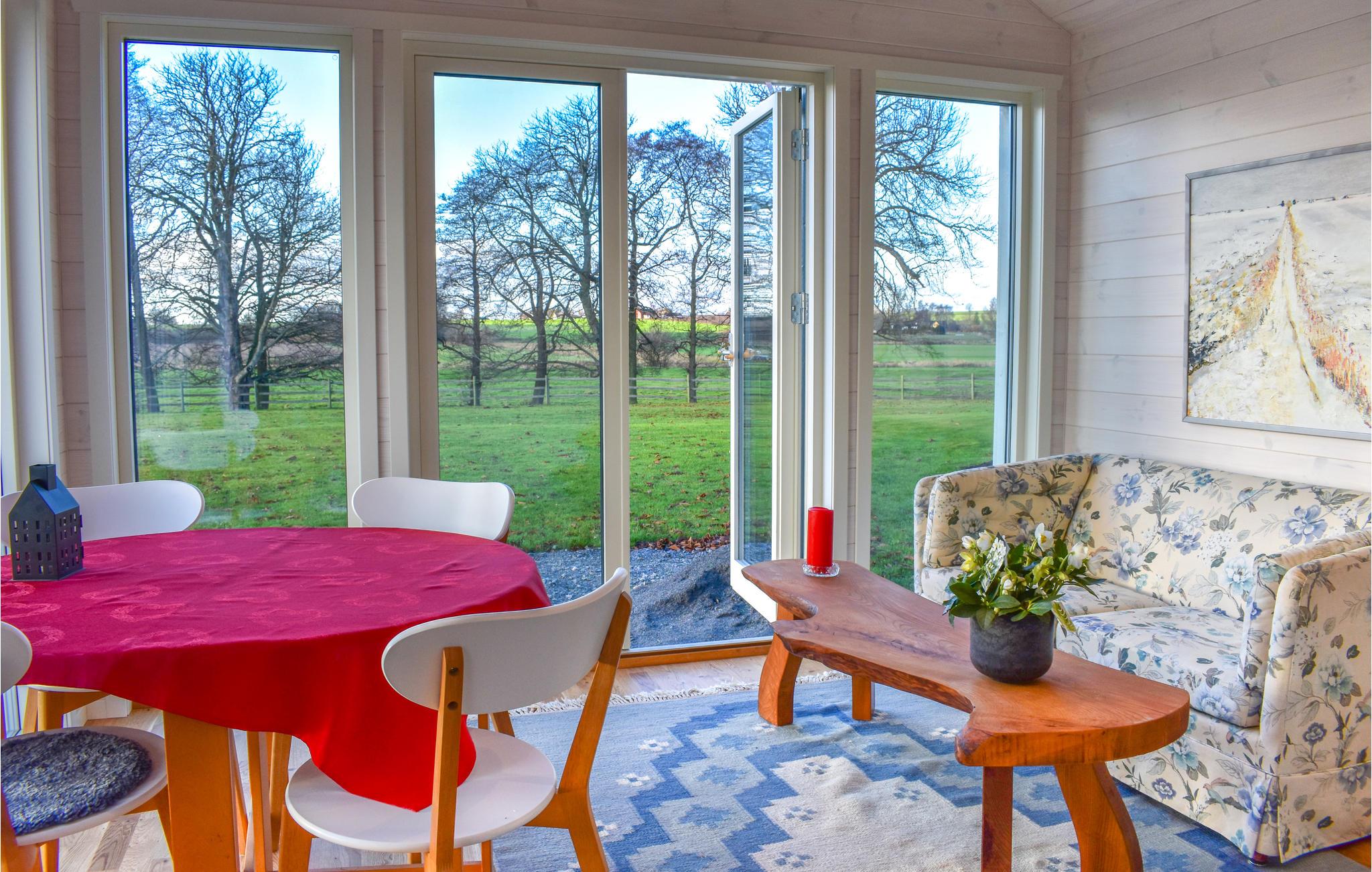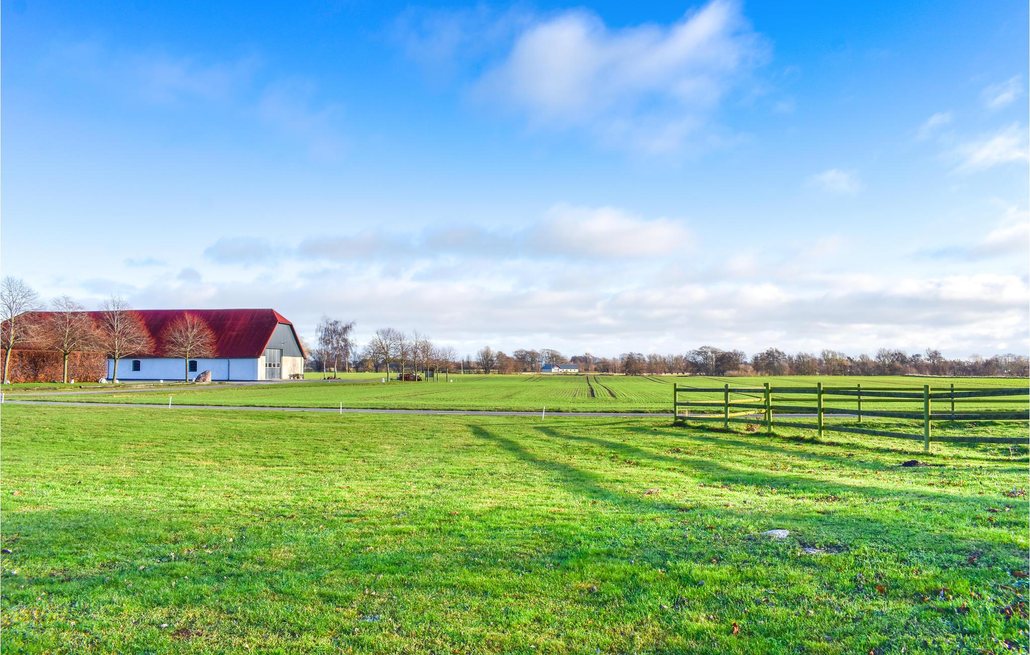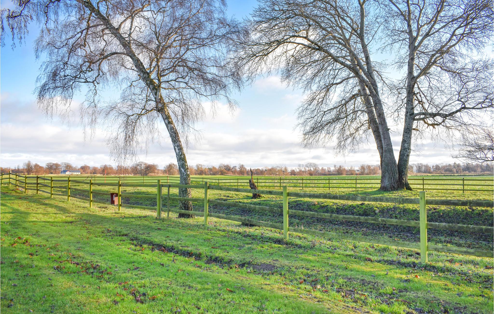 I deler grunden med husejeren, og fra haven kan I se køer og heste, der græsser på nabogrunden. Her er der også en vidunderlig udsigt til de omkringliggende bakkede marker.