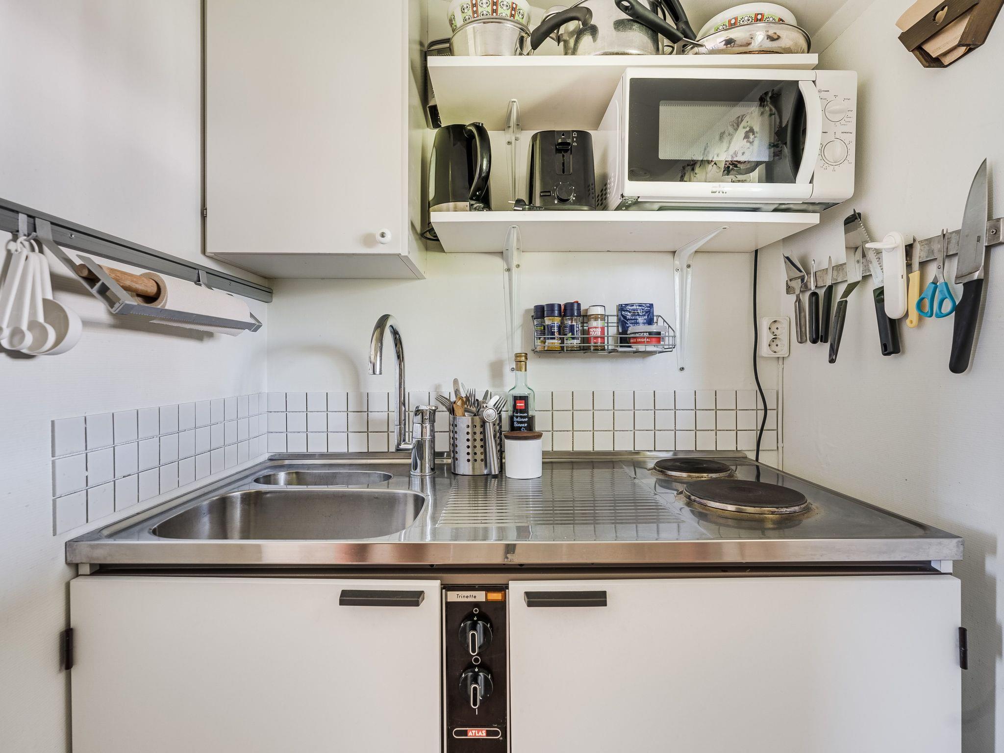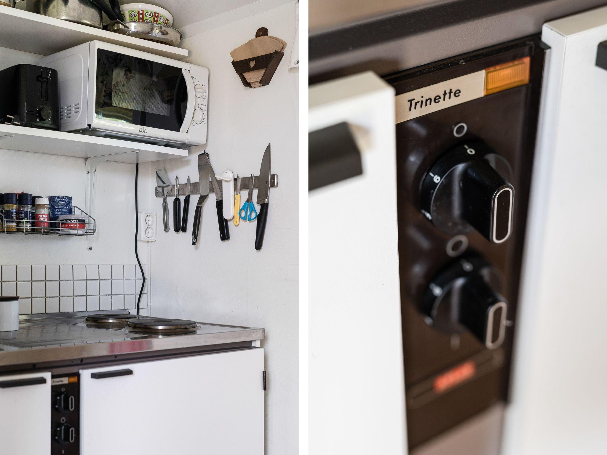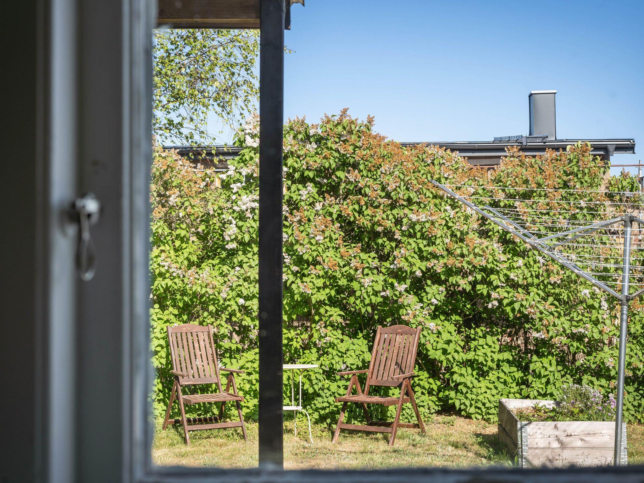 "Bergkvara", 2-room house 25 m2. Bright, comfortable furnishings: living/dining room, ceiling height 190 cm, Low door height 170 cm with dining table and TV. Exit to the terrace. 1 open room with 2 beds. Small, open kitchen (2 hot plates, toaster, kettle, microwave, electric coffee machine). Shower/WC. Electric heating. Terrace partly roofed, patio, garden. Terrace furniture. Facilities: Internet (WiFi, free). Please note: fridge without freezer, non-smoking house. Maximum 1 pet/ dog allowed. Smoke alarm, fire extinguisher.