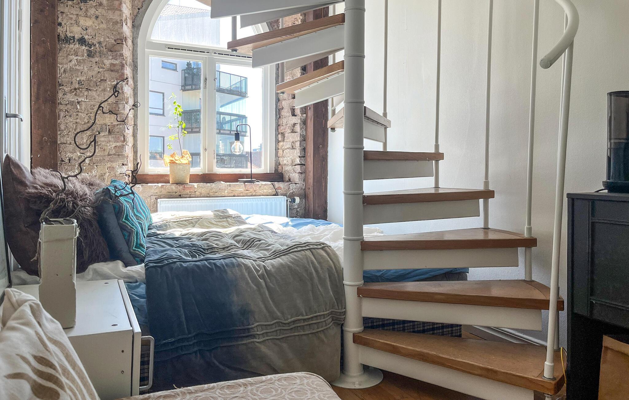Denne smagfulde loftslejlighed tilbyder et hyggeligt tilflugtssted i hjertet af Borås i to etager, mens I udforsker byen og opdager charmerende destinationer. Tilbered lette måltider i det praktiske tekøkken, planlæg jeres aktiviteter ved det indbydende spisebord, og hvil jeres trætte fødder i den komfortable stue mellem udflugter.