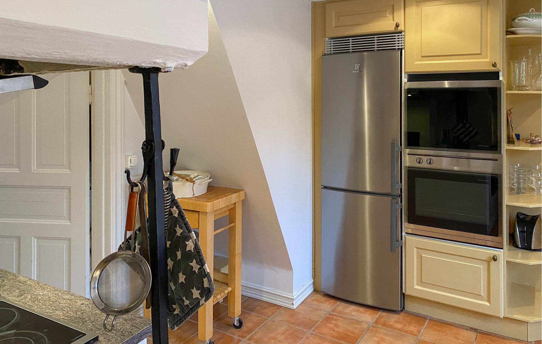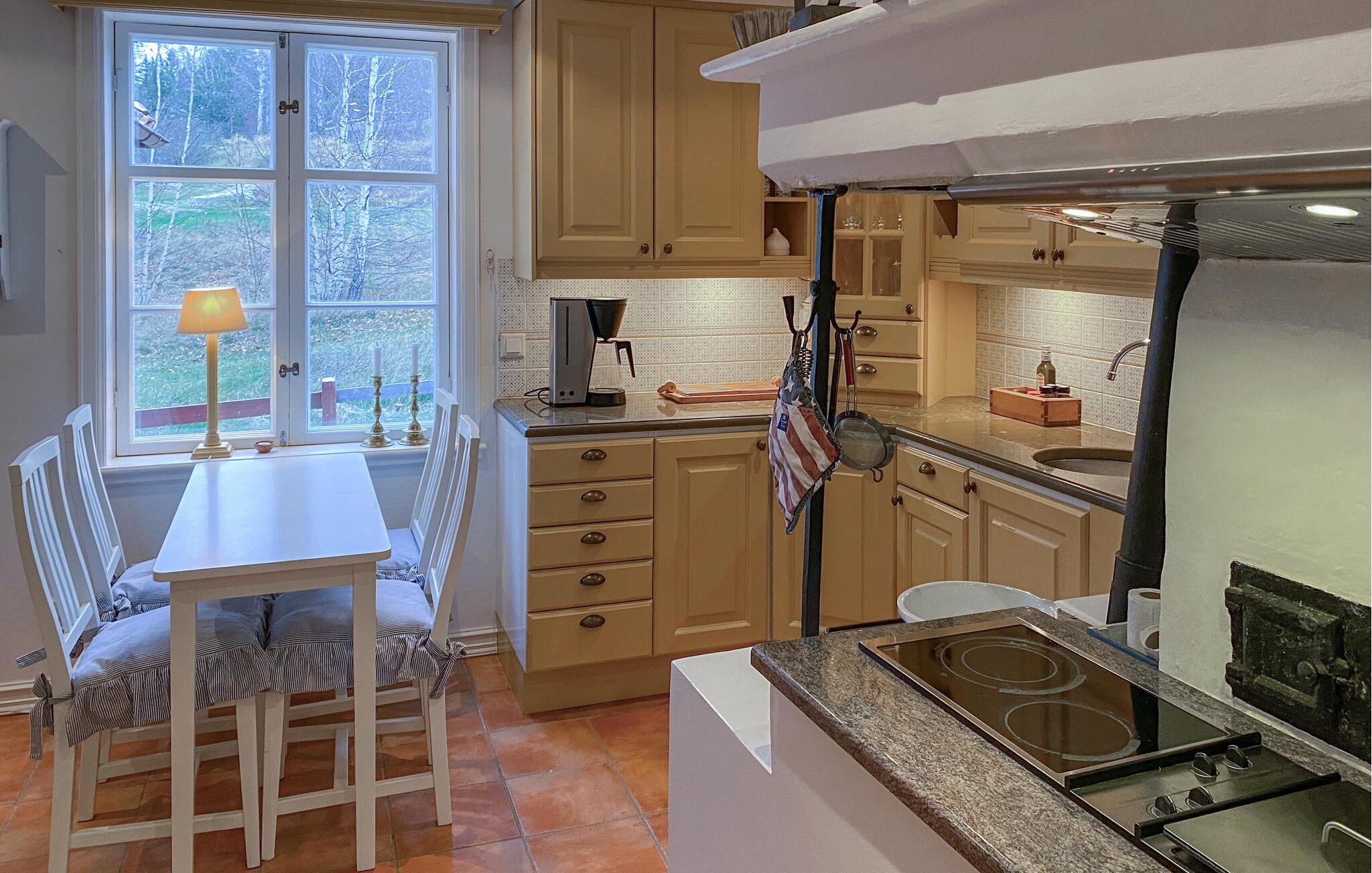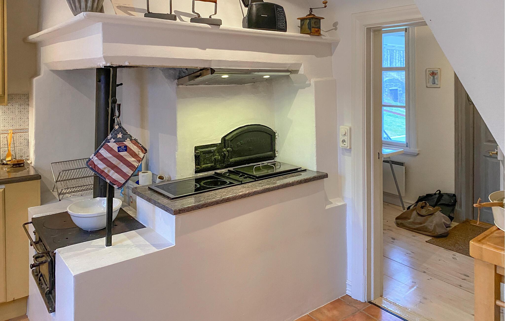 Dette maleriske feriehus, som ligger lige ned til søbredden, tilbyder den ideelle kulisse for en afslappende pause fra hverdagen i naturen. Nyd den rolige beliggenhed og direkte adgang til søen, mens I beundrer den smukke udsigt over vandet og det omkringliggende landskab. Selve huset kombinerer tradition med komfort. De hyggelige stuer er indrettet med kærlige detaljer og lægger op til afslappende timer. Tilbring jeres aftener i stuen foran pejsen eller nyd måltider sammen i den lyse spiseplads. Det veludstyrede køkken byder på alt hvad I behøver for at tilberede lækre måltider.