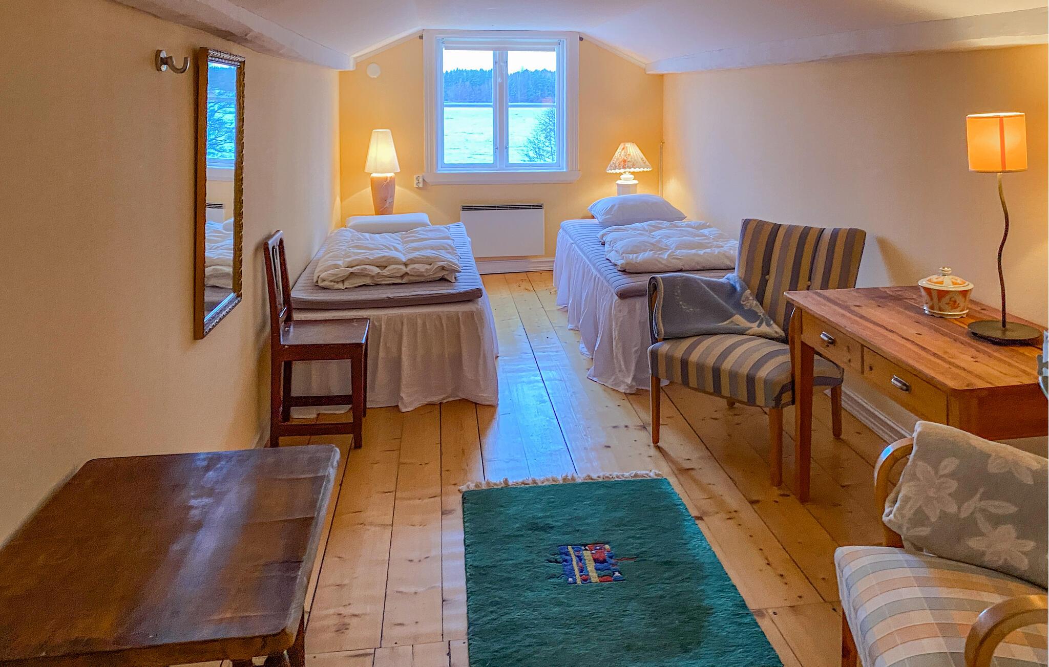 Udenfor er der en rummelig ejendom med direkte adgang til søen. Benyt lejligheden til at leje en robåd og udforske søen fra vandet. De fredelige omgivelser lægger op til gå- og cykelture langs kysten.