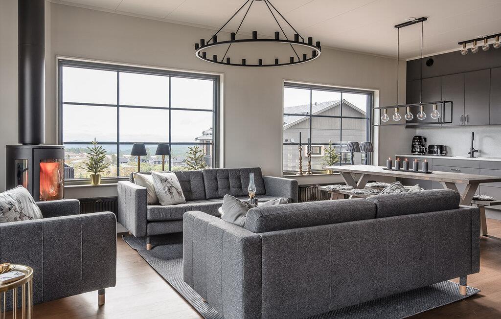 Denne smukke, hyggelige og smagfuldt møblerede lejlighed tilbyder en fortryllende udsigt over Klarälven-dalen gennem sine store vinduer. Nyd denne udsigt, mens I nyder stilfulde måltider ved spisebordet eller slapper af med en god bog ved brændeovnen. Planlæg jeres aktiviteter sammen, og forkæl jer selv med nogle afslappende øjeblikke i saunaen efter en lang dag i den friske luft, inden I samles til en filmaften i den rummelige sofa.