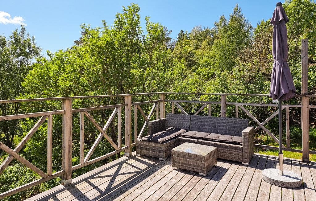 Det smagfuldt indrettede hus ligger kun 300 m fra vandet og en kort køretur fra hyggelige Lysekil. Huset er i åbent plan og flyder over med lysindfald fra de store vinduespartier. Det flotte badeværelse er fuldt flisebelagt og køkkenet er praktisk. Bag stuen er en rummelig terrasse, hvor I kan nyde udsigten til fjeldene og det funklende Bredungen, en del af den smukke Gullmarsfjord. 300 m fra huset kan I tage en forfriskende badetur eller fiske efter makrel. Vil I opleve noget mere, kan I tage til Lysekil, hvor Havets Hus bestemt er et besøg værd. I Bohuslän ligger Nordens Ark, et unikt anlæg for hele familien.