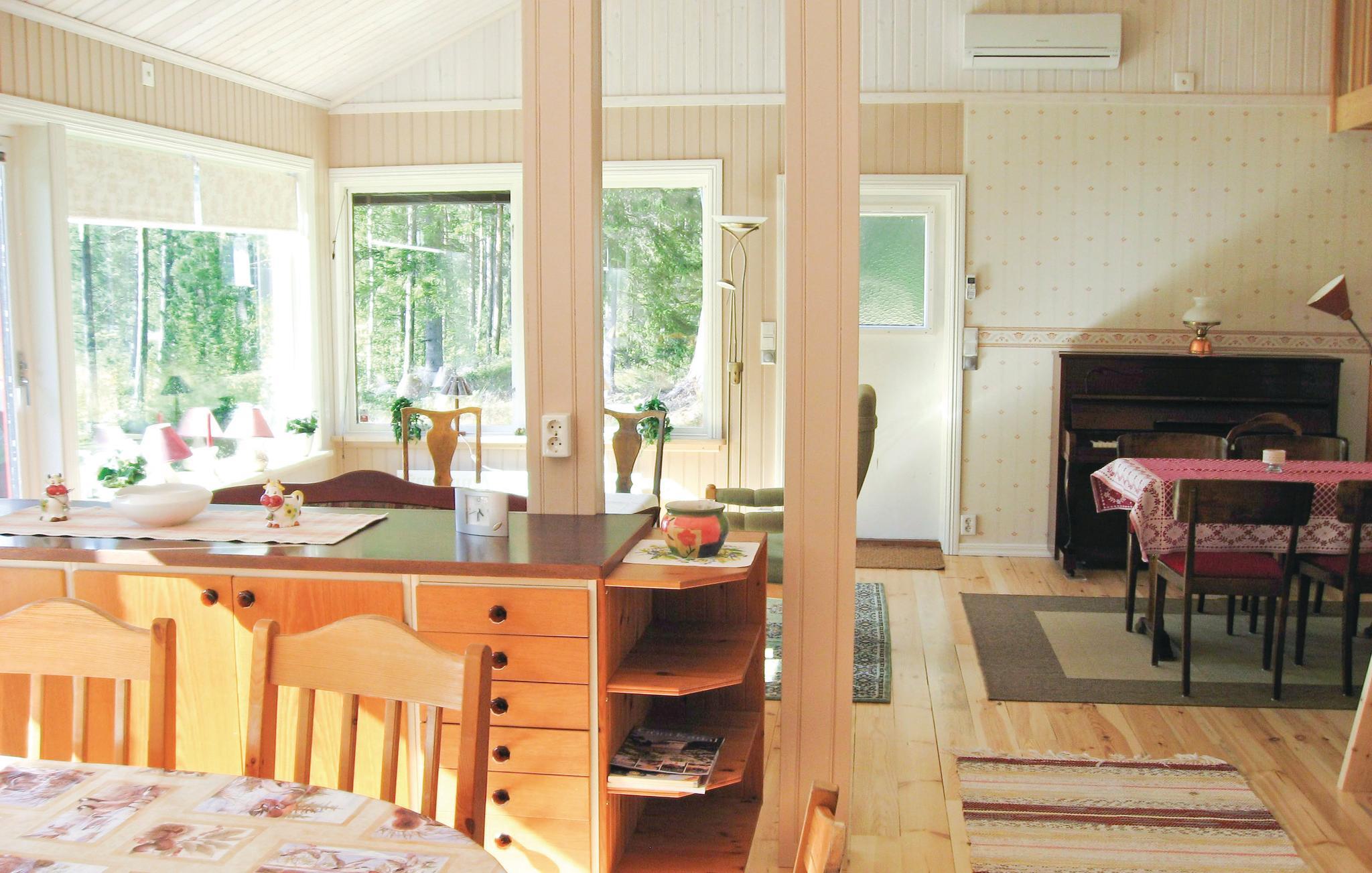 Dejligt feriehus i stille og skønt miljø med udsigt over søen Sänningen, kun ti meter fra bade- og fiskemulighed. Til badestrand er der 800 m. Nær skov med bær og svampe og vandre- og cykelstier. Göta Kanalen 20 km. Tivedens nationalpark 30 km. Centralstøvsuger. Indkøbscenter og aktiviteter, fx badeland indenfor en time i bil. Robåd inkl, motorbåd kan lejes. Trådløst internet (med høj hastighed) via fibernet.