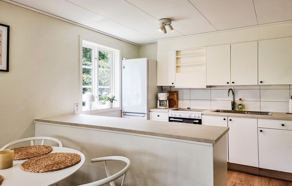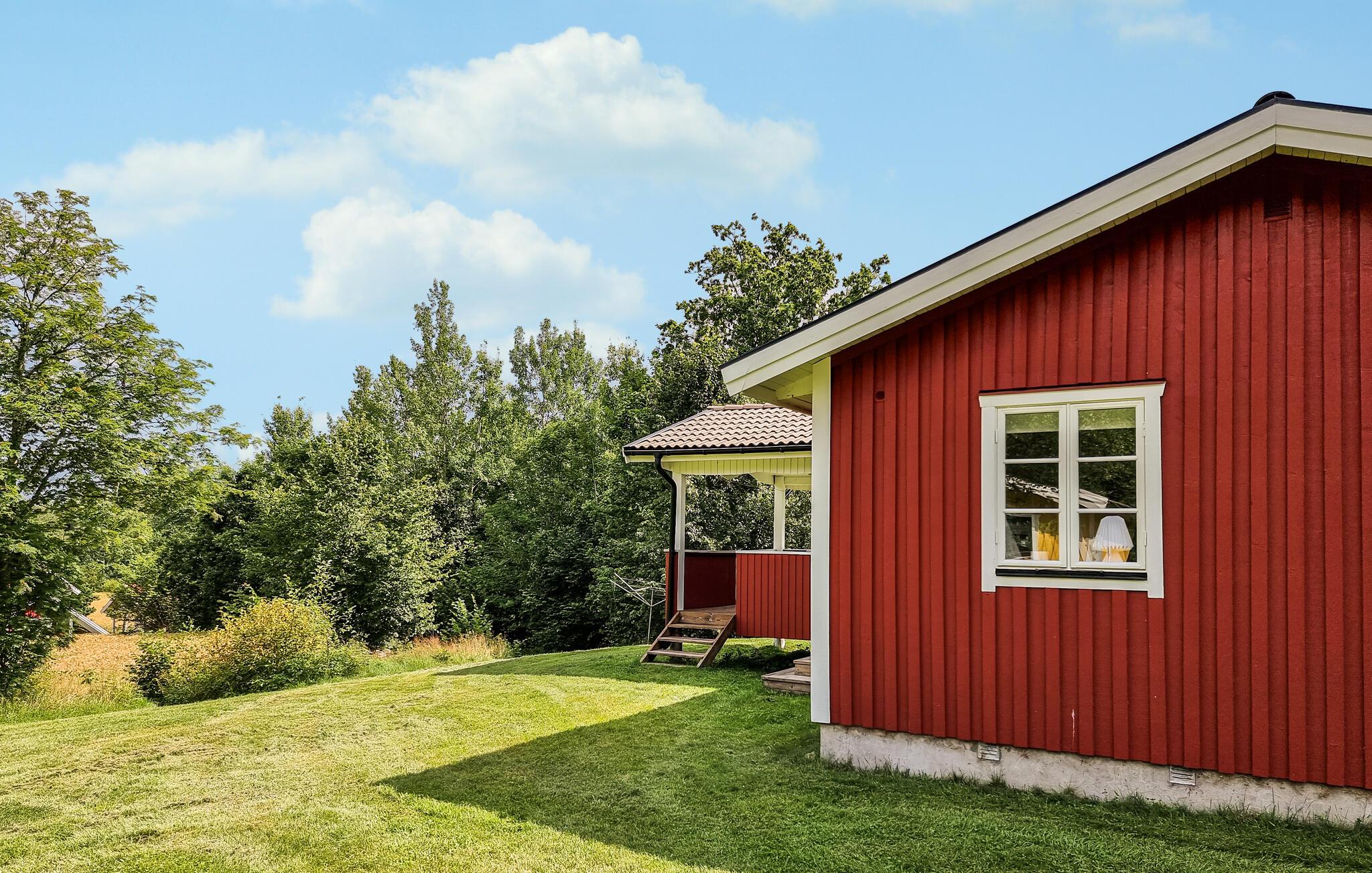 Forkæl jer selv med en dejlig ferie i dette idyllisk beliggende feriehus. Dette charmerende hus er malerisk beliggende med udsigt over vandet og fortryller med sit udsøgte interiør. Et varmt trælook, en komfortabel sofa og gennemtænkte detaljer gør jeres ophold så behageligt som muligt. Slap af her, mens I lytter til musik, eller tilbered et lækkert måltid i det moderne køkken. Om morgenen kan I gå ud i den grønne have med en duftende kop kaffe og lytte til naturens lyde. Tag plads på den smukke veranda og nyd en god morgenmad, inden I tager af sted på jeres aktiviteter. Hvis I har lyst, kan I finde et roligt hjørne i haven og fordybe jer i en god bog. Gå på vandretur eller cykeltur gennem de skovklædte omgivelser omkring Broaryd. Oplev afslappende dage ved søen med fremragende fiske- og bademuligheder midt i smuk natur. Besøg den nærliggende by Hyltebruk, hvor I kan nyde en afslappet shoppingtur eller dvæle på en café.