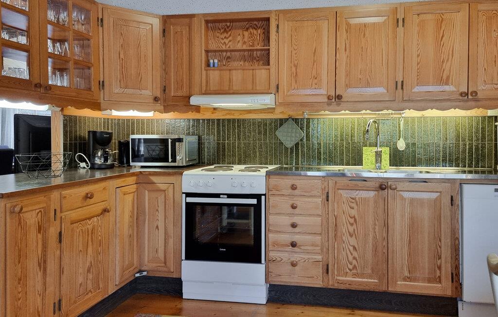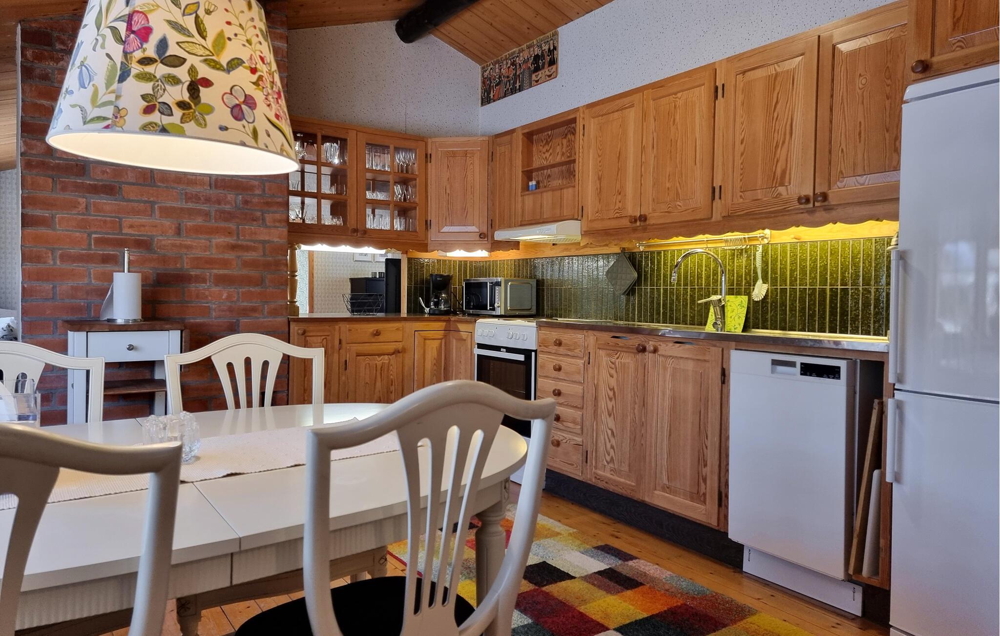 Dette velholdte tilflugtssted lægger op til at tilbringe afslappende dage i dets værelser præget af nostalgisk charme. Tilbered dagens måltider sammen i det indbydende spisekøkken og tag plads ved det komfortable spisebord. Tænd pejsen og glæd jer til harmoniske spilleaftener eller stille læsetimer i den behagelige sofa.