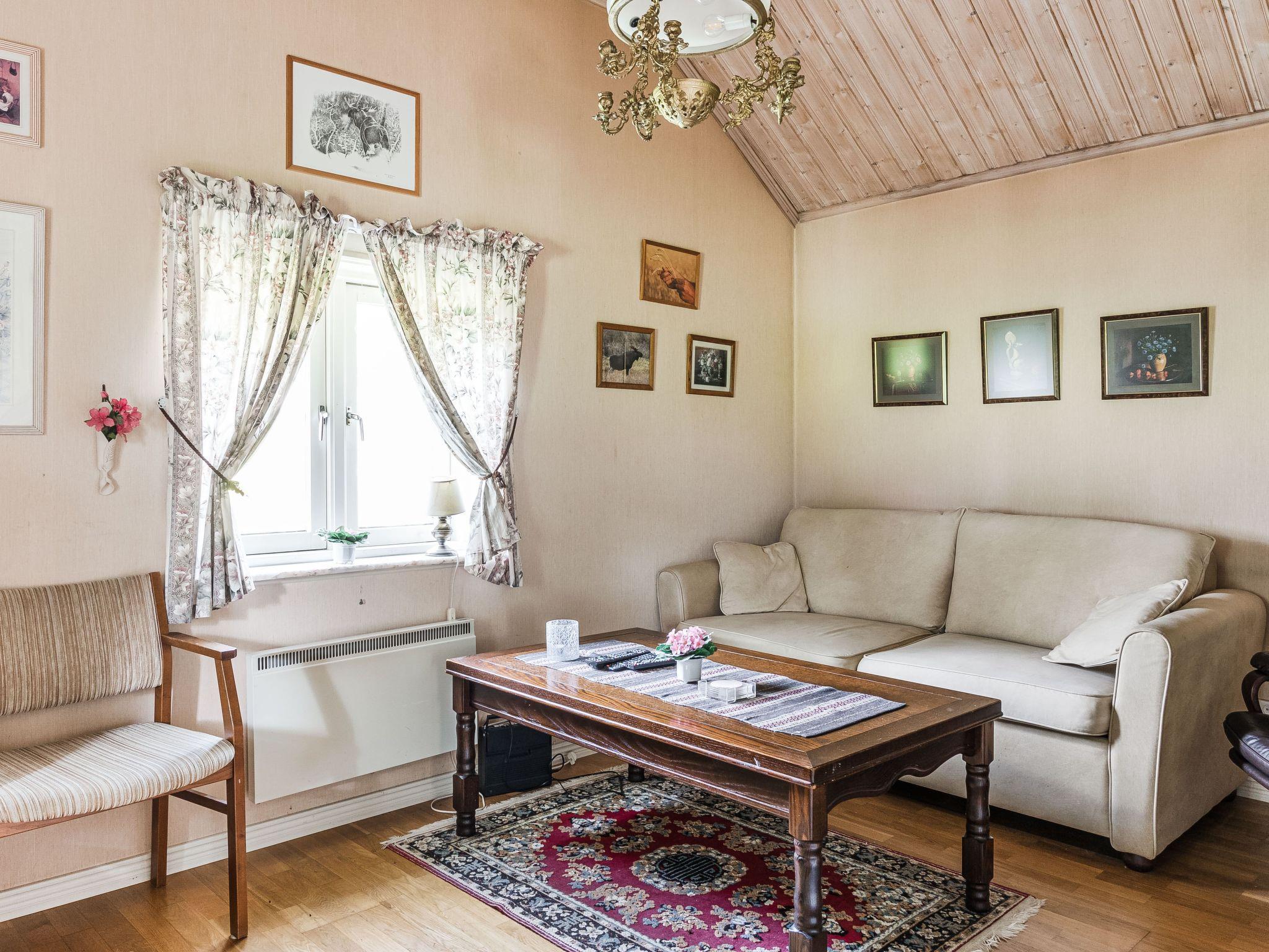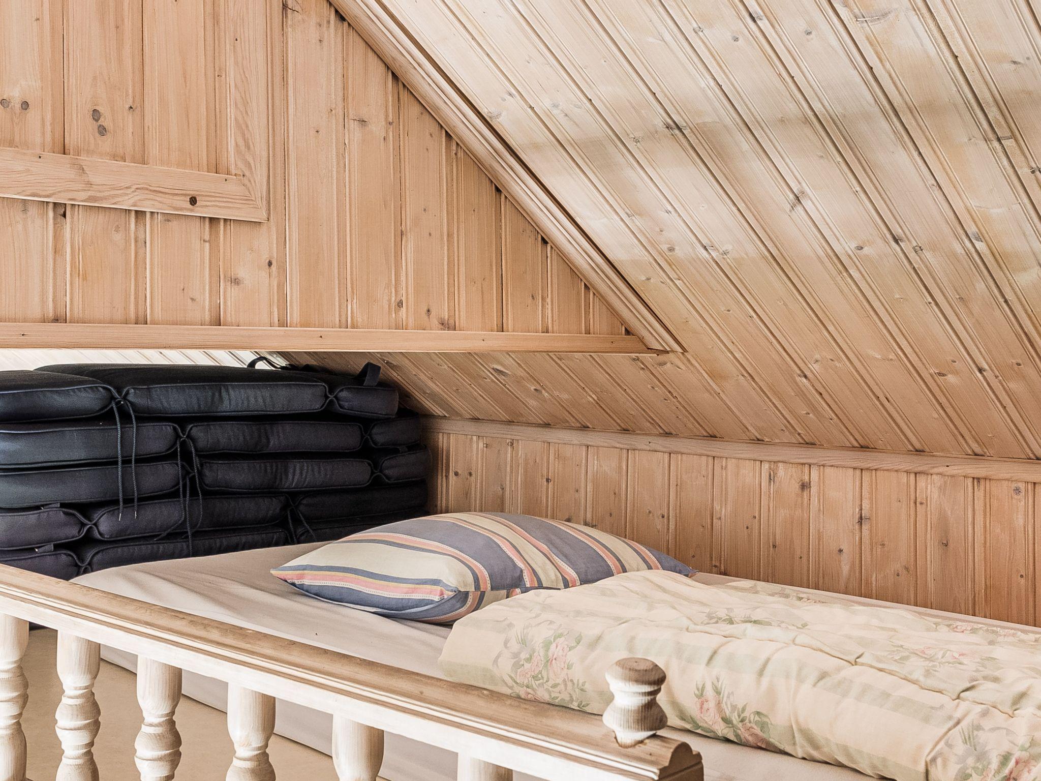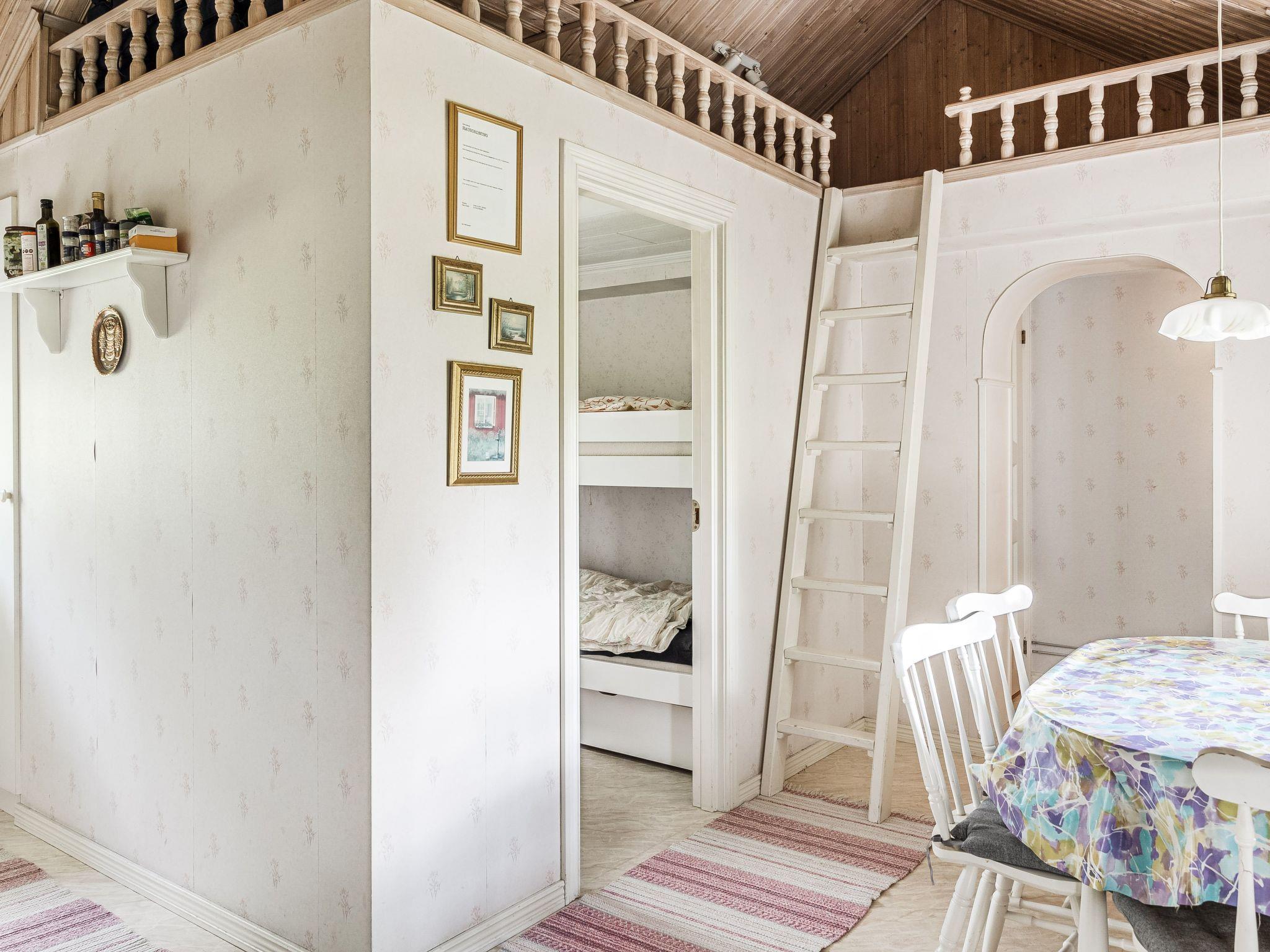 "Hökagården", 2-room house 37 m2 on 2 levels. Object suitable for 4 adults. Bright, cosy furnishings: living/sleeping room with 1 double sofabed, Scandinavian wood stove and satellite TV. 1 open room with 1 x 2 bunk beds. Entrance hall with dining table. Exit to the terrace. Small, open kitchen (2 induction hot plates, toaster, kettle, microwave, freezer, electric coffee machine). Shower/WC. Heating, air-conditioning. Upper floor: (ladder) open gallery with sloping ceilings, ceiling height 130 - 20 cm with 2 beds. Wooden floors. Patio. Terrace furniture, barbecue (portable). Facilities: iron, children's high chair, baby cot. Please note: non-smoking house. Freezer approx. 150 l. Bed layout is flexible. There are more sleeping options available than the maximum number of people allowed which may, however, not be exceeded. Instead of an enclosed bedroom, some sleeping areas are located in an open-plan area (gallery, alcove, etc.).