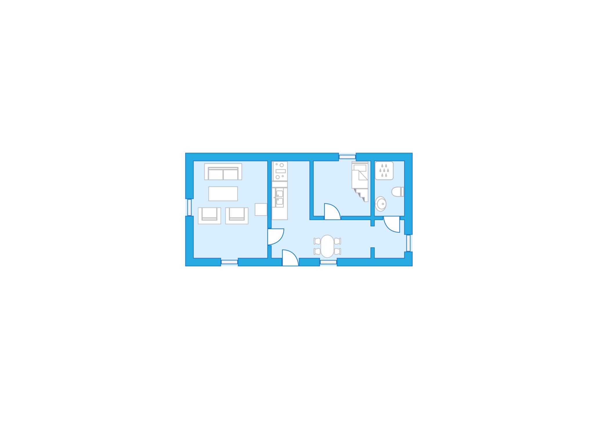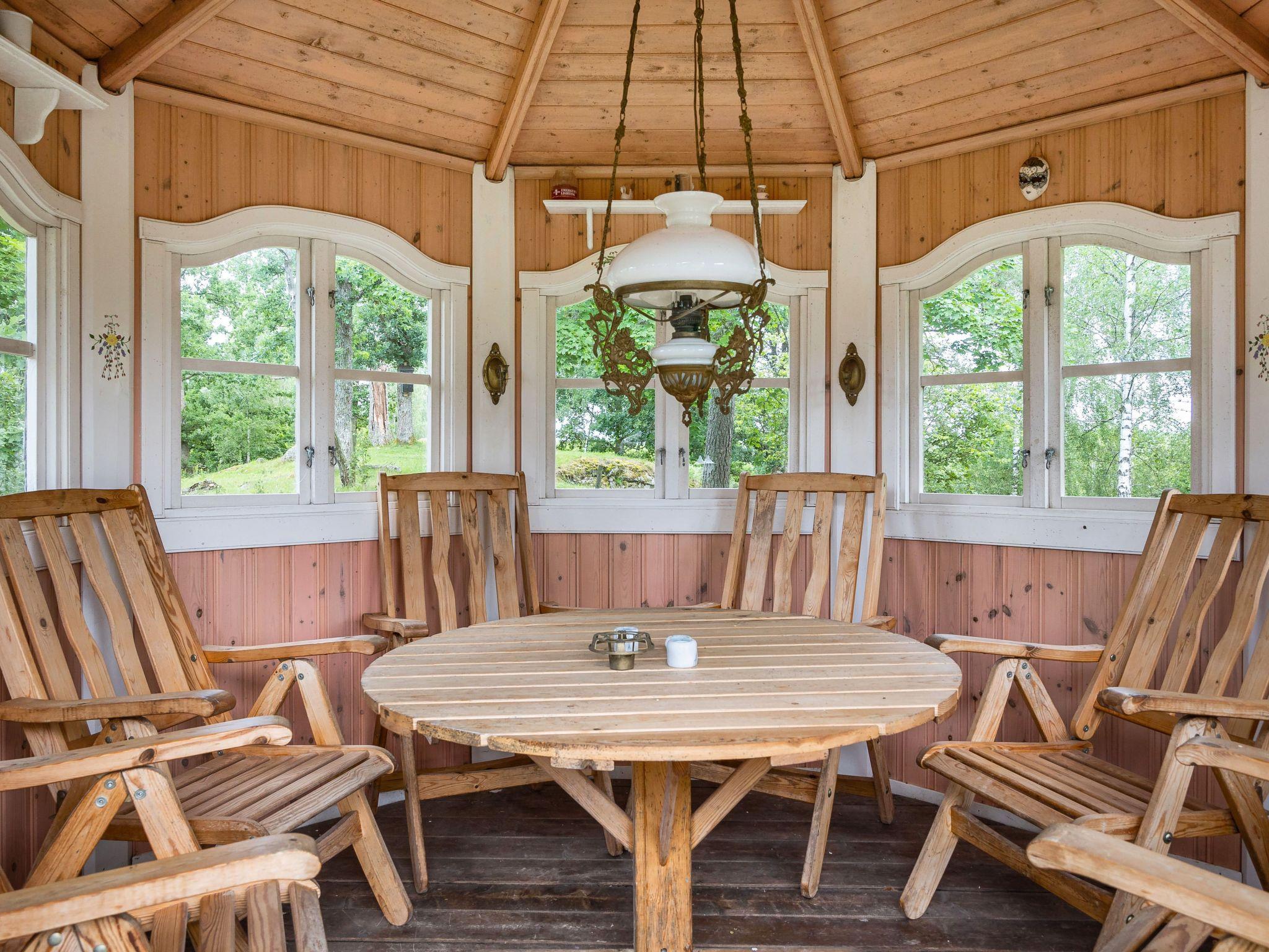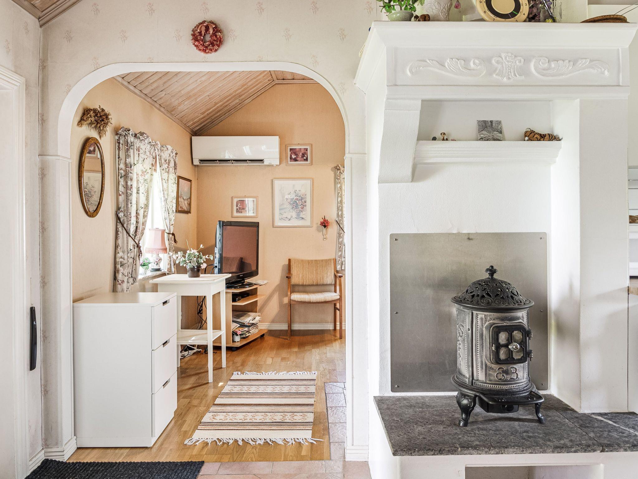 "Hökagården", 2-room house 37 m2 on 2 levels. Object suitable for 4 adults. Bright, cosy furnishings: living/sleeping room with 1 double sofabed, Scandinavian wood stove and satellite TV. 1 open room with 1 x 2 bunk beds. Entrance hall with dining table. Exit to the terrace. Small, open kitchen (2 induction hot plates, toaster, kettle, microwave, freezer, electric coffee machine). Shower/WC. Heating, air-conditioning. Upper floor: (ladder) open gallery with sloping ceilings, ceiling height 130 - 20 cm with 2 beds. Wooden floors. Patio. Terrace furniture, barbecue (portable). Facilities: iron, children's high chair, baby cot. Please note: non-smoking house. Freezer approx. 150 l. Bed layout is flexible. There are more sleeping options available than the maximum number of people allowed which may, however, not be exceeded. Instead of an enclosed bedroom, some sleeping areas are located in an open-plan area (gallery, alcove, etc.).